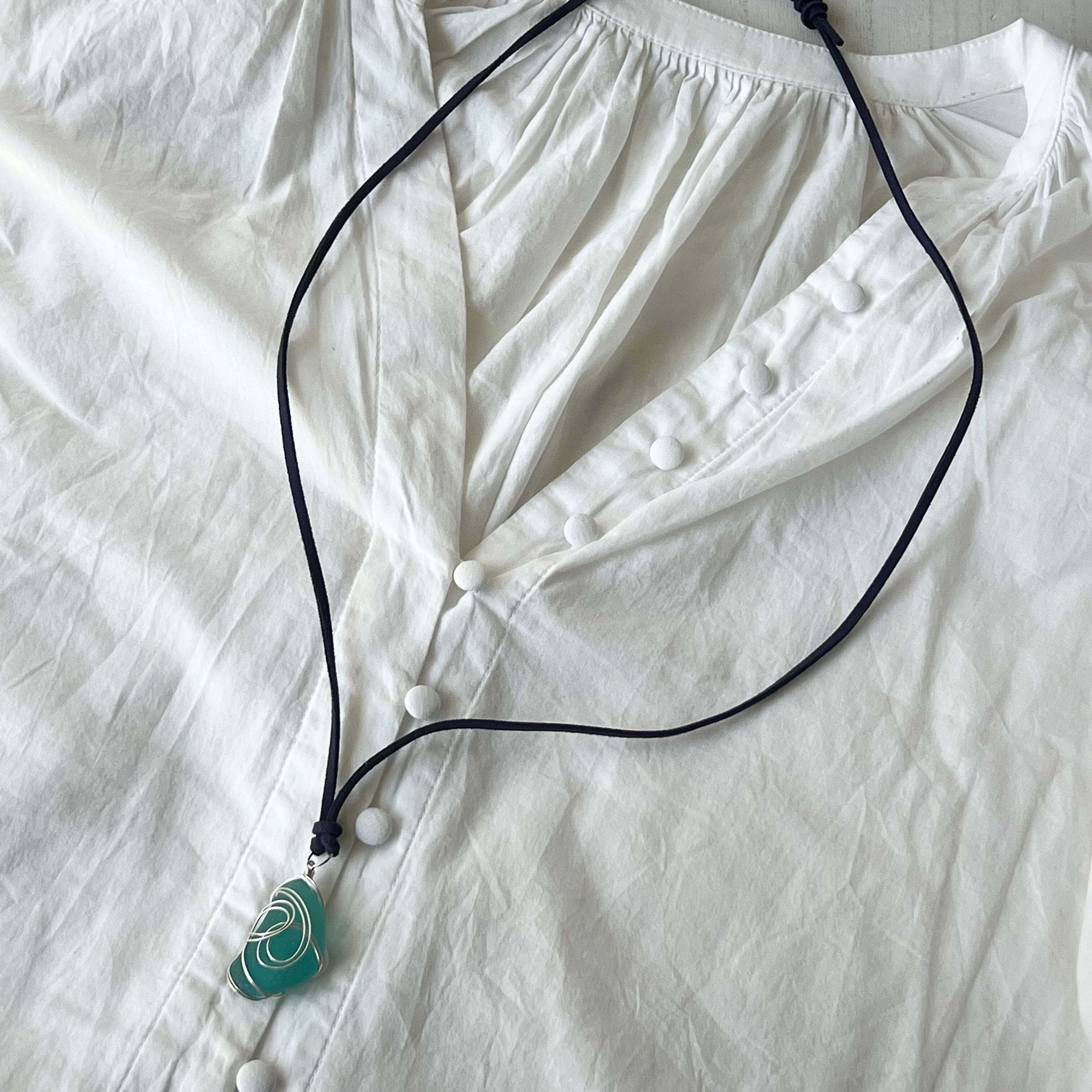 いつでも海を身近に感じられる海色シーグラスのスエードネックレス