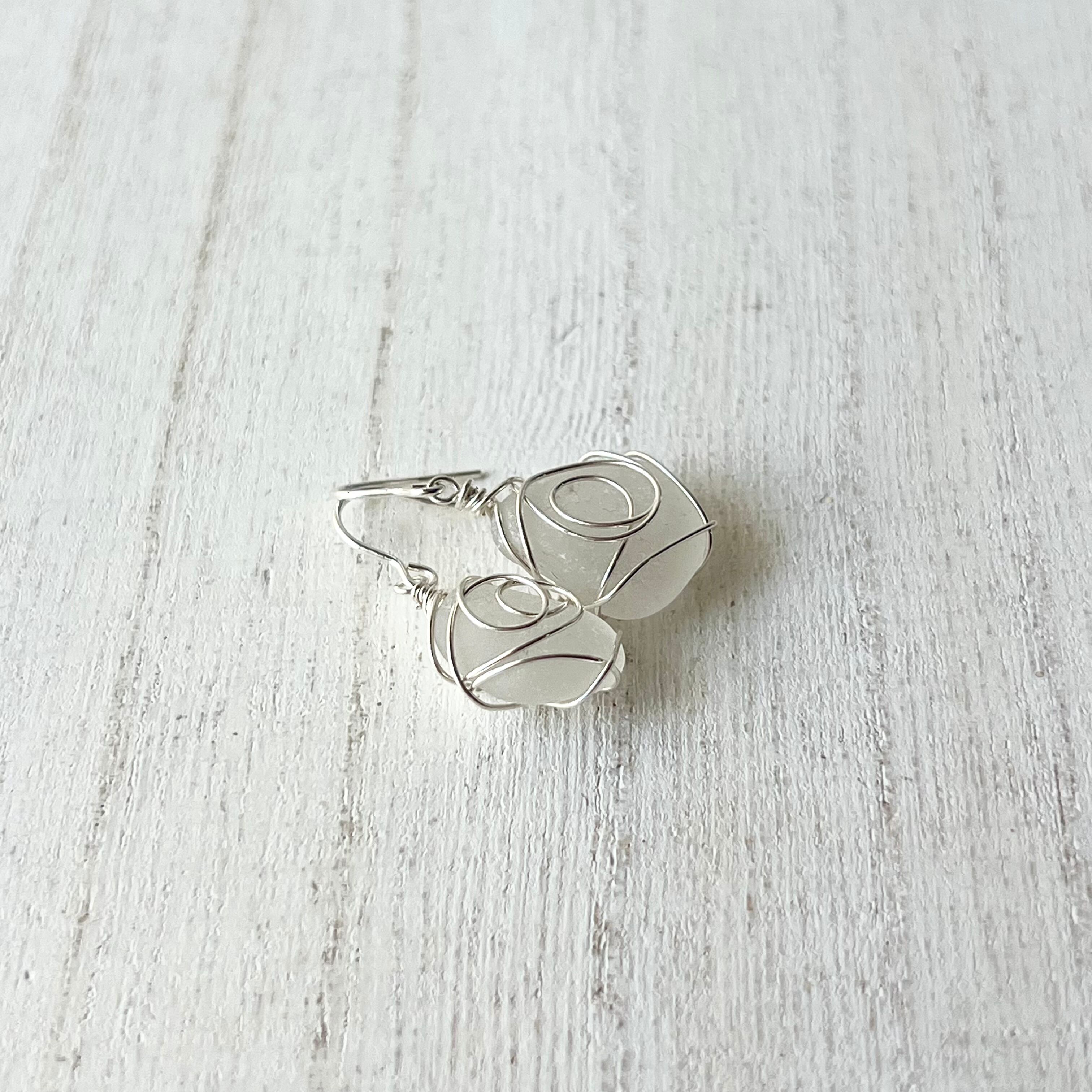 《徳島シーグラス・スターリングシルバー》いつまでも色褪せない透明感あるホワイトシーグラスのフックピアス