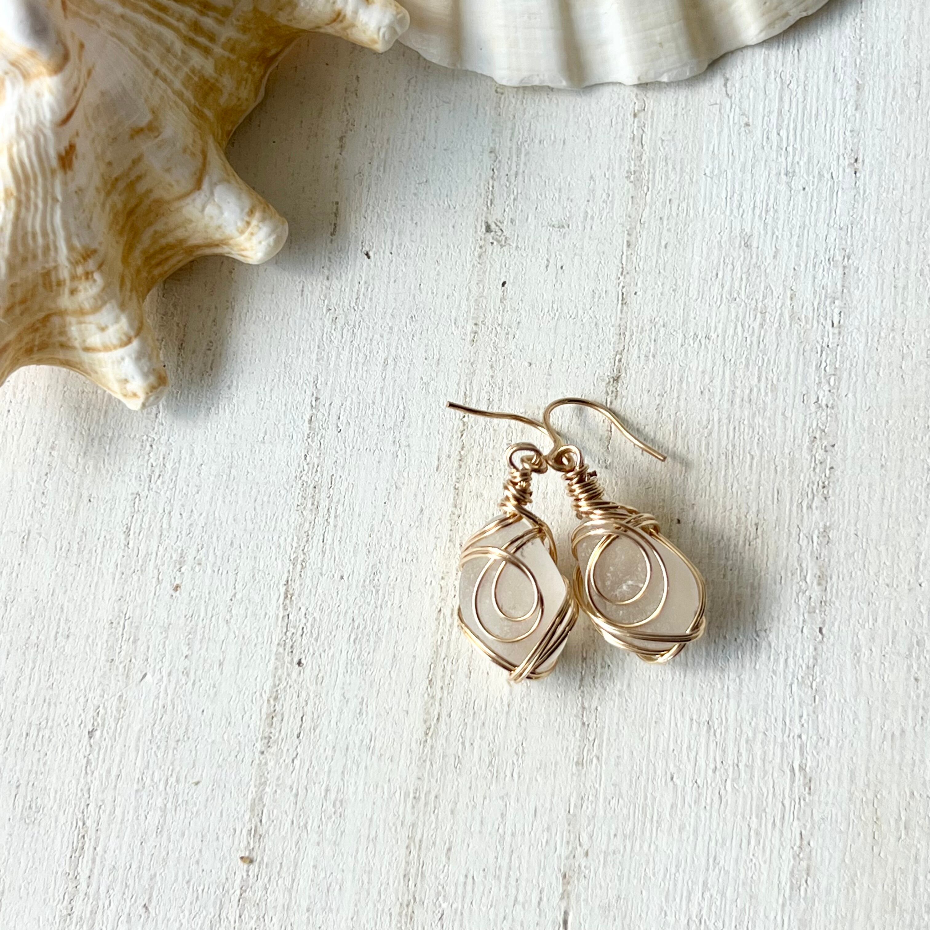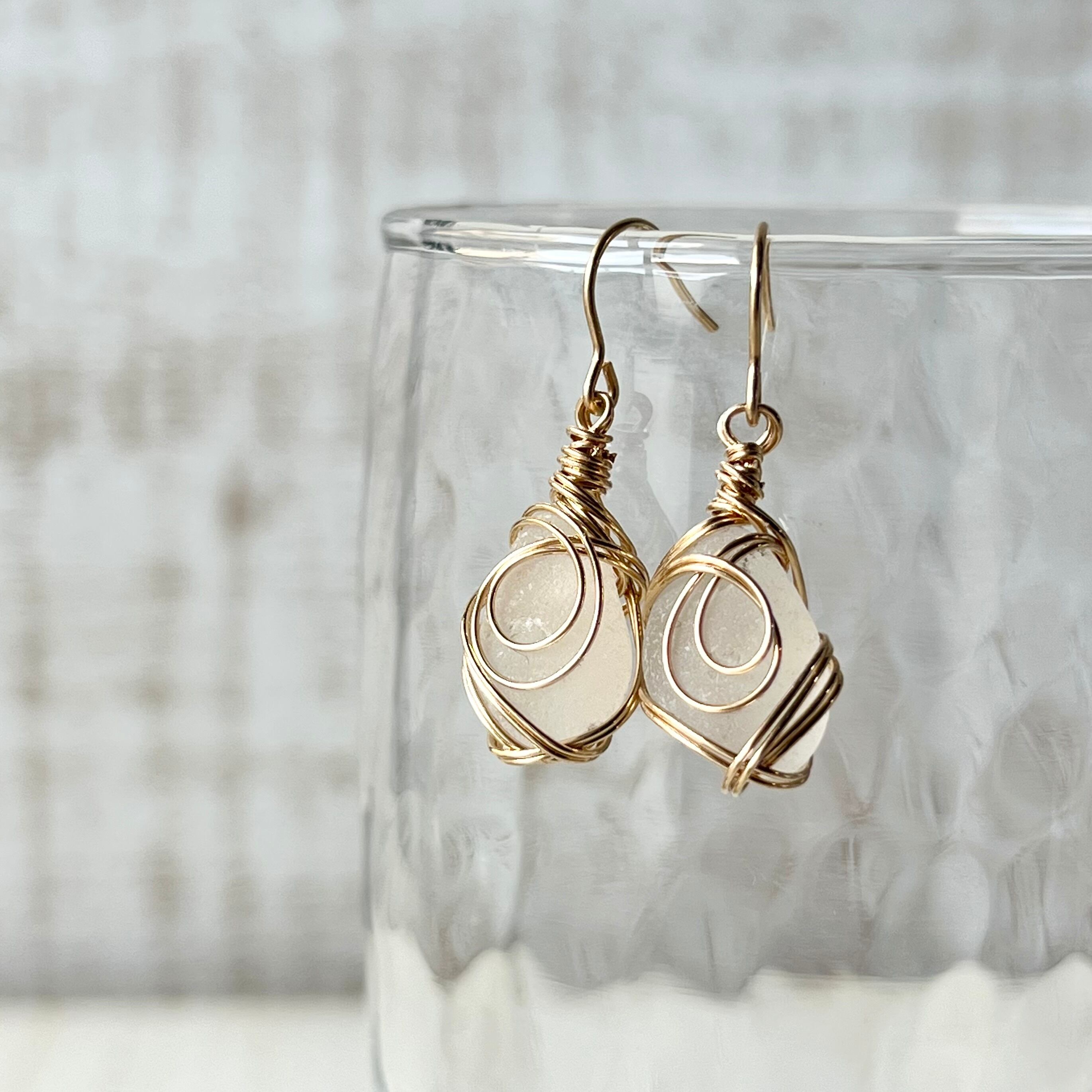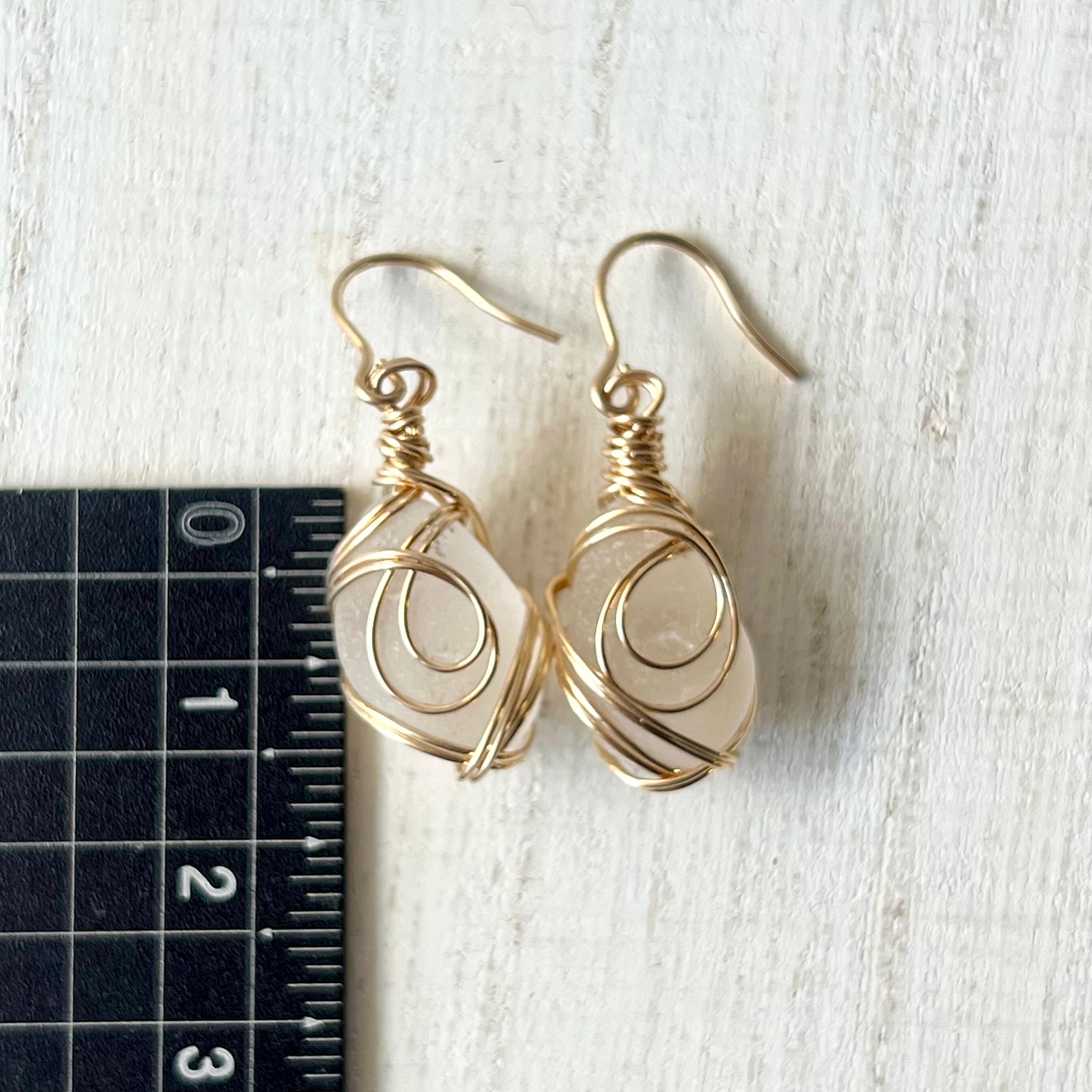 《徳島シーグラス・14K》縁が繋がるホワイトシーグラスのフックピアス