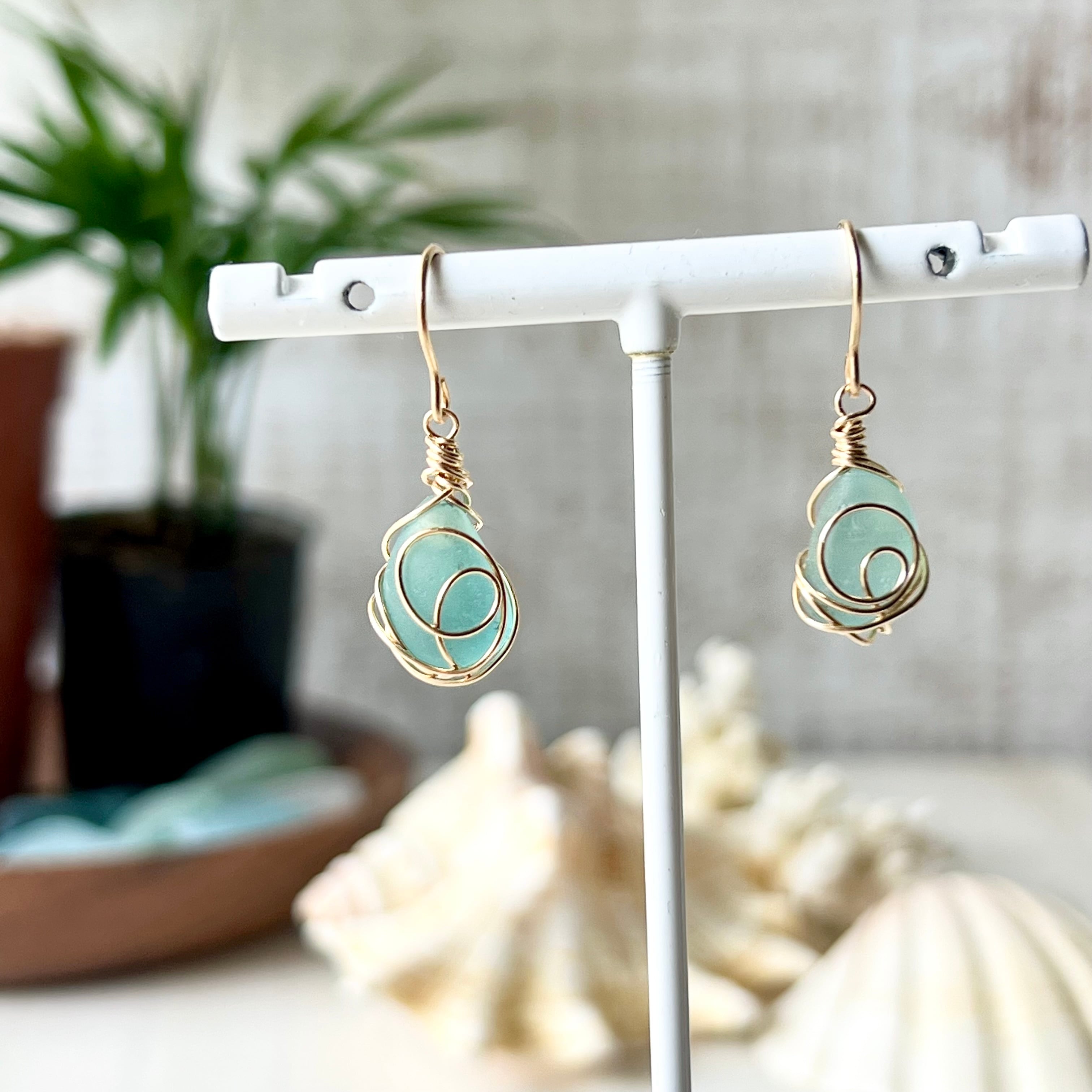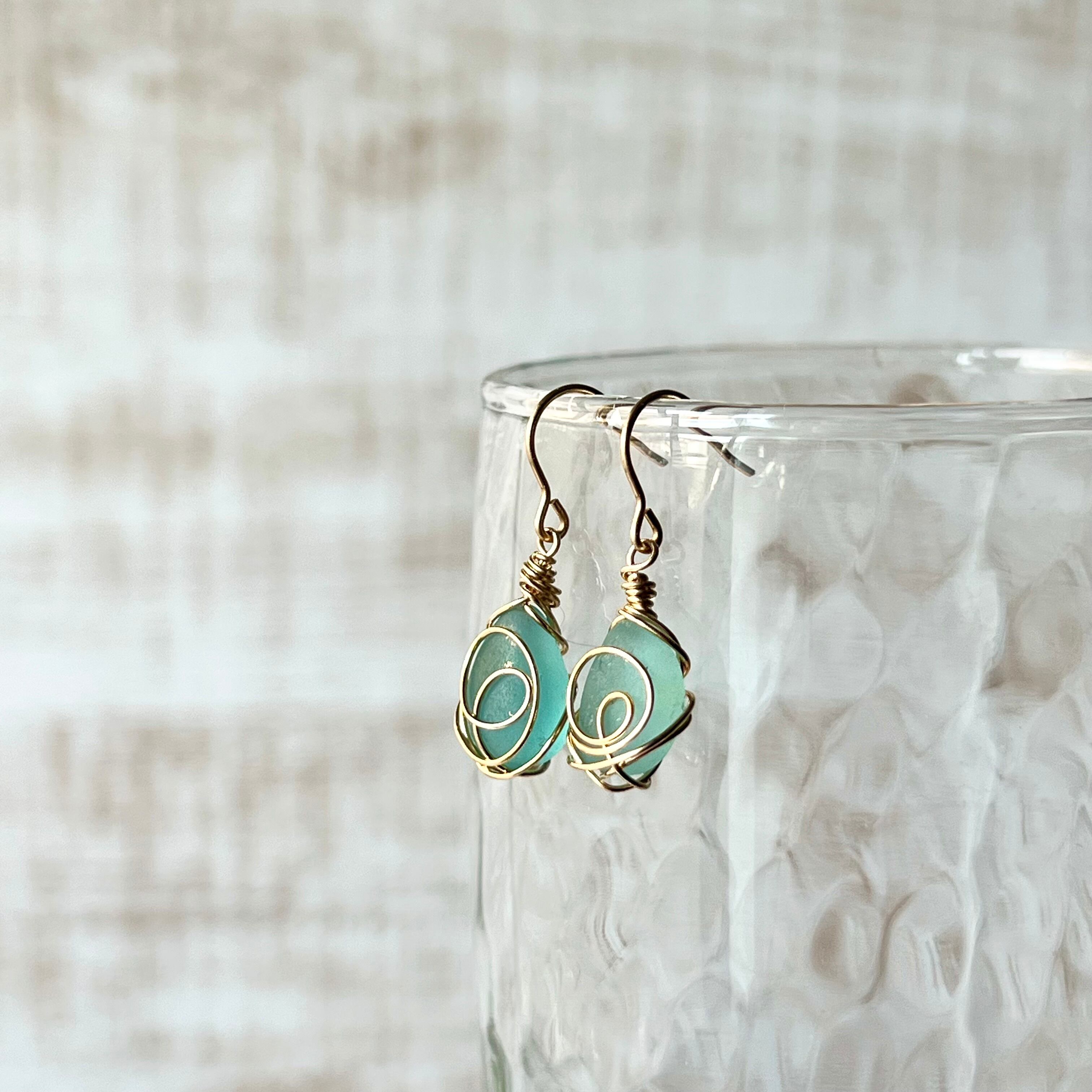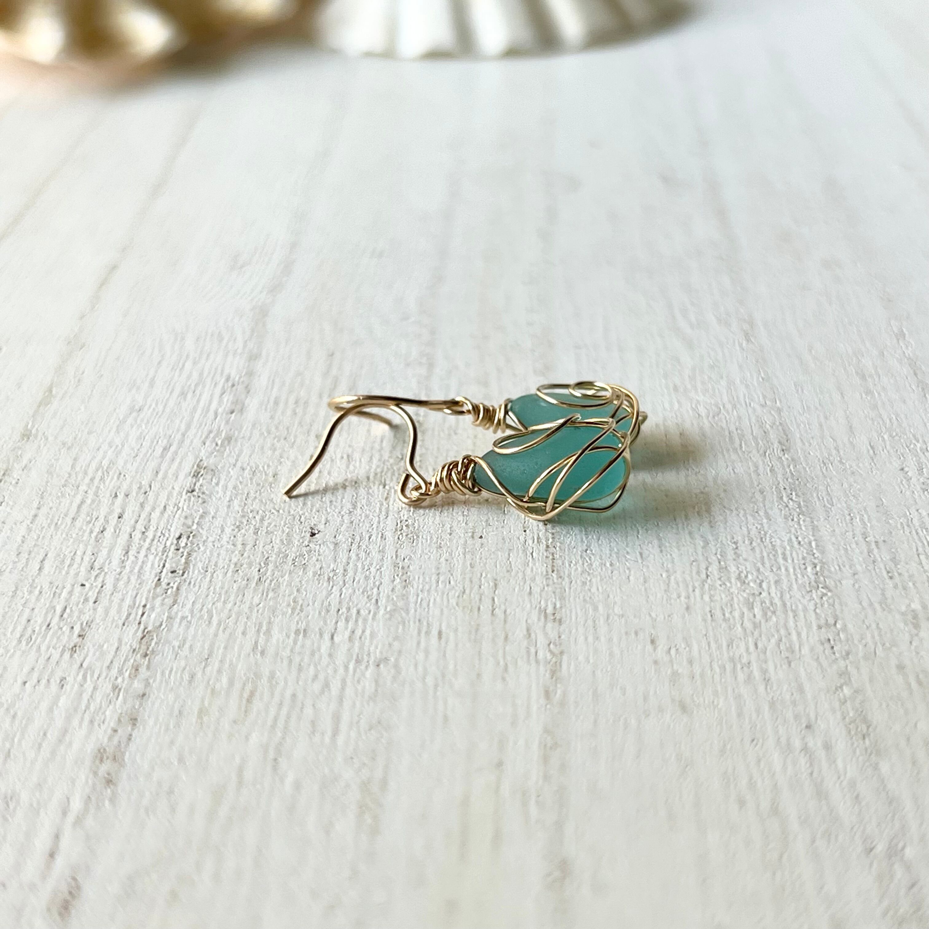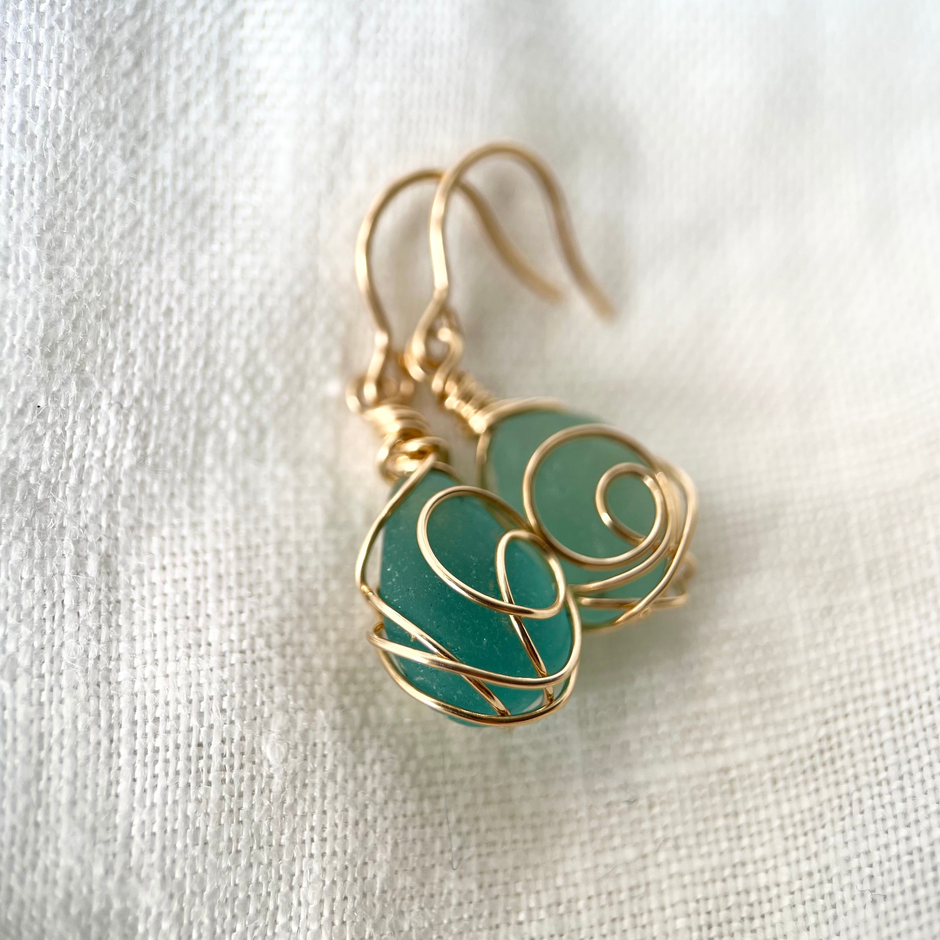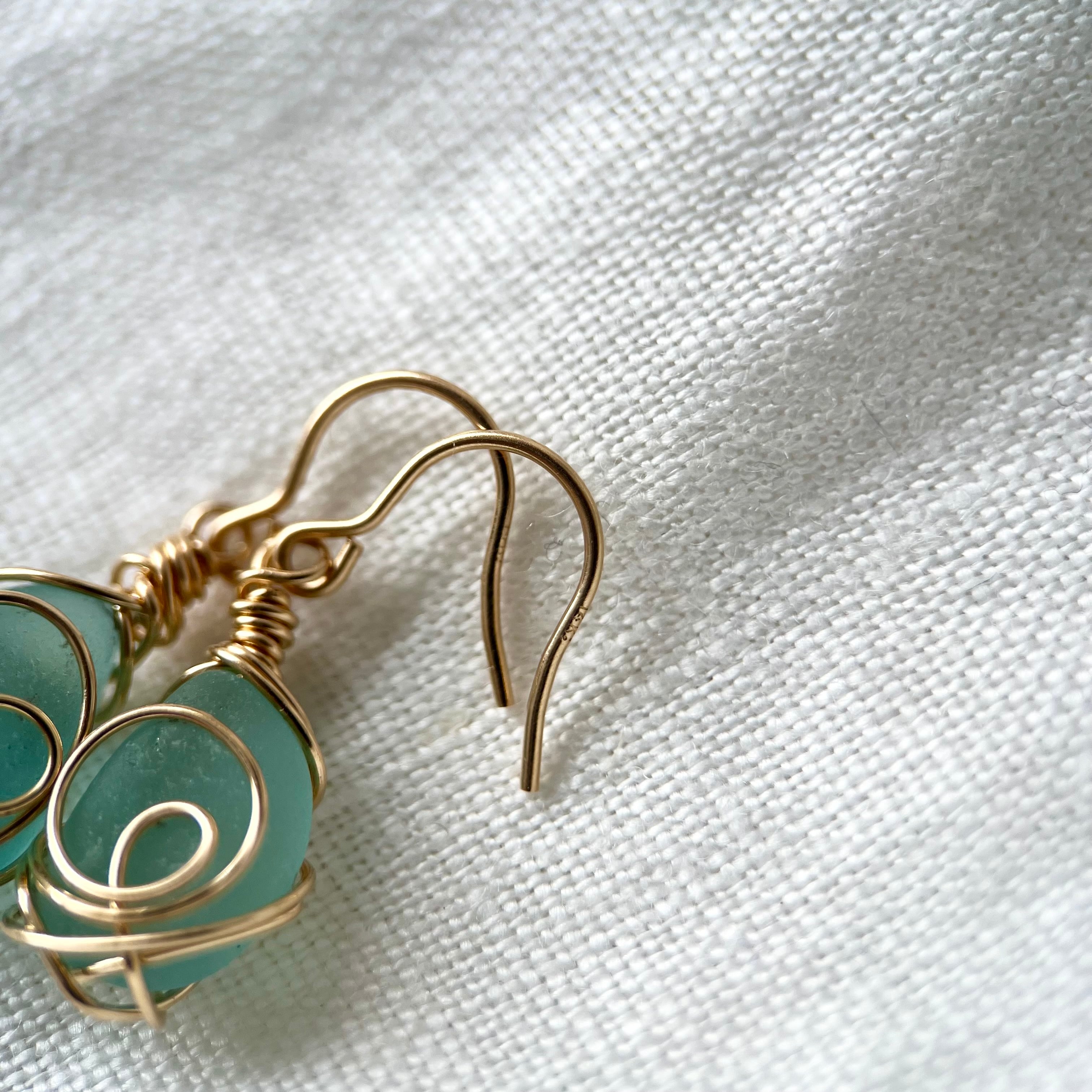 《淡路島シーグラス・14K》輝きを忘れない 海色シーグラスのフックピアス