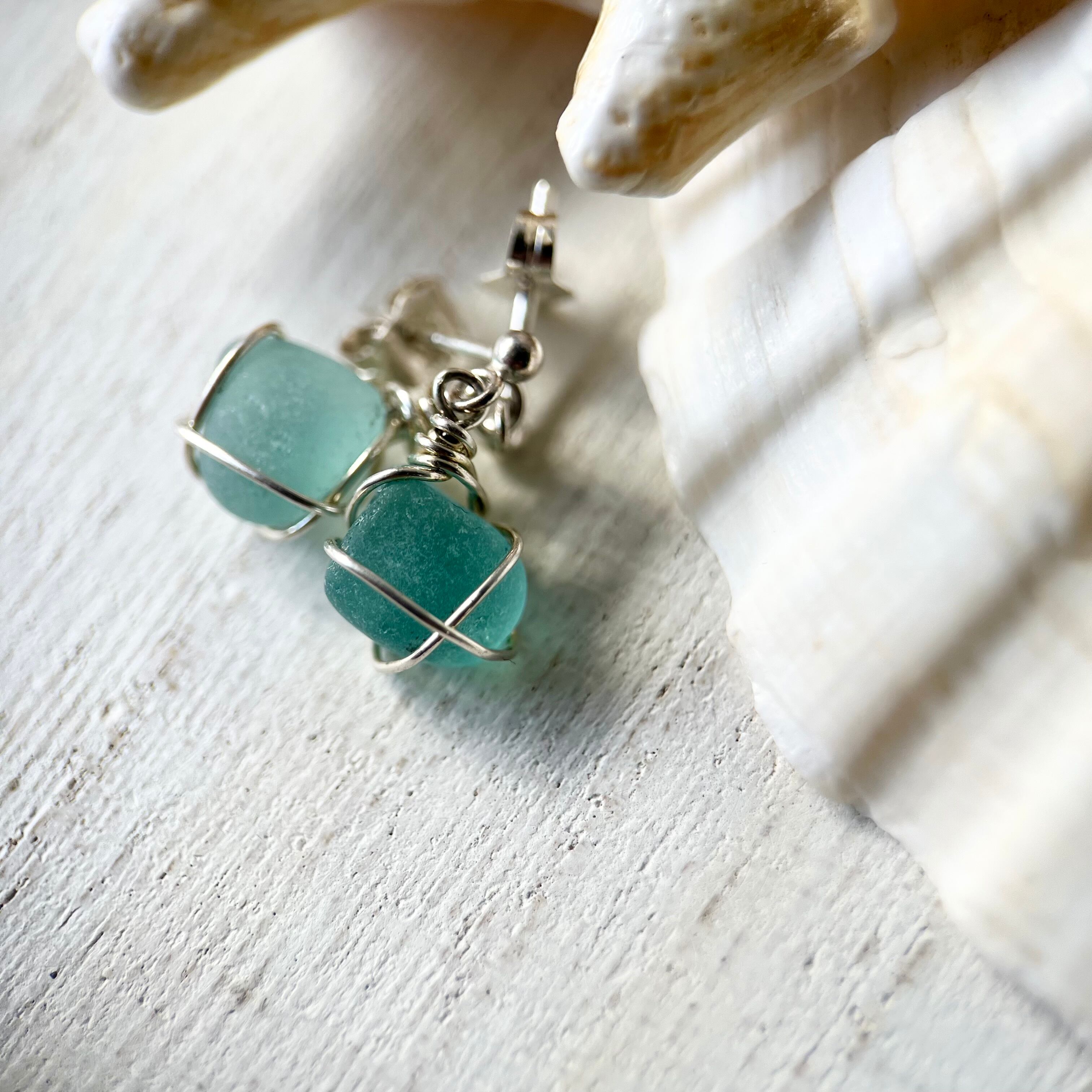 《スターリングシルバー/Silver925》海の一雫を身につける揺れる海色シーグラスのスタッズピアス