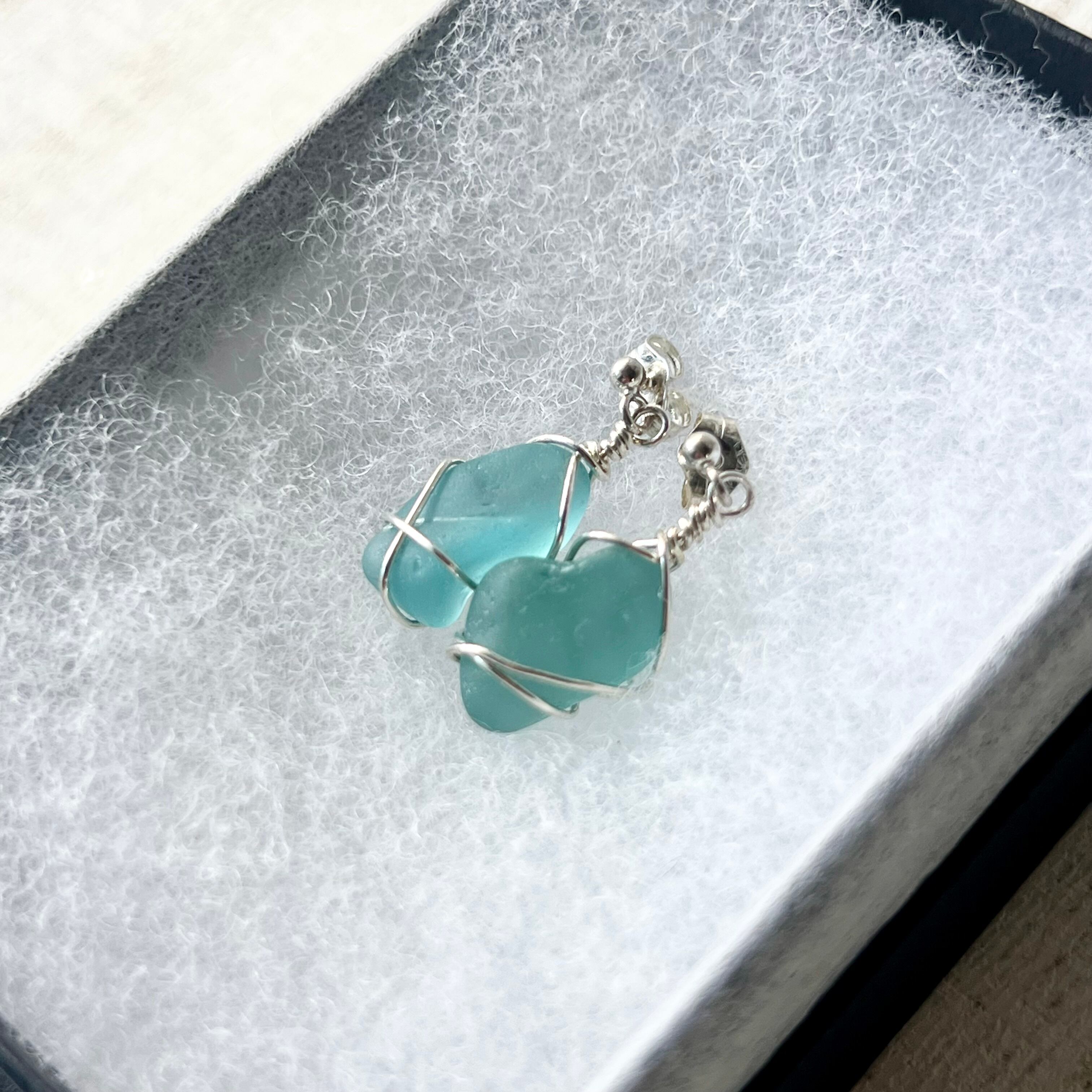 《スターリングシルバー/Silver925》海色シーグラスの揺れるスタッズピアス―小さな海をいつでもそばに―