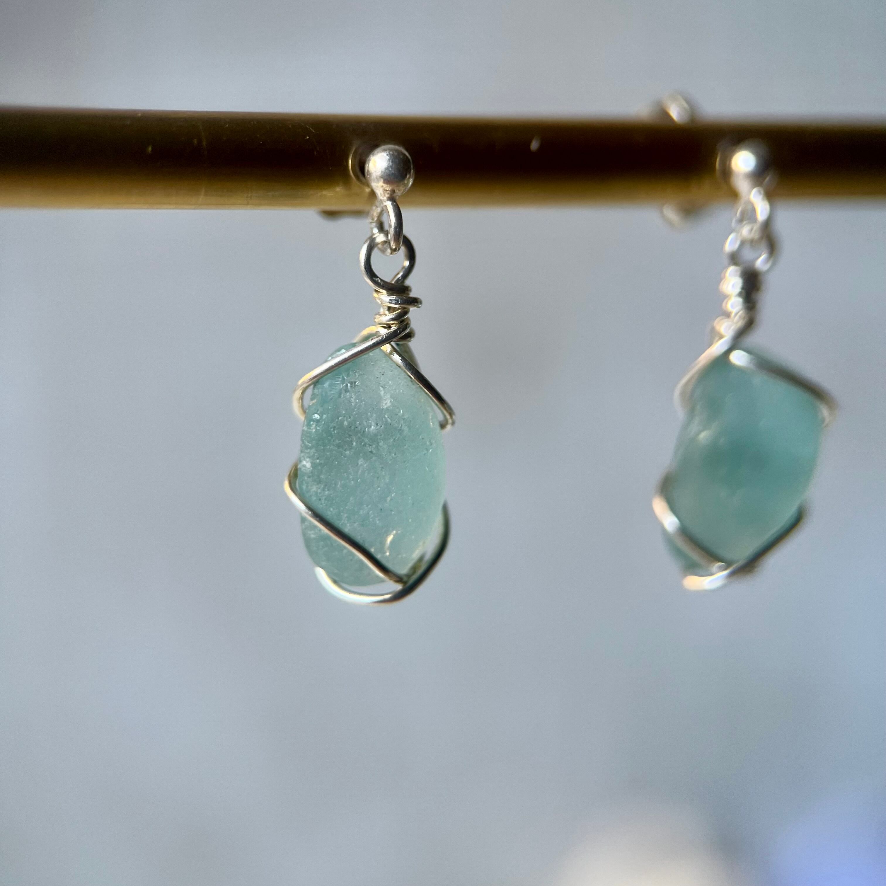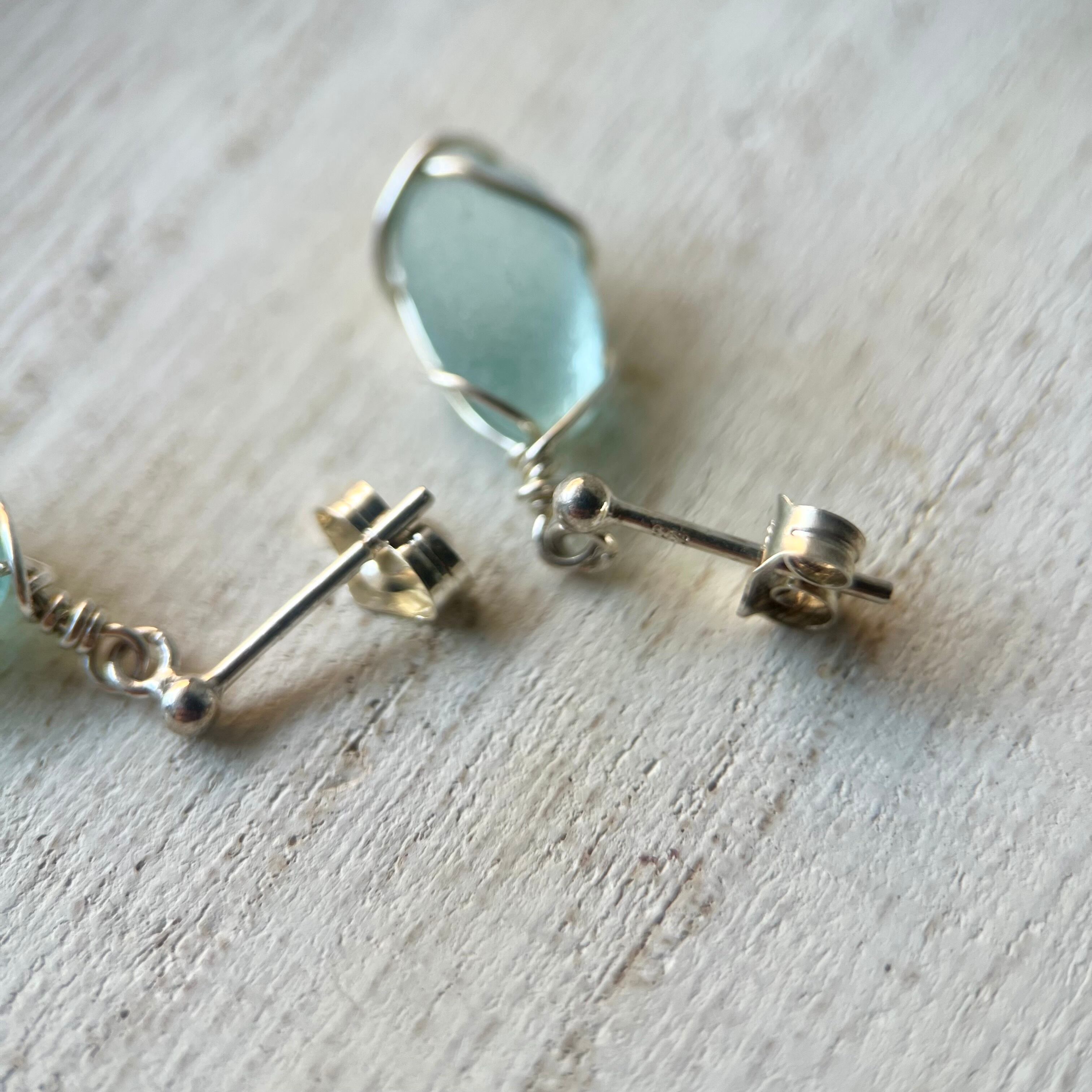 《スターリングシルバー/Silver925》空色シーグラスの揺れるスタッズピアス―いろんな空の色と共に―