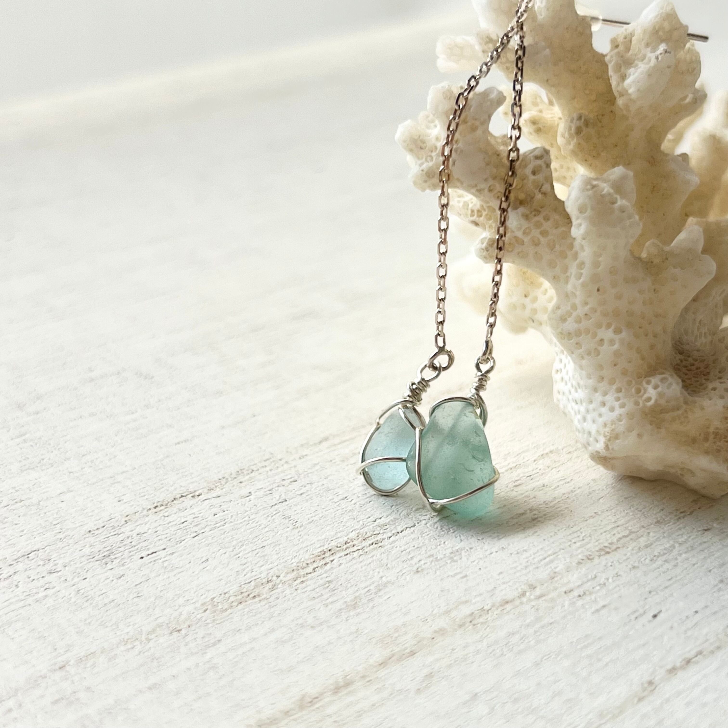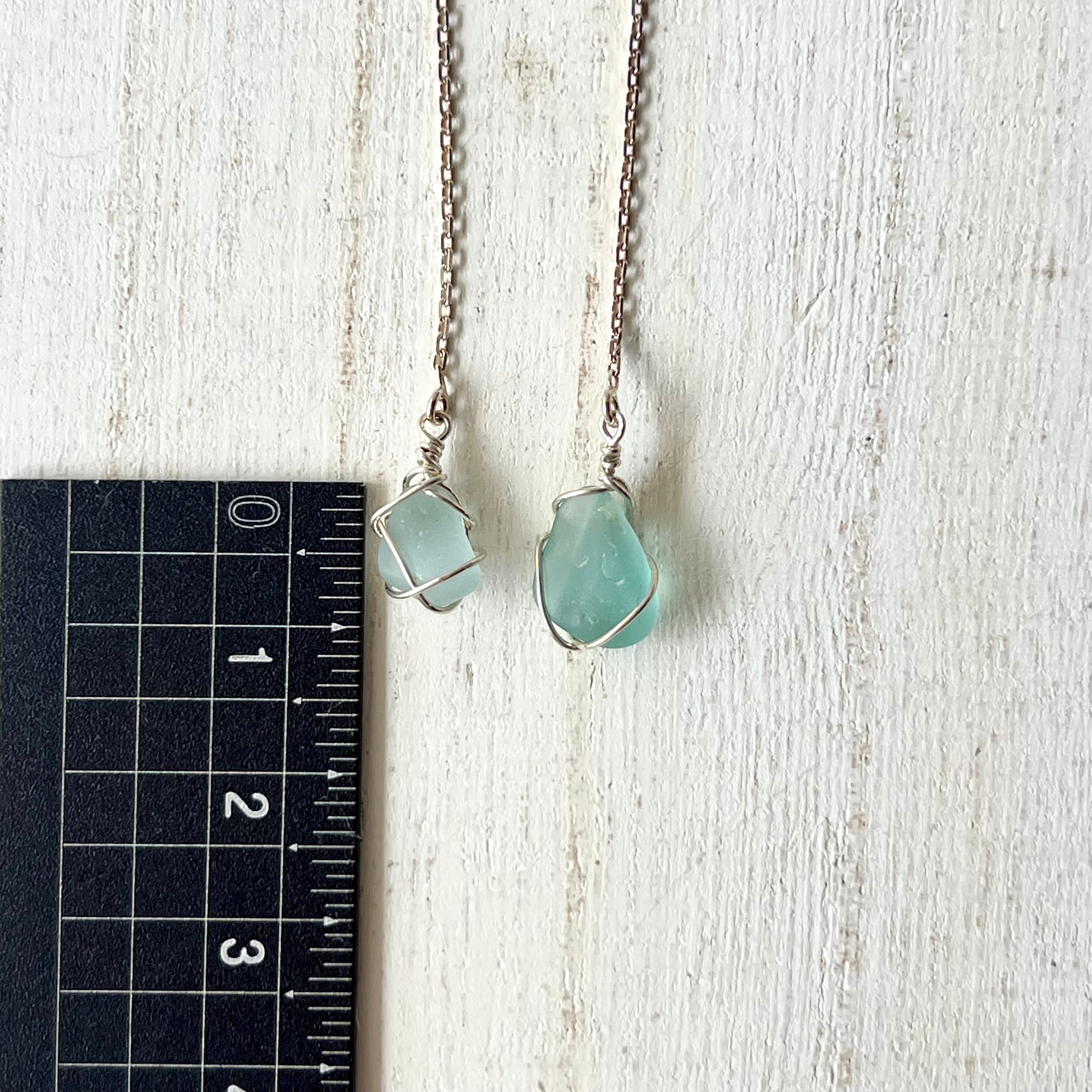 《スターリングシルバー/Silver925》ブルーシーグラスのロングピアス―小さく揺れる空と海―
