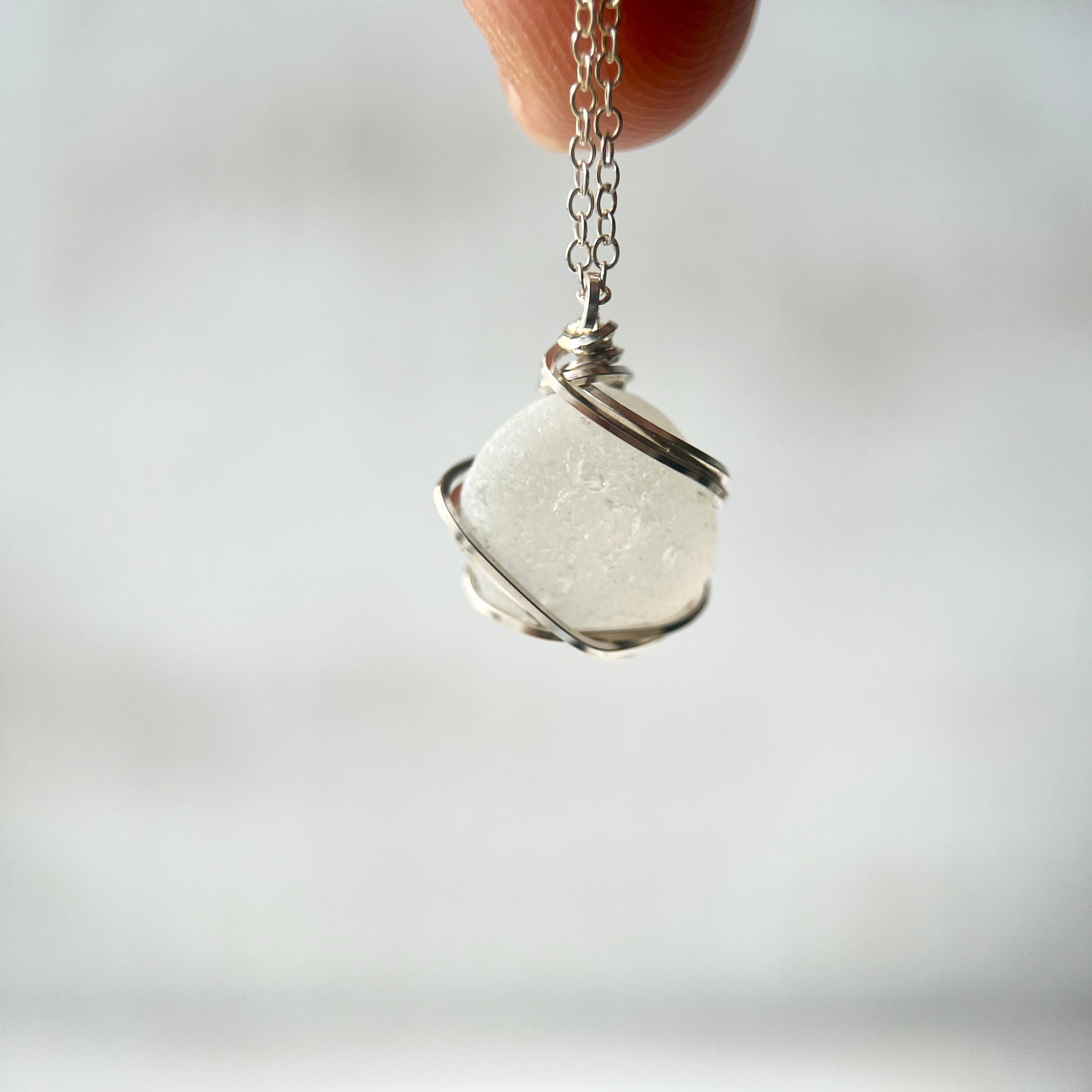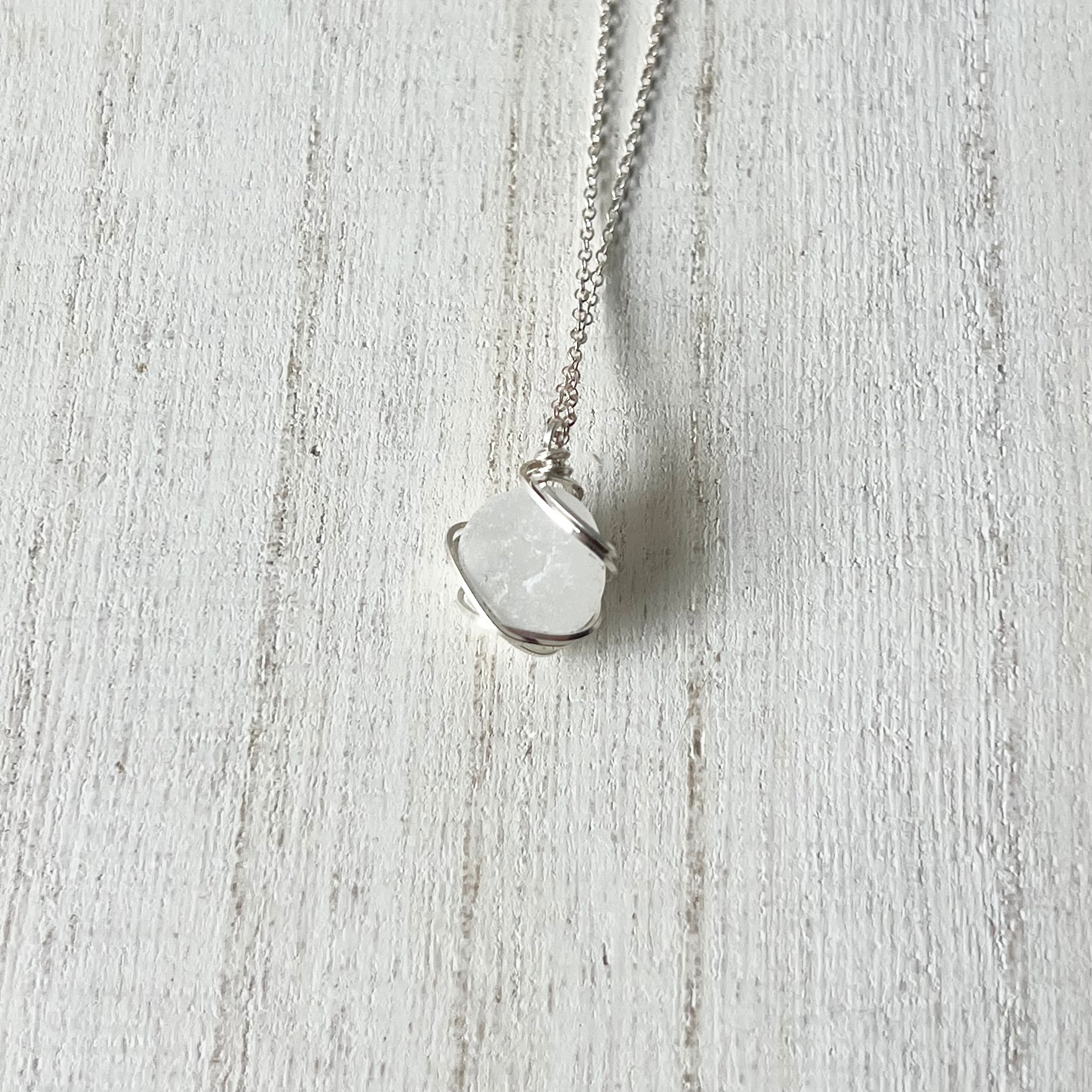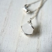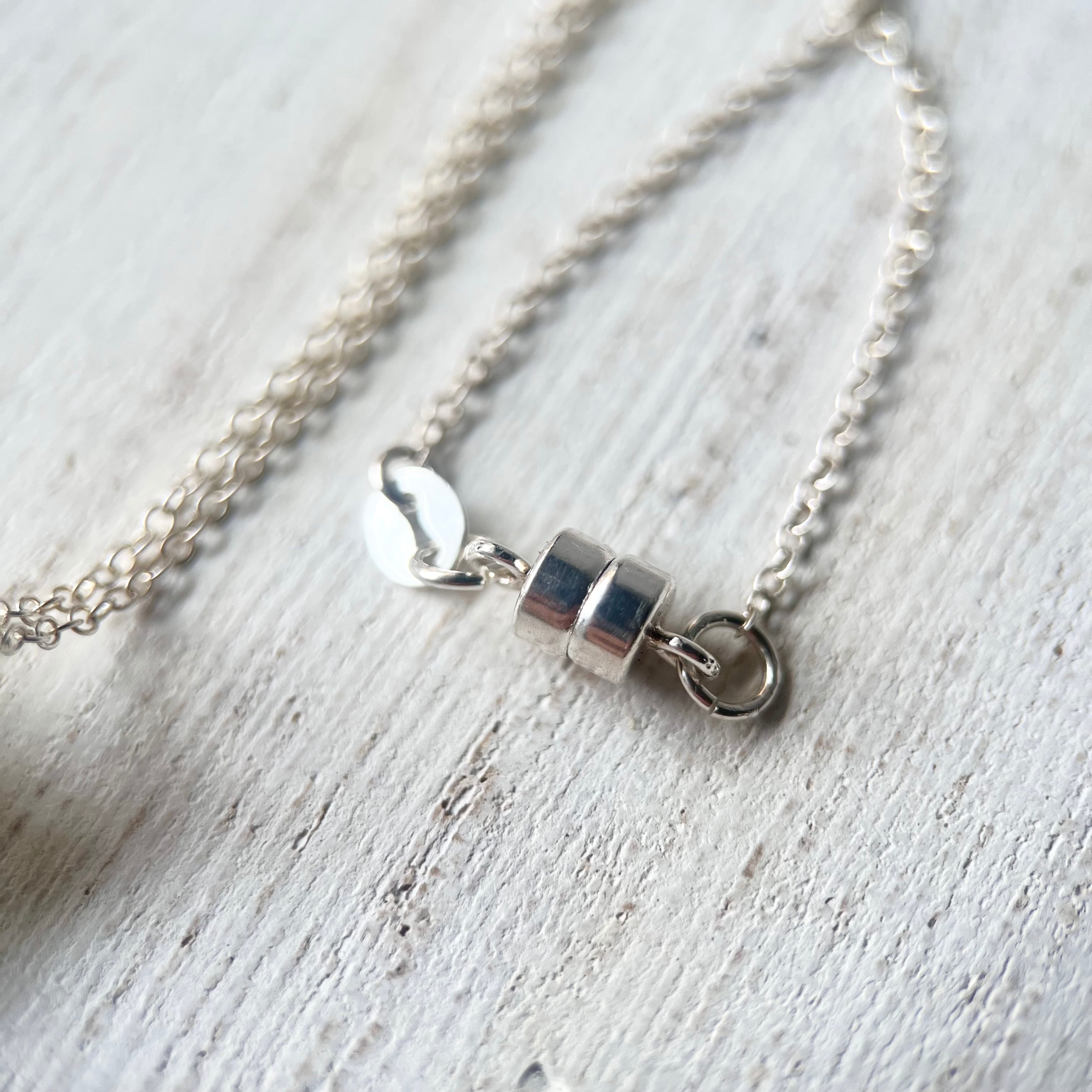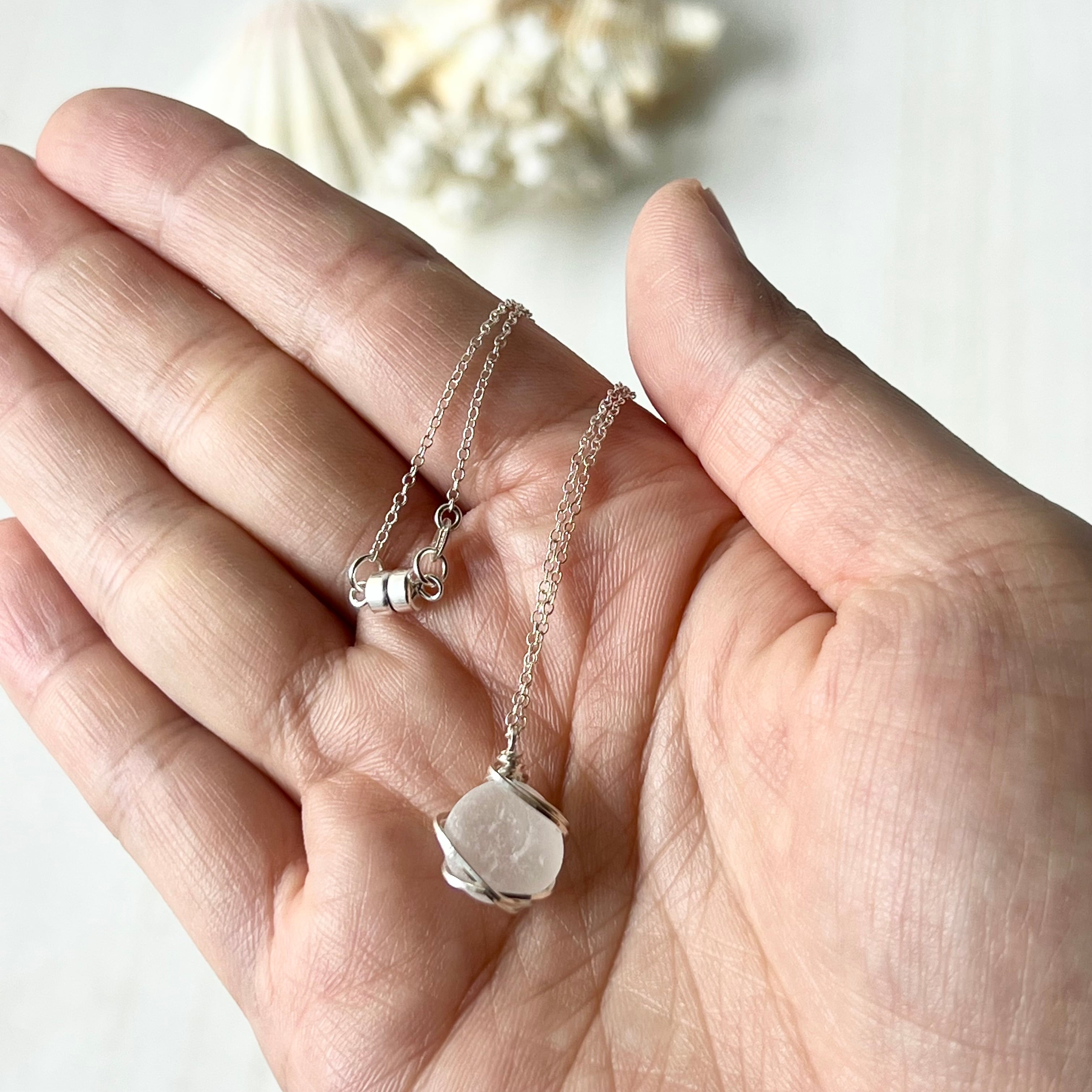 《Silver925》ホワイトシーグラスビーズのマグネットネックレス 50cm