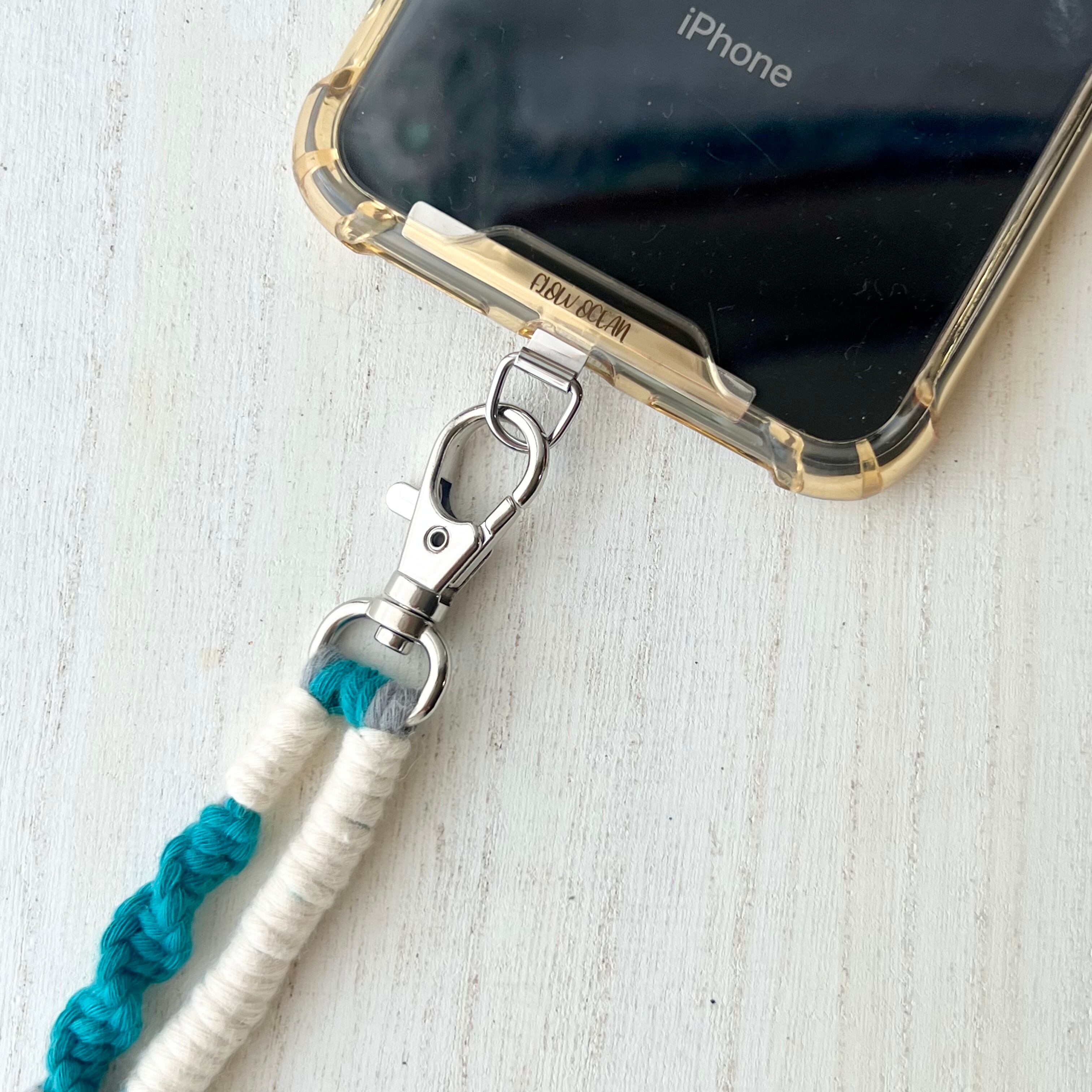 シーグラスと相性抜群!デニムやリネンに合うマクラメハンドストラップ~ ピーコックブルー×デニムアッシュ×生成 ~