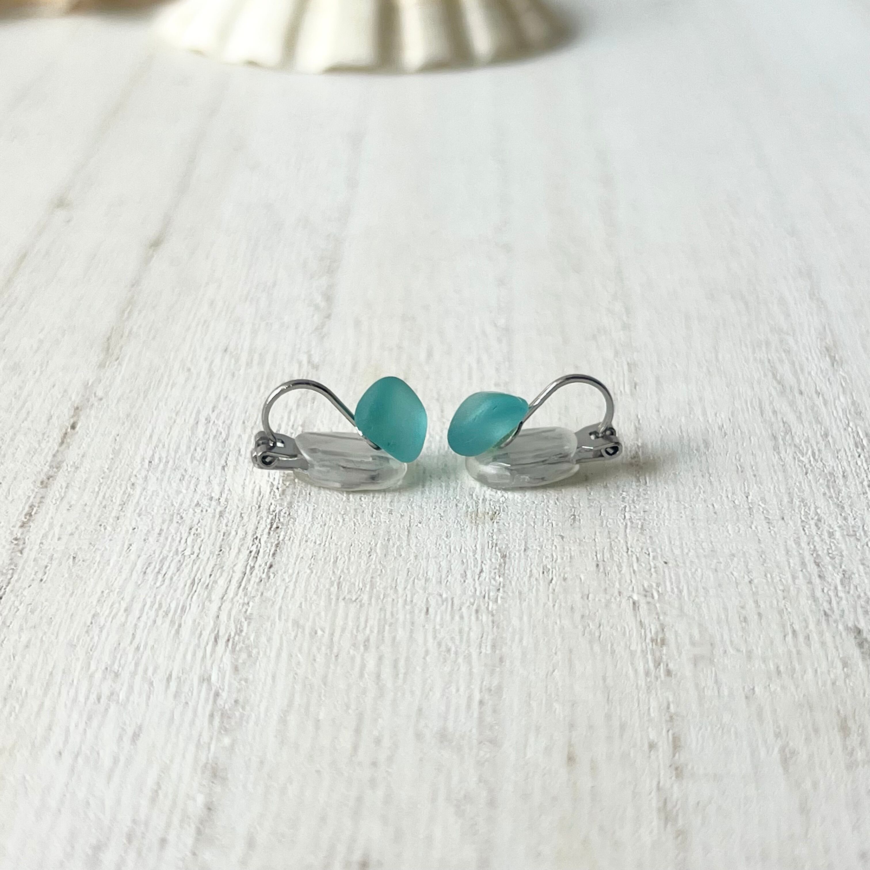 小さな海をいつでも身につけられる海色シーグラスのシルバークリップピアス