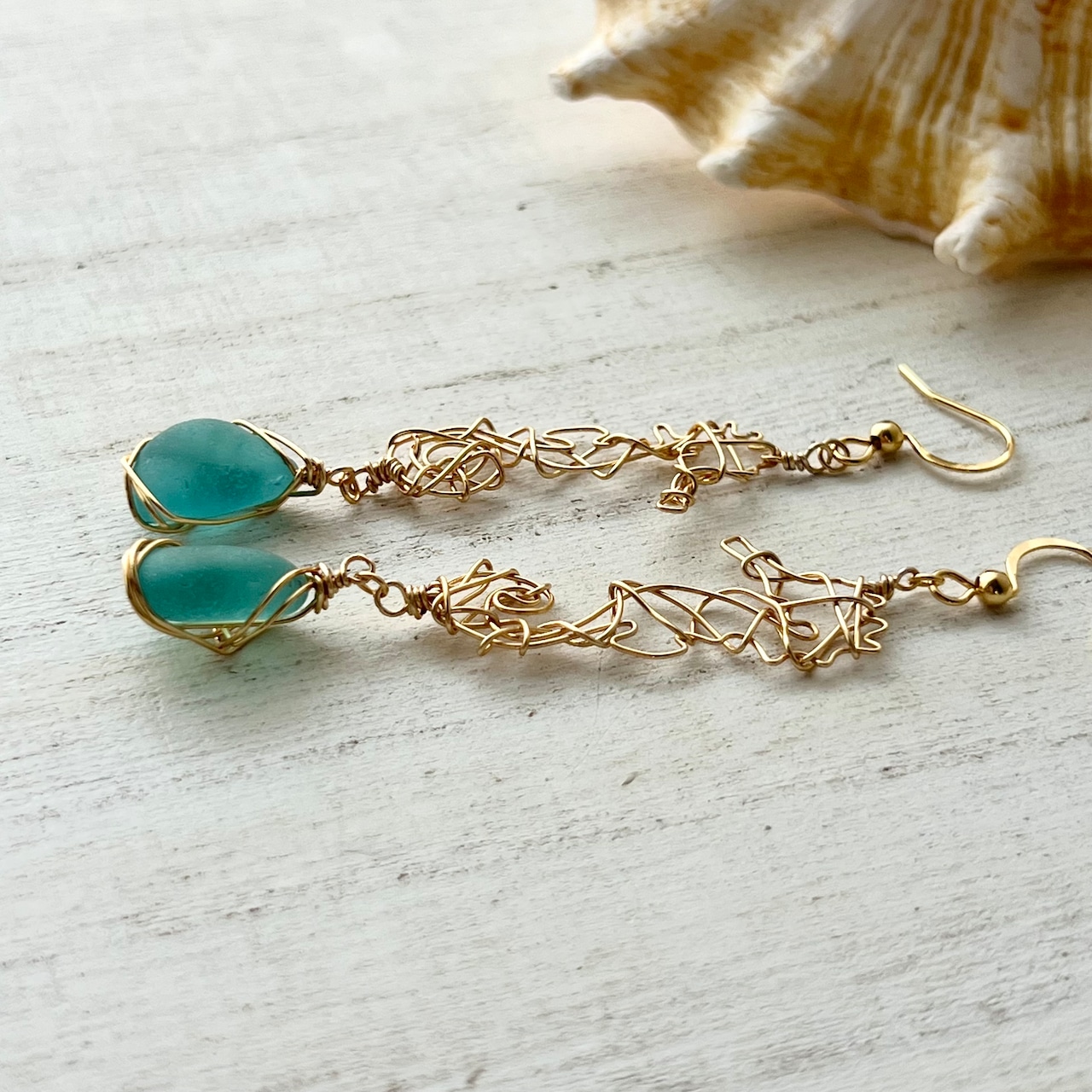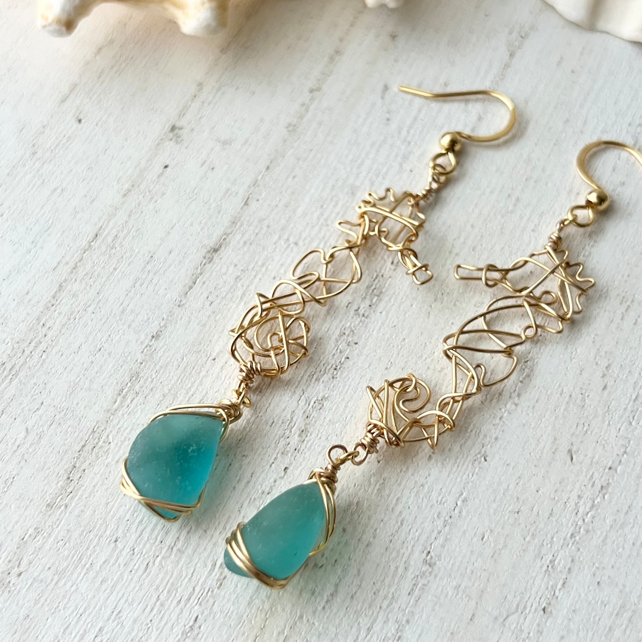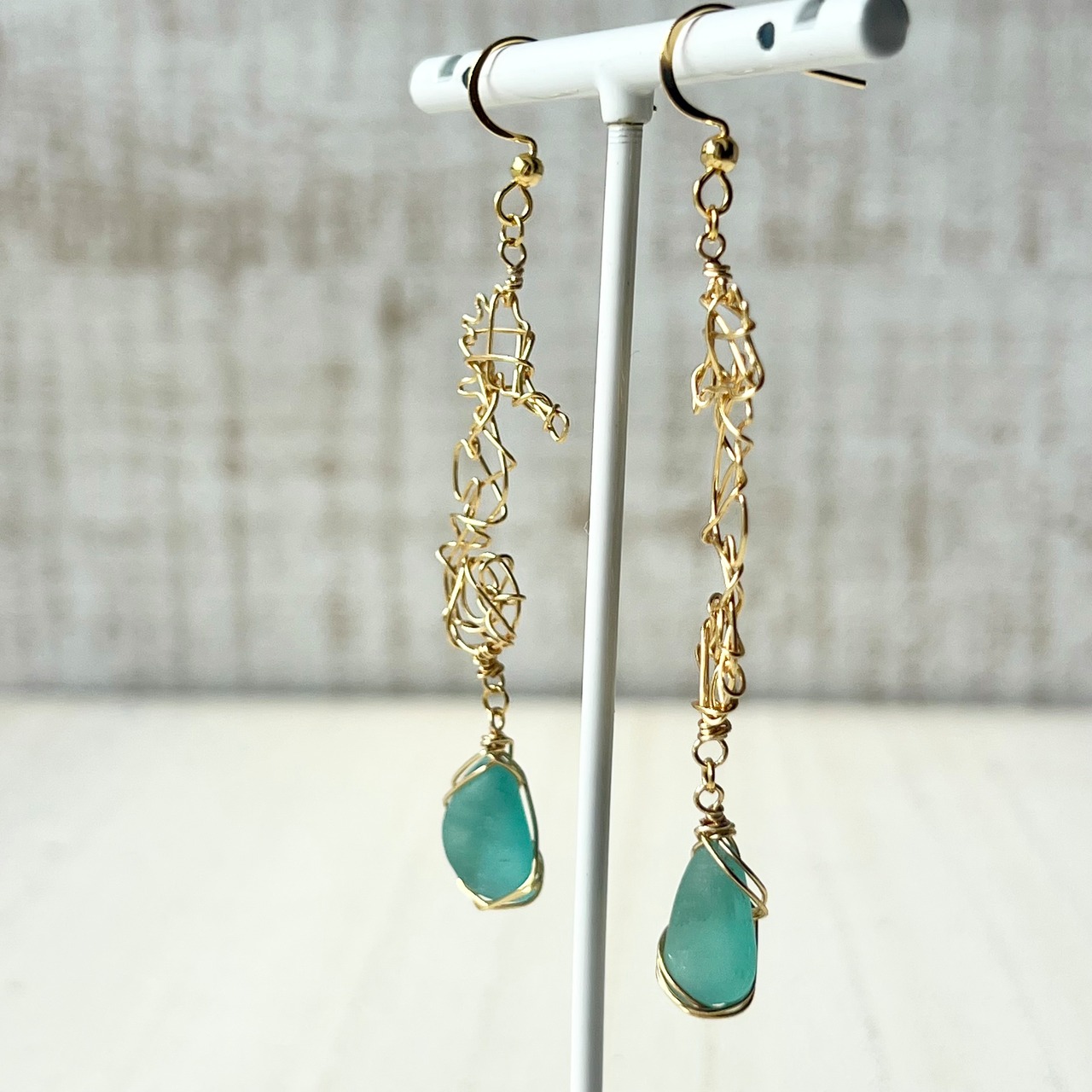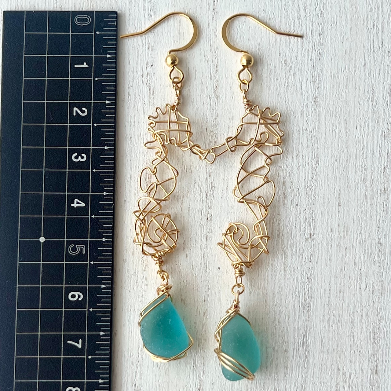 海色シーグラスを持つ幸せの象徴タツノオトシゴのピアス〝yurayura〟