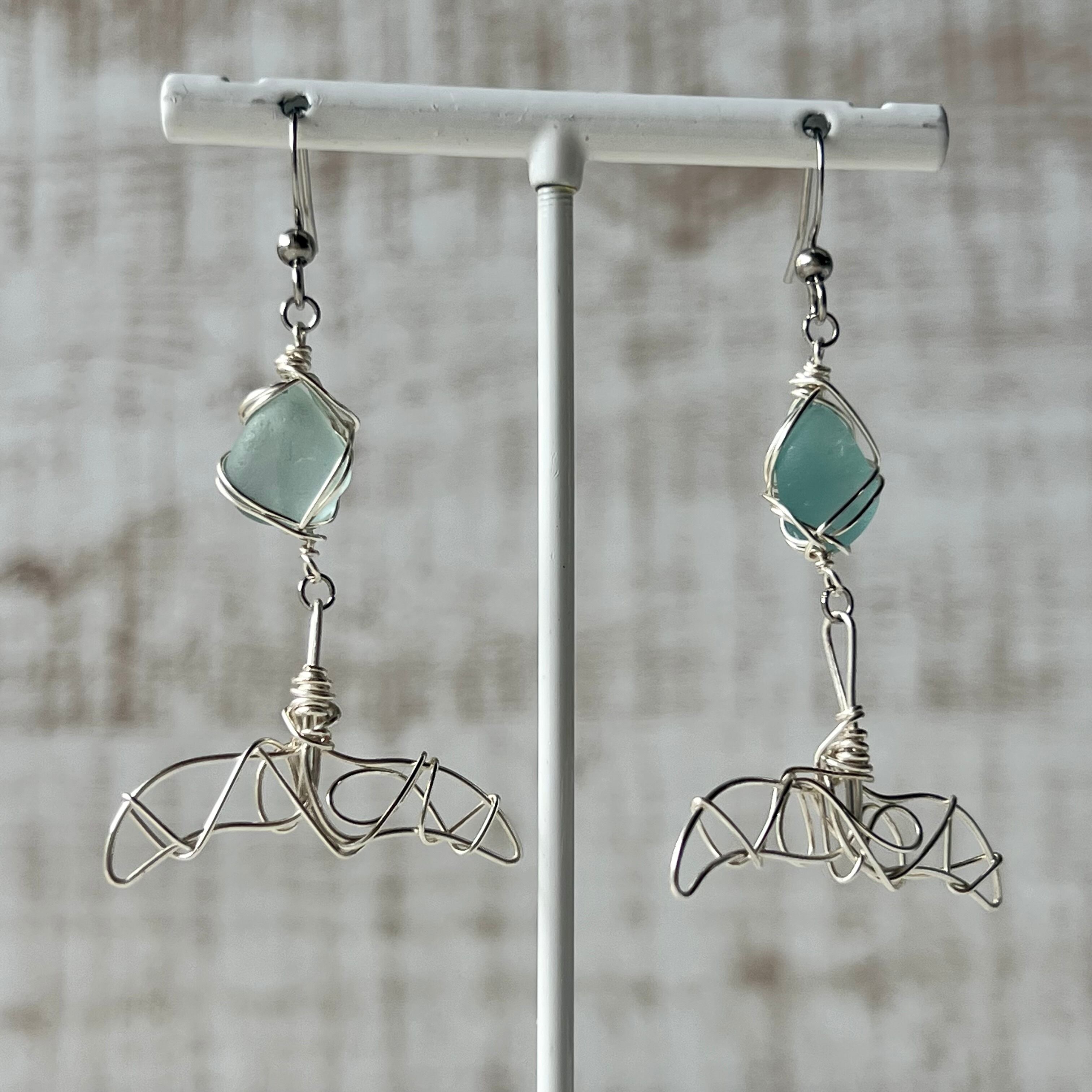 幸せが訪れるホエールテールの空色シーグラスピアス〝yurayura〟