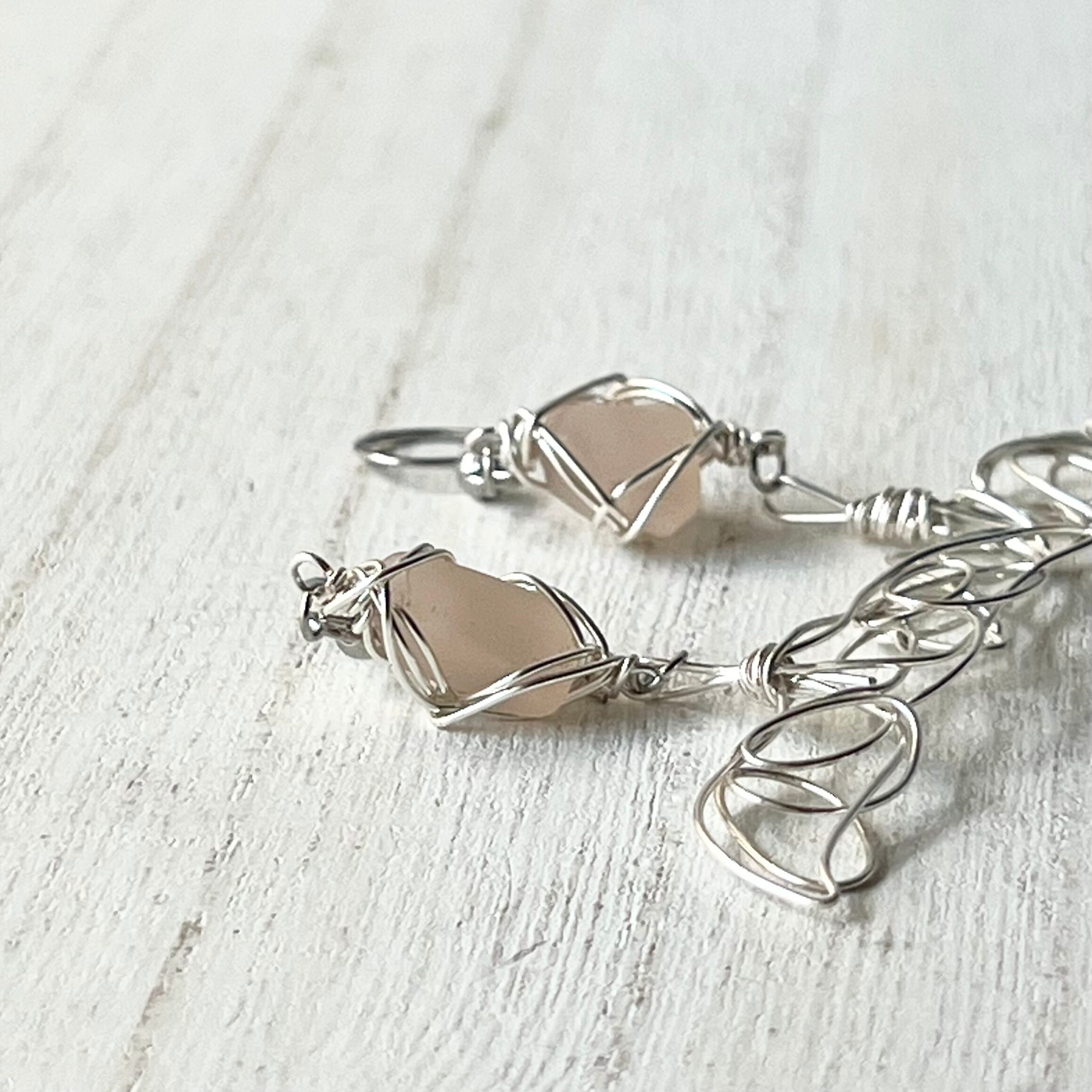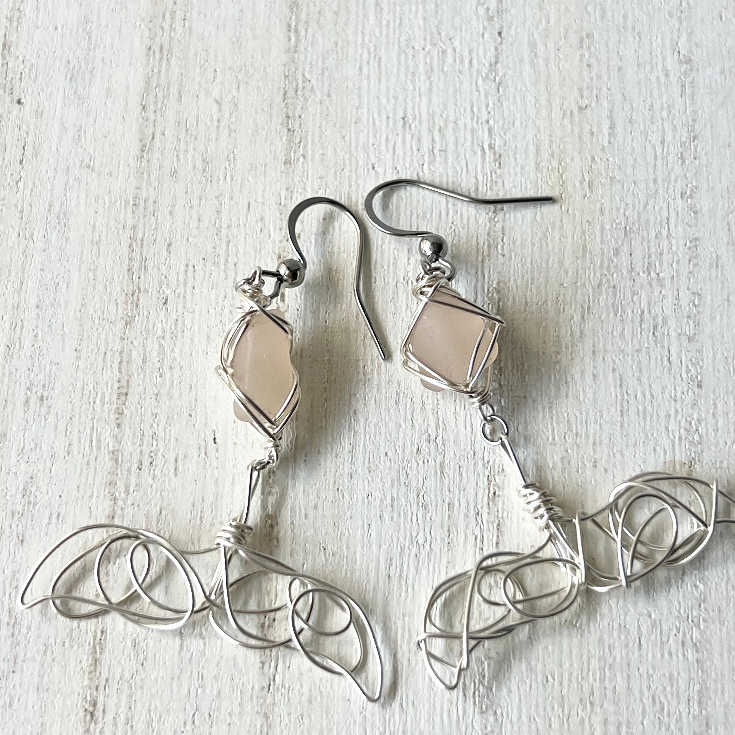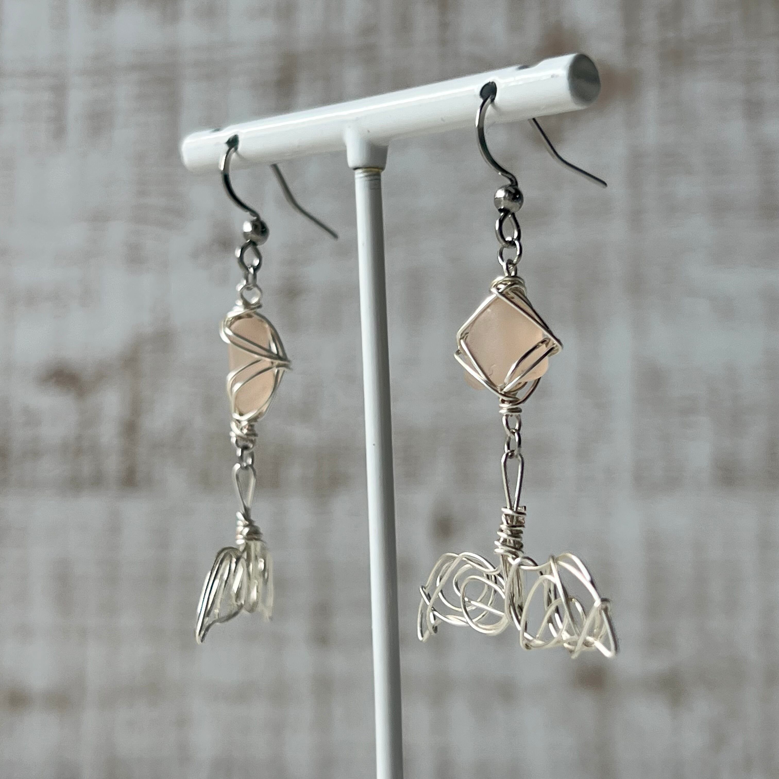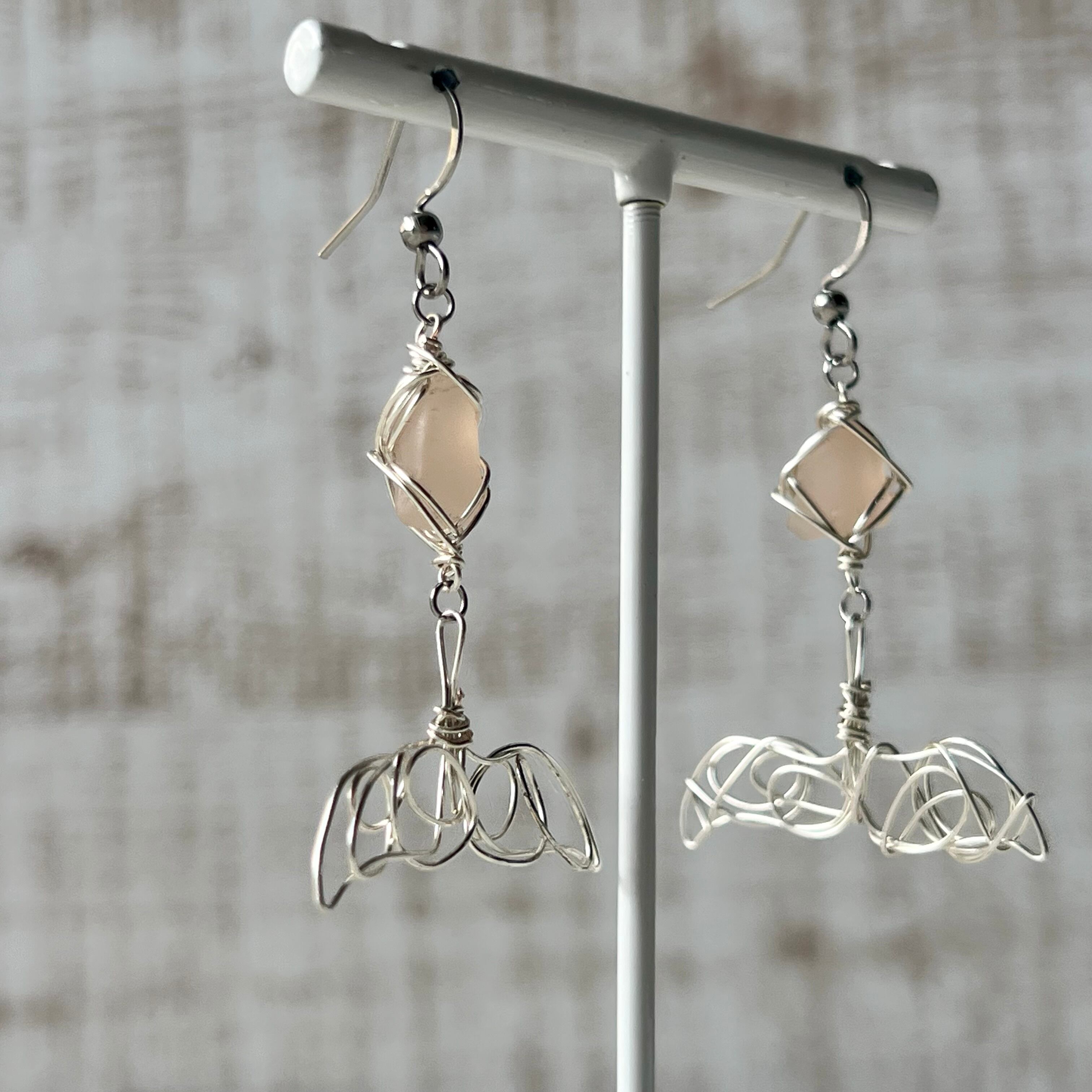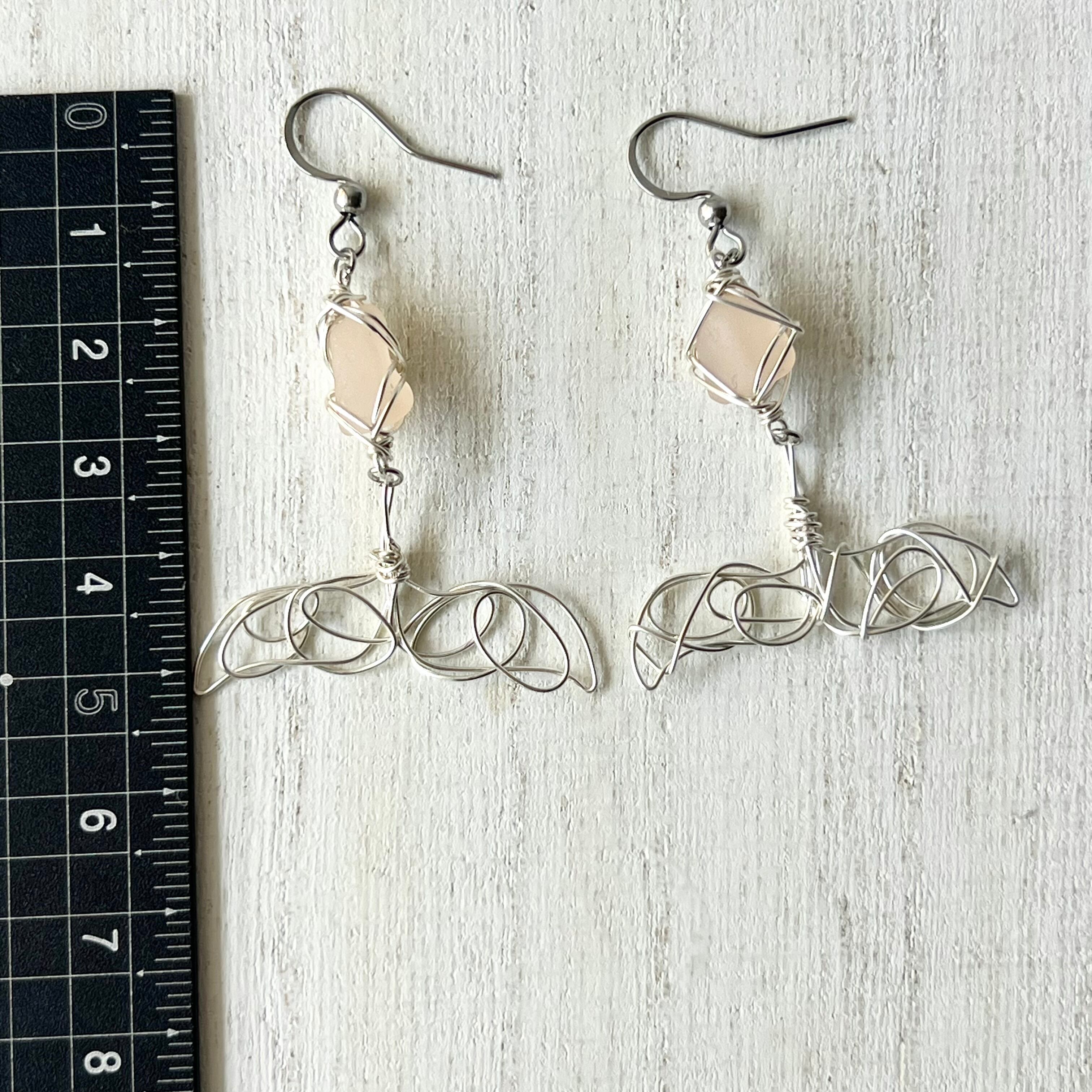 幸せが訪れるホエールテールのピンクシーグラスピアス〝yurayura〟