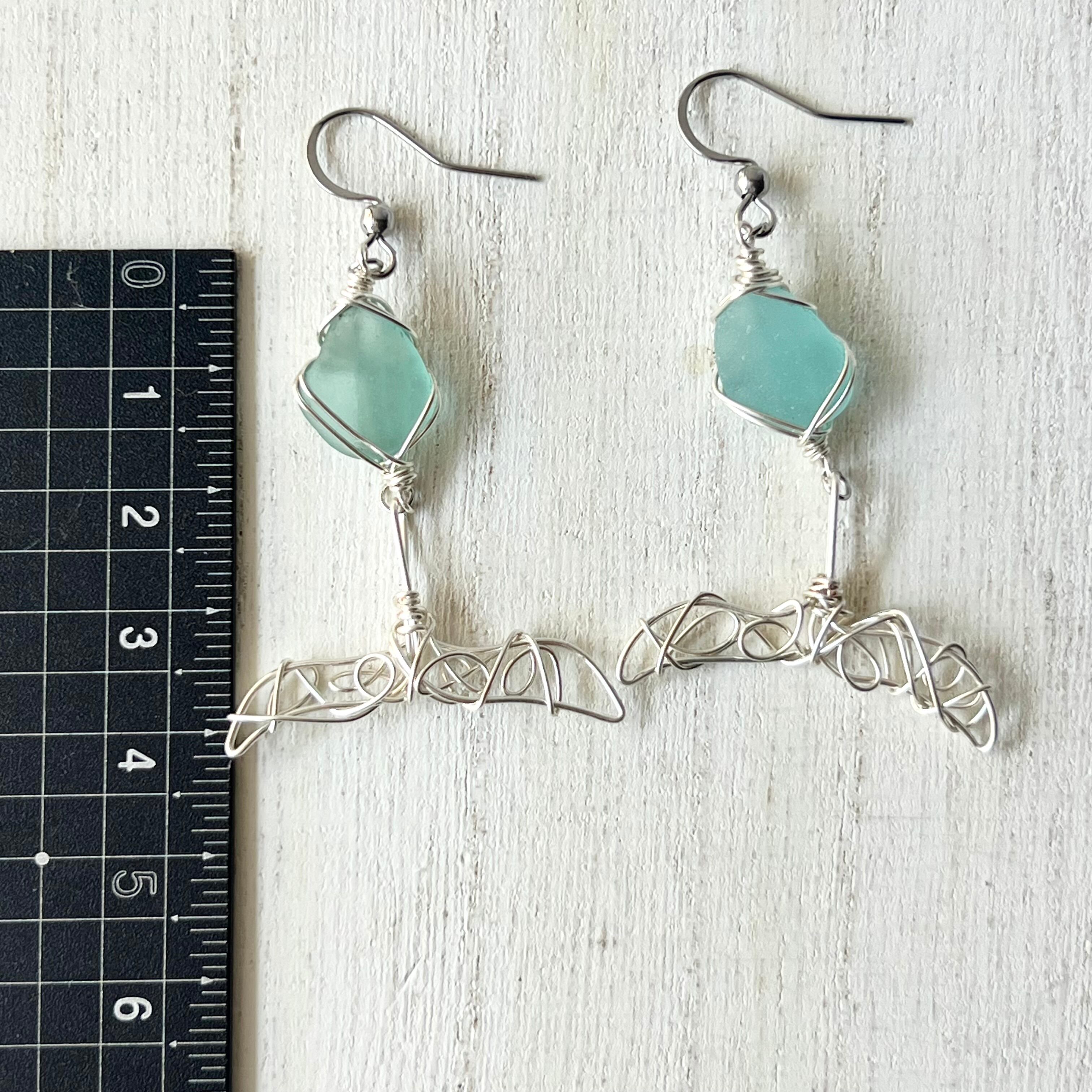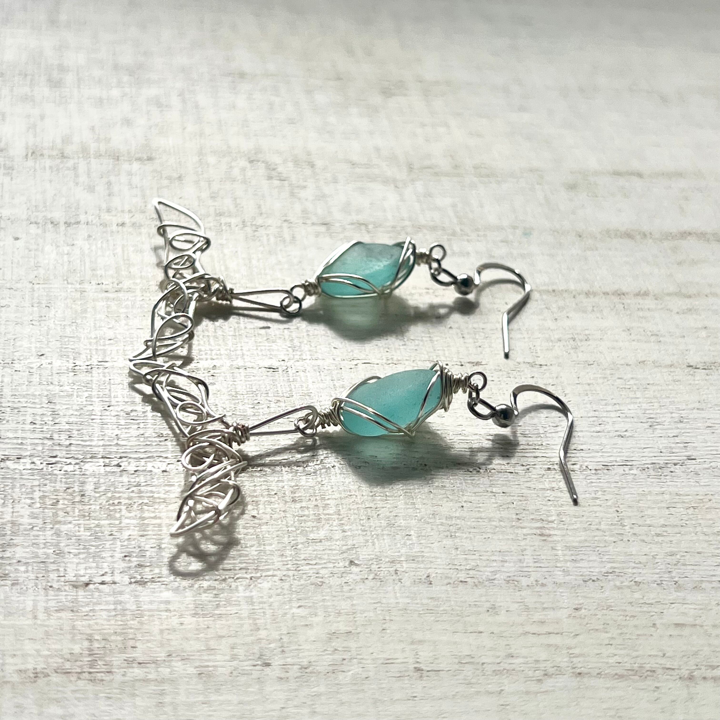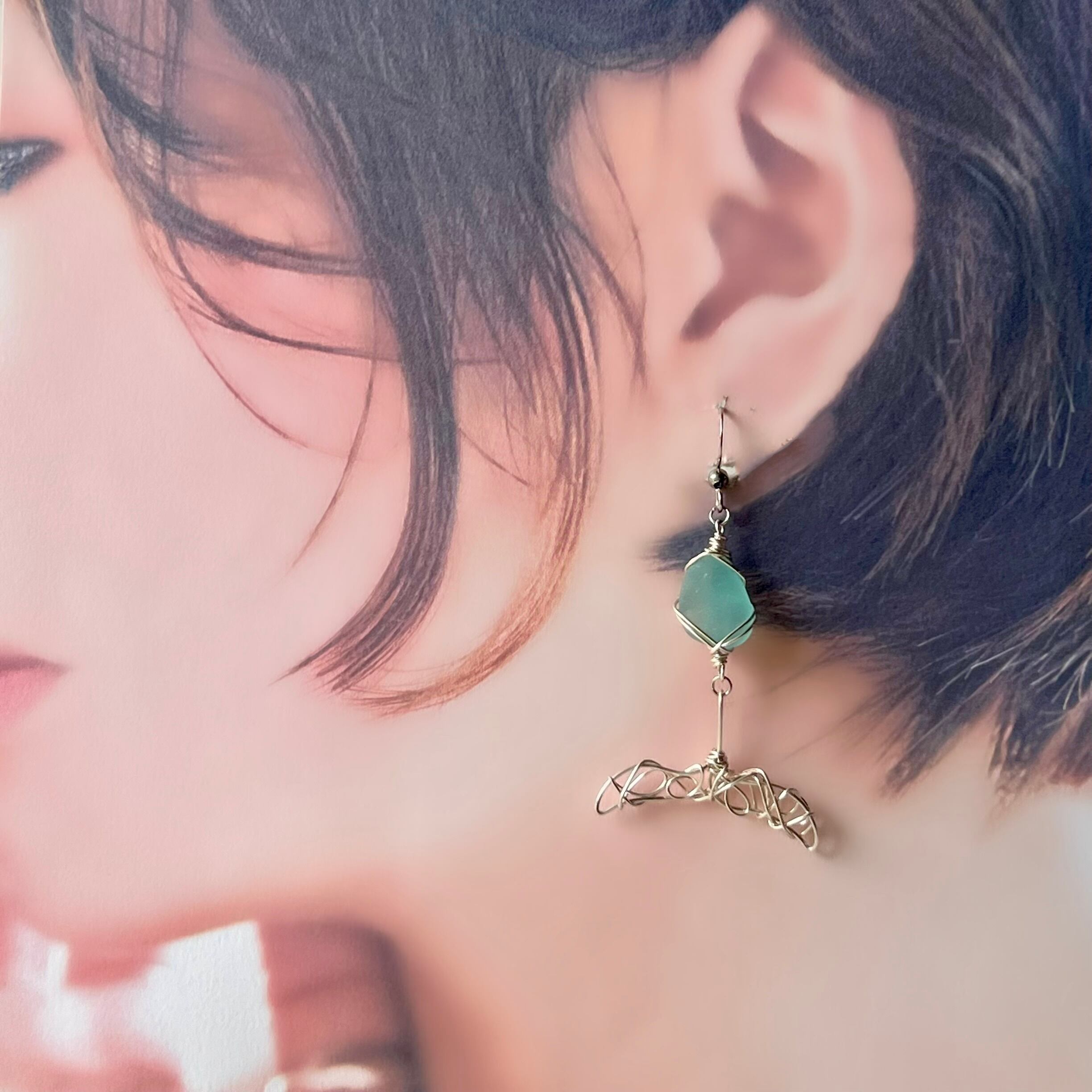 幸せが訪れるホエールテールの海色シーグラスピアス〝yurayura〟