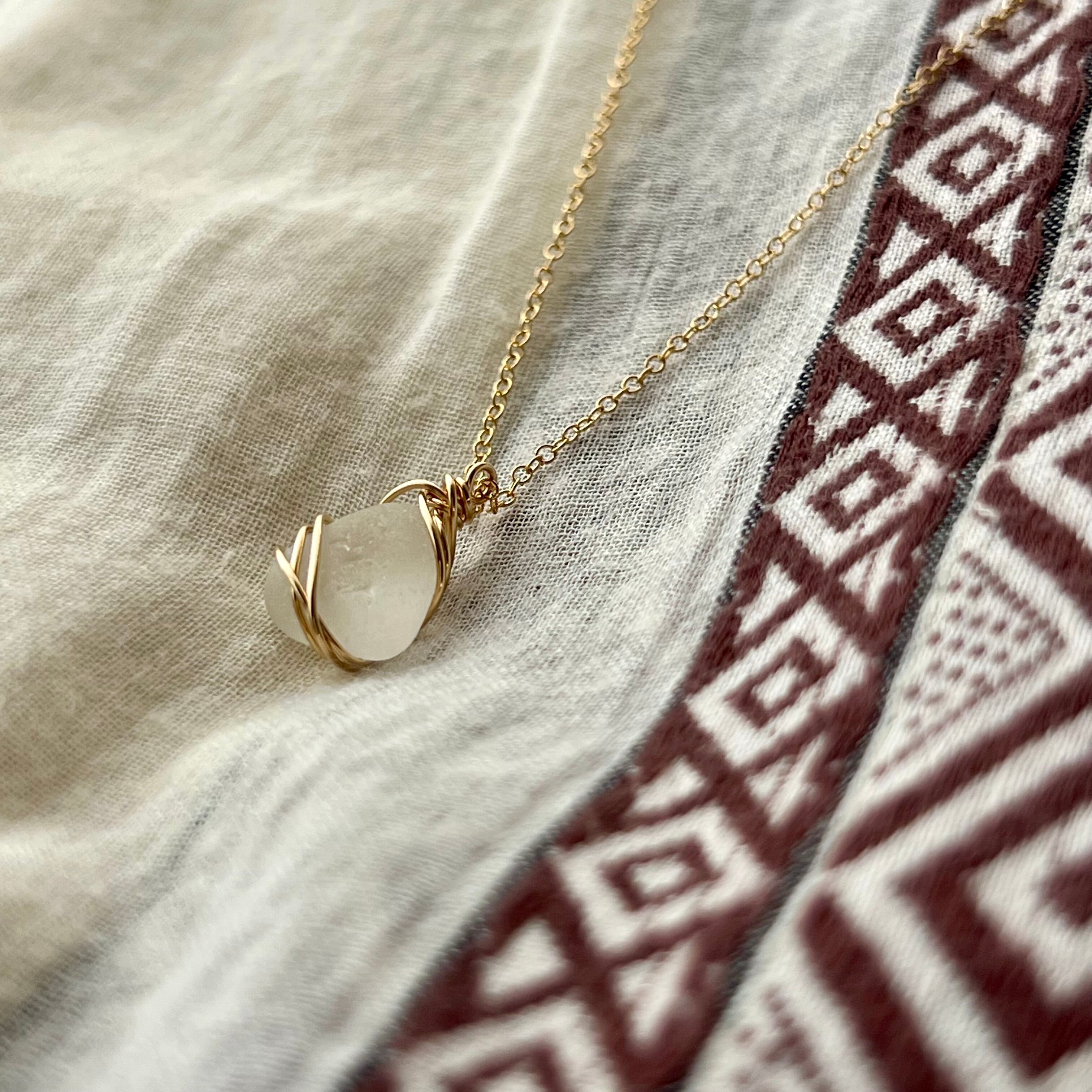 《14kgf》魅力を引き出す小さなホワイトシーグラスのネックレス 48cm