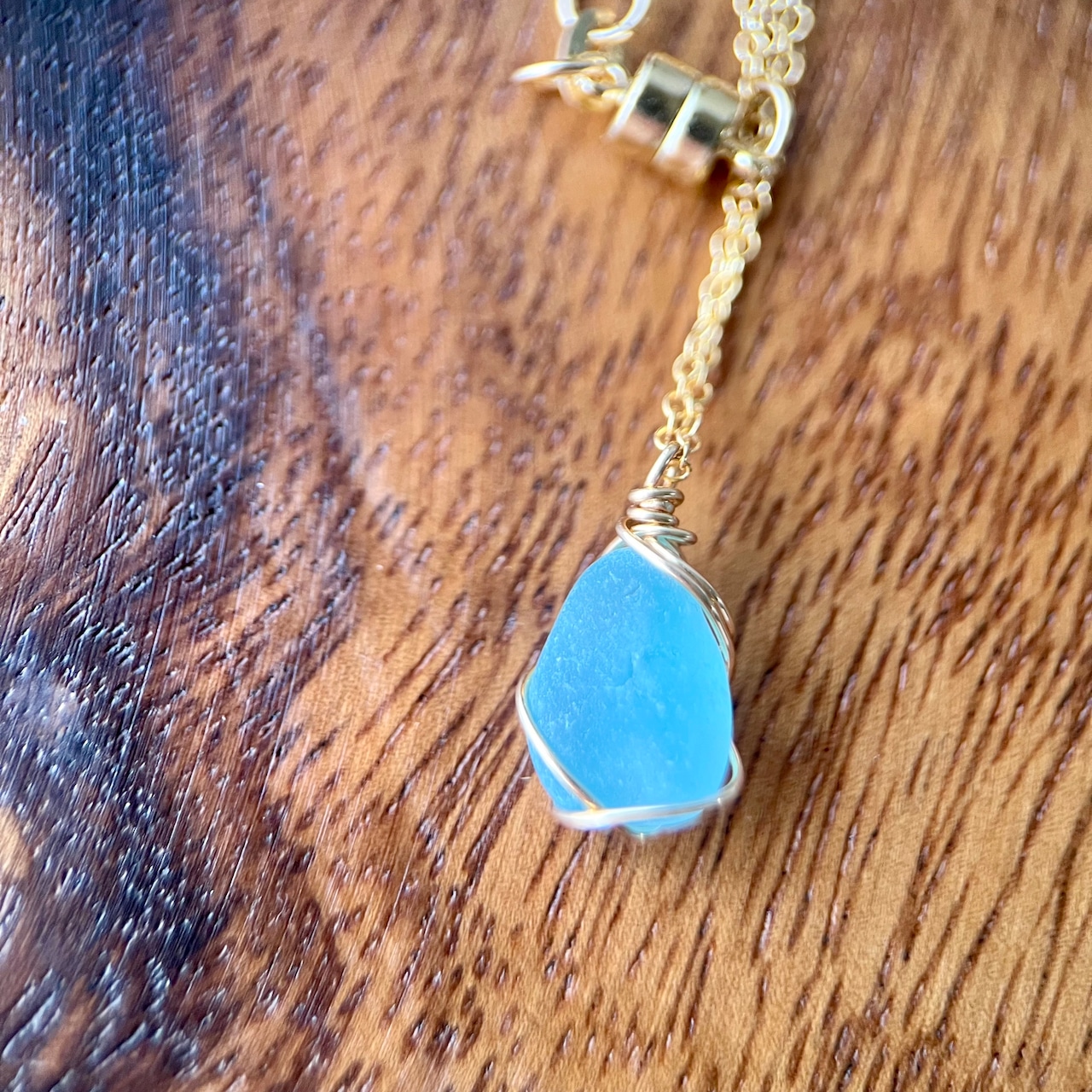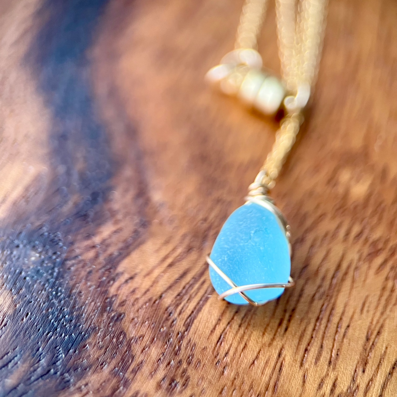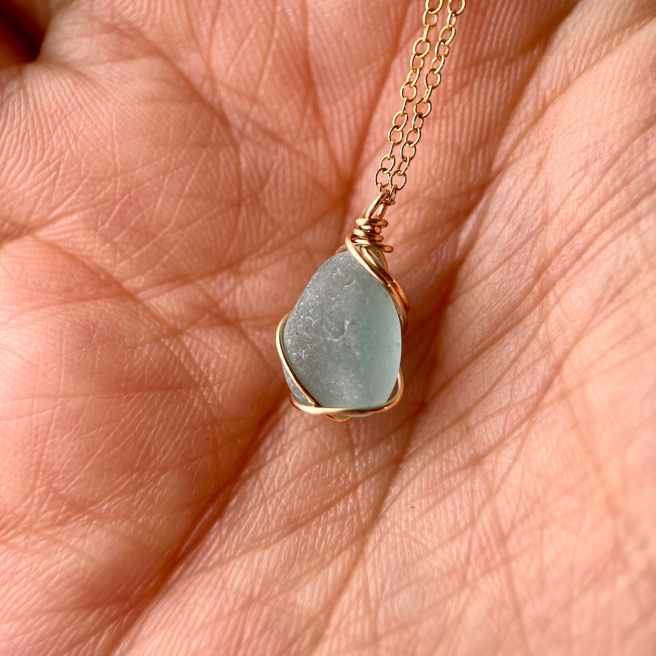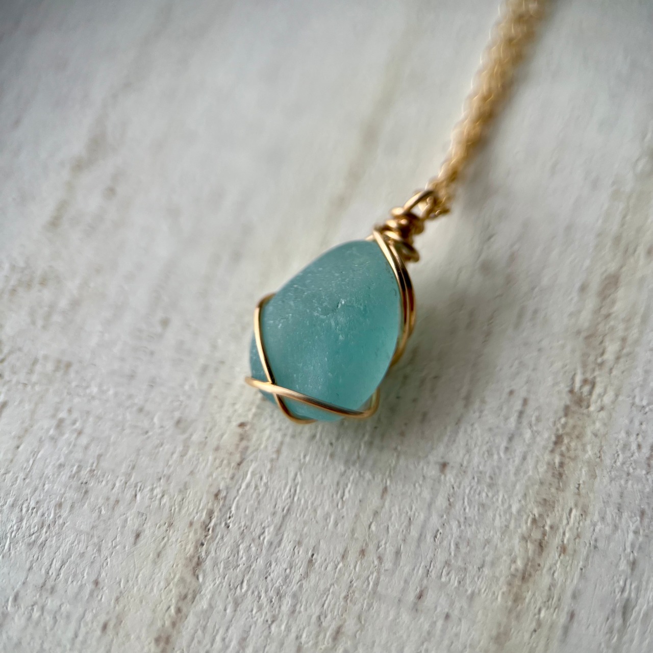 長い年月海岸で削られ角が取れ、丸みを帯び、1cmに満たないくらい小さくなったブルーシーグラス。この大きさになるまでに晴れの日も、雨の日も嵐の日もあったと思う。