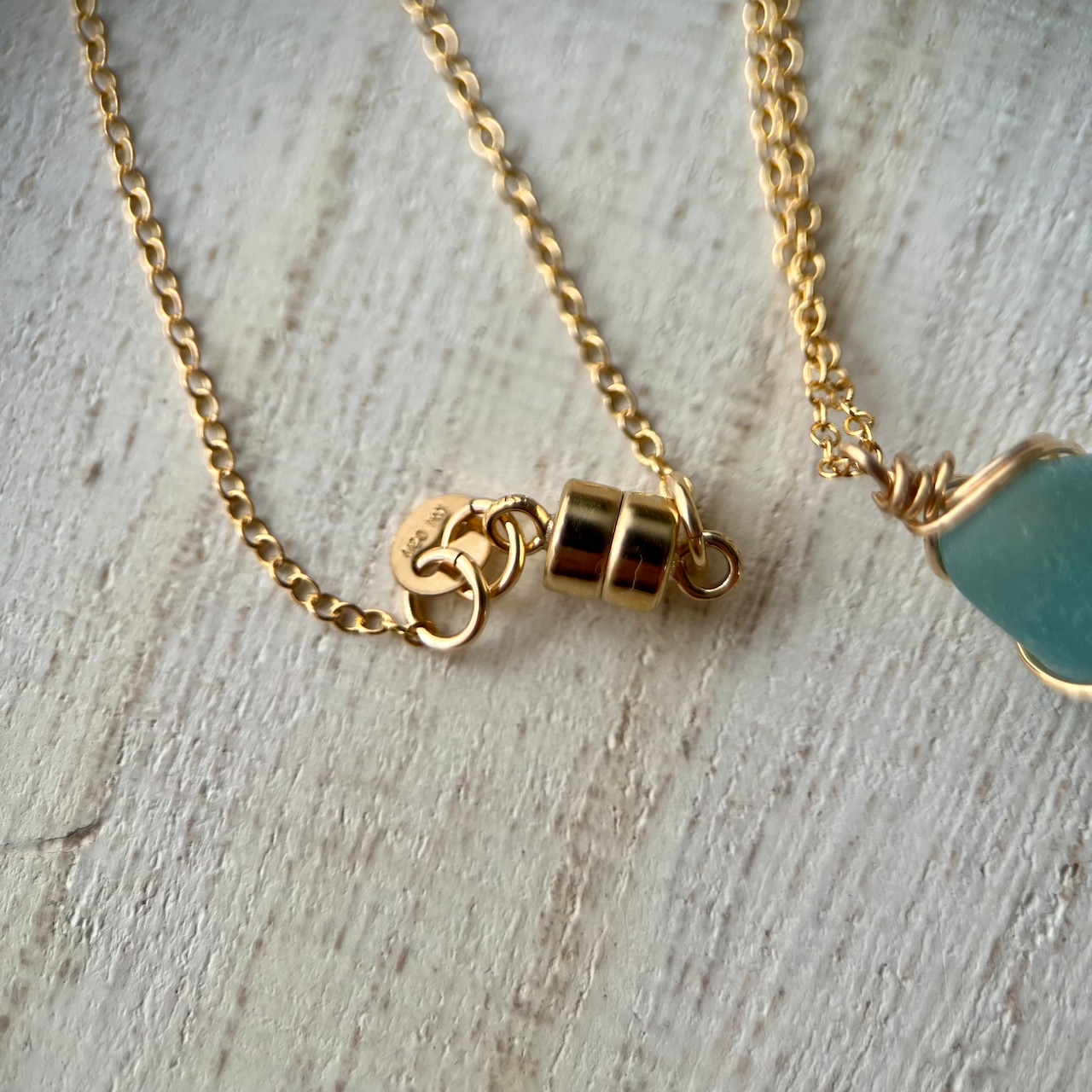 《14kgf》魅力を引き出す小さなブルーシーグラスのネックレス 48cm