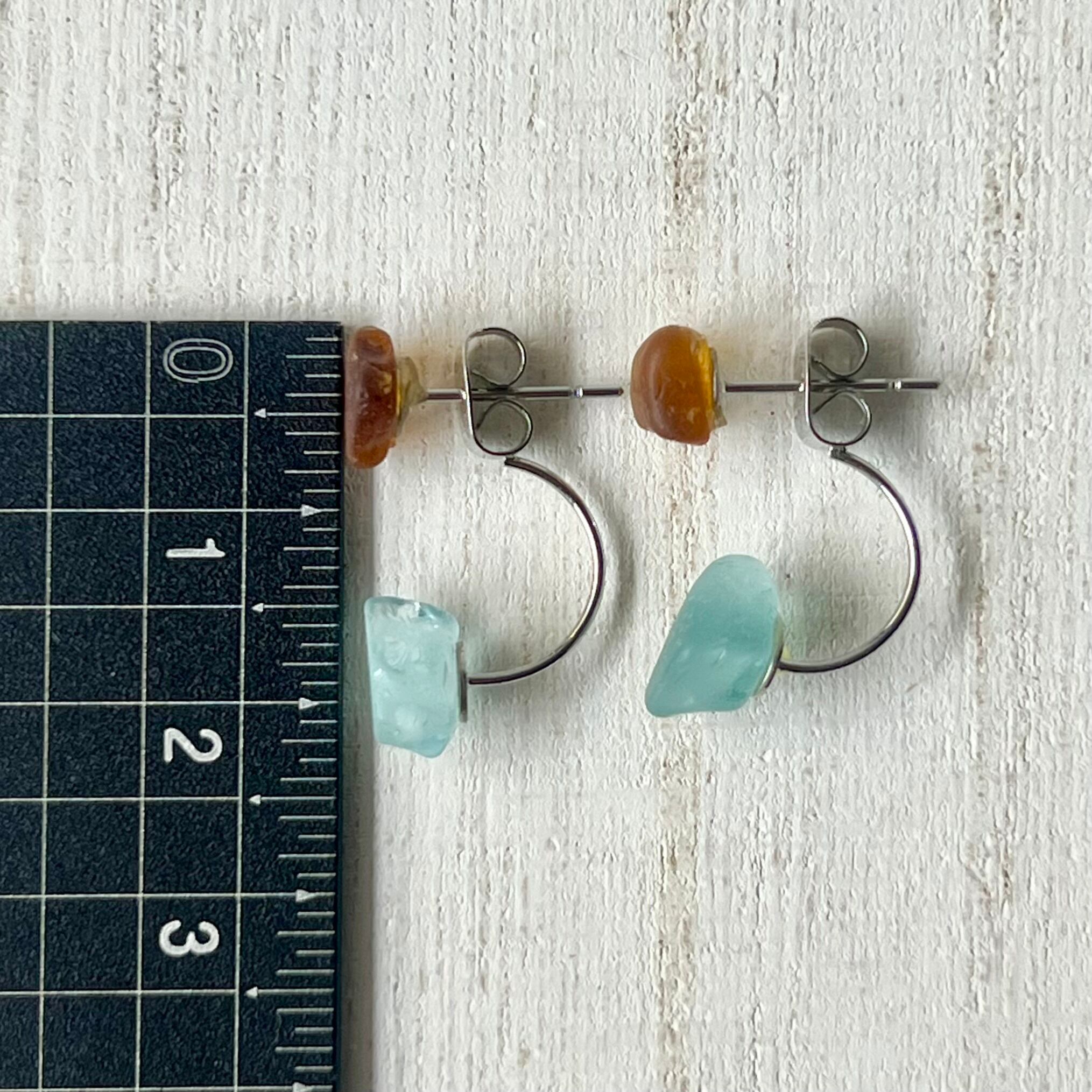 揺れないシーグラスバックキャッチのピアス~大人ブラウン×空色~
