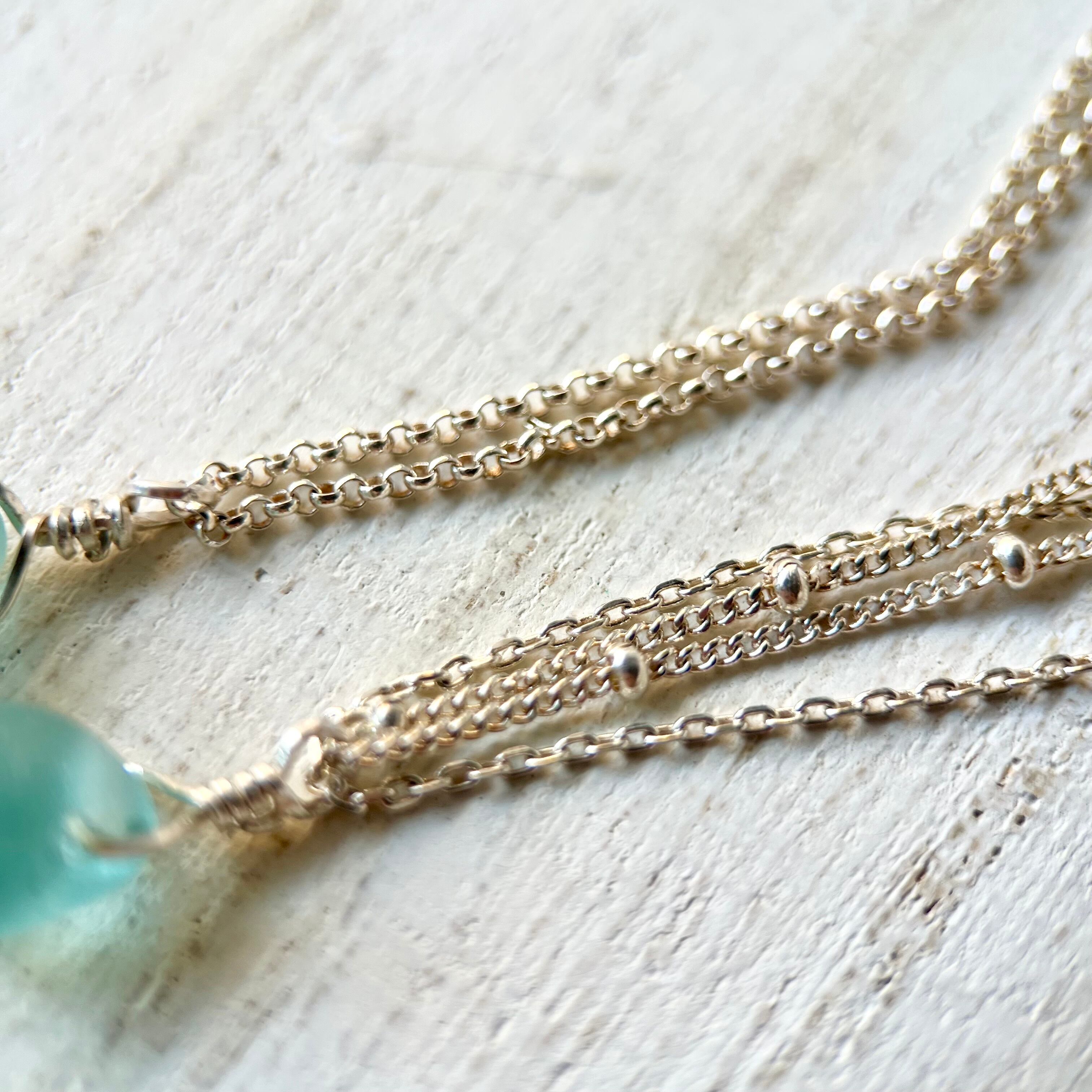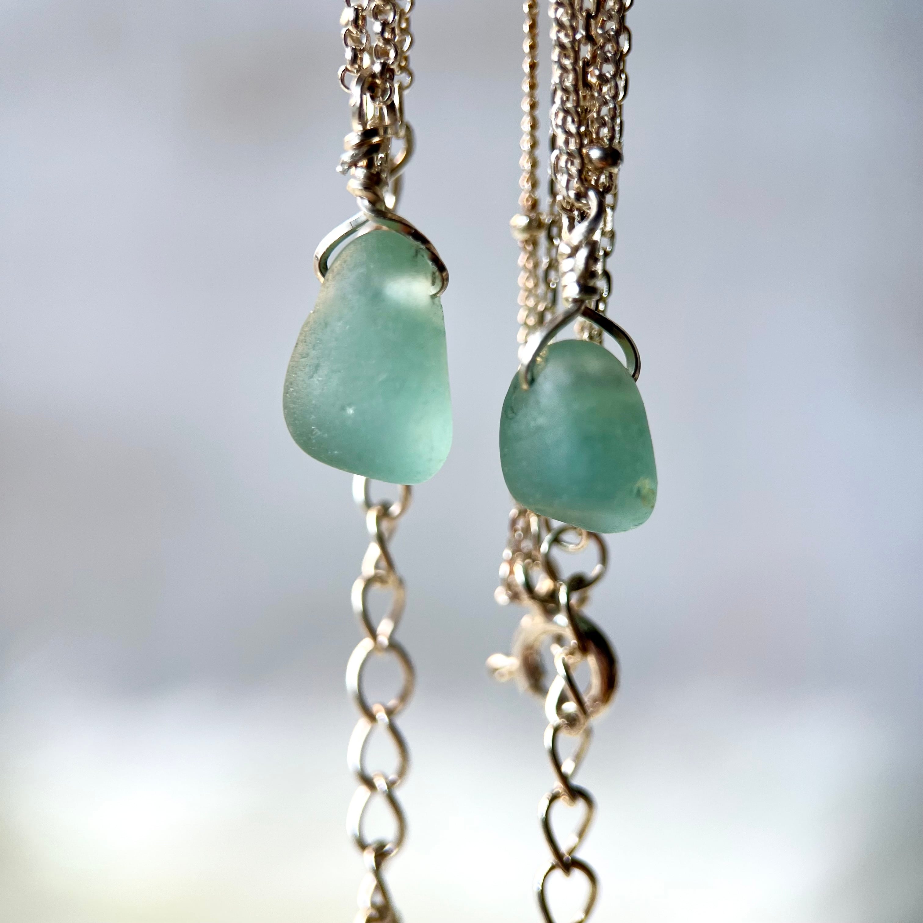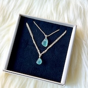 大切な人へ贈り物 ご褒美ジュエリーBOX《Silver925》海色シーグラスビーズのブレスレット・アンクルセット