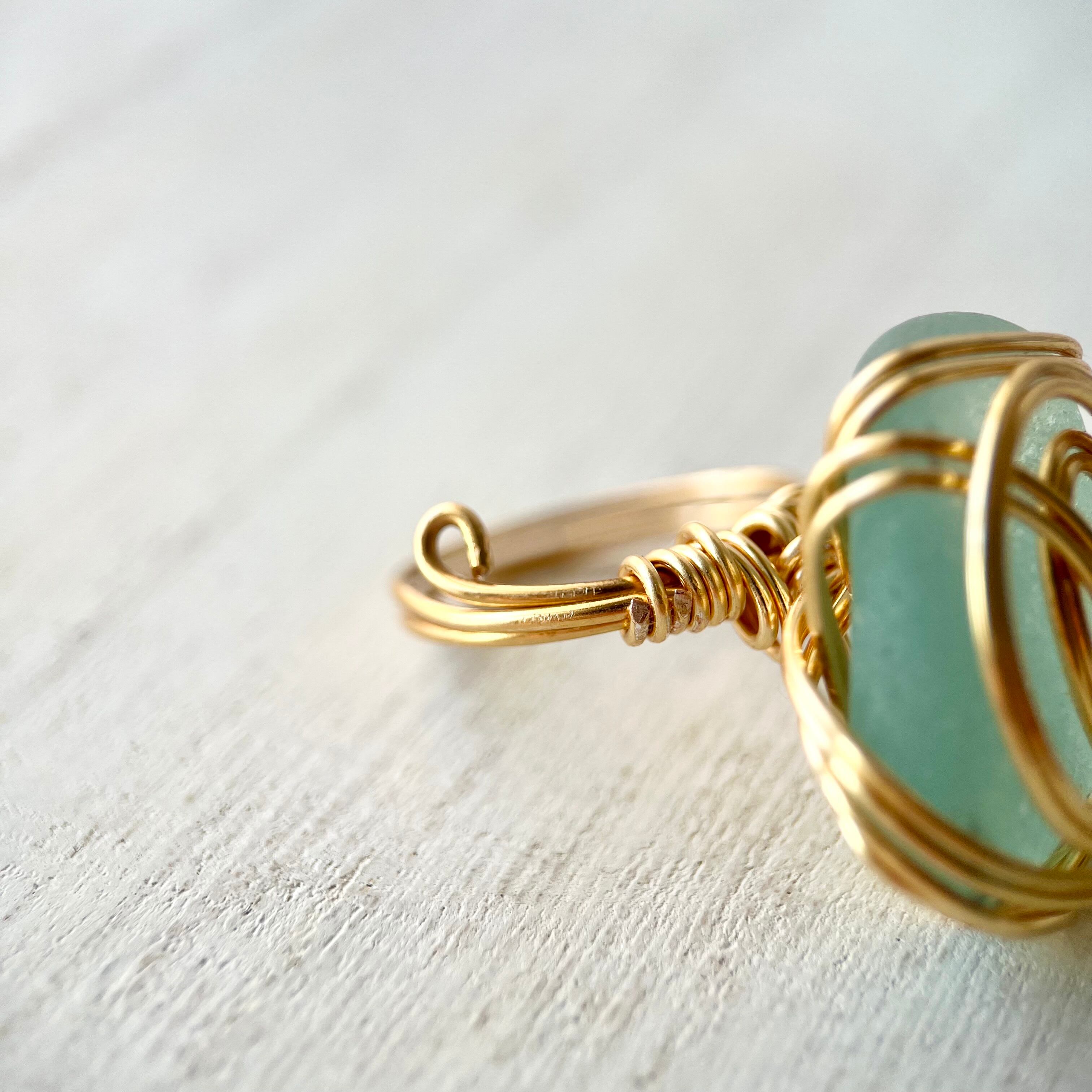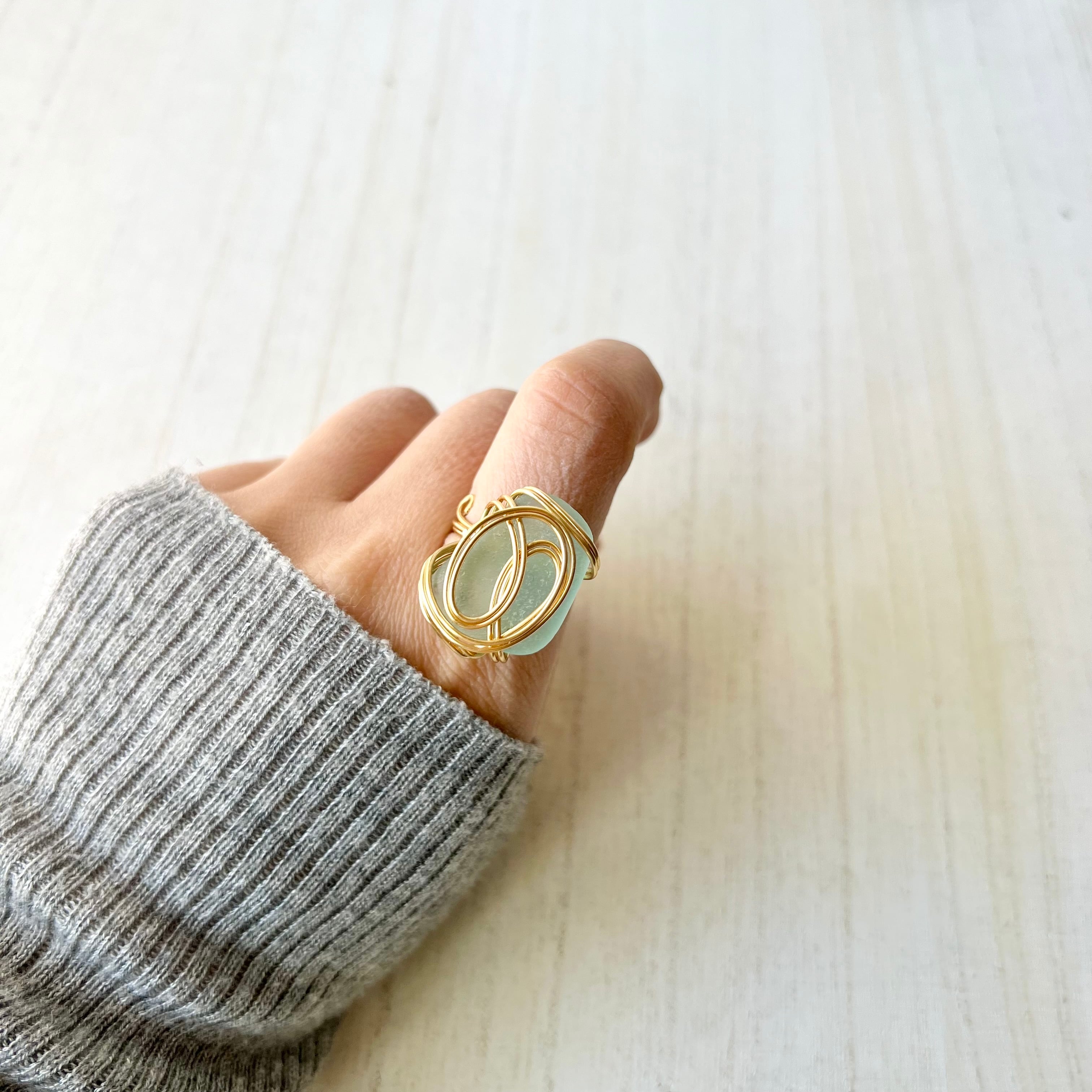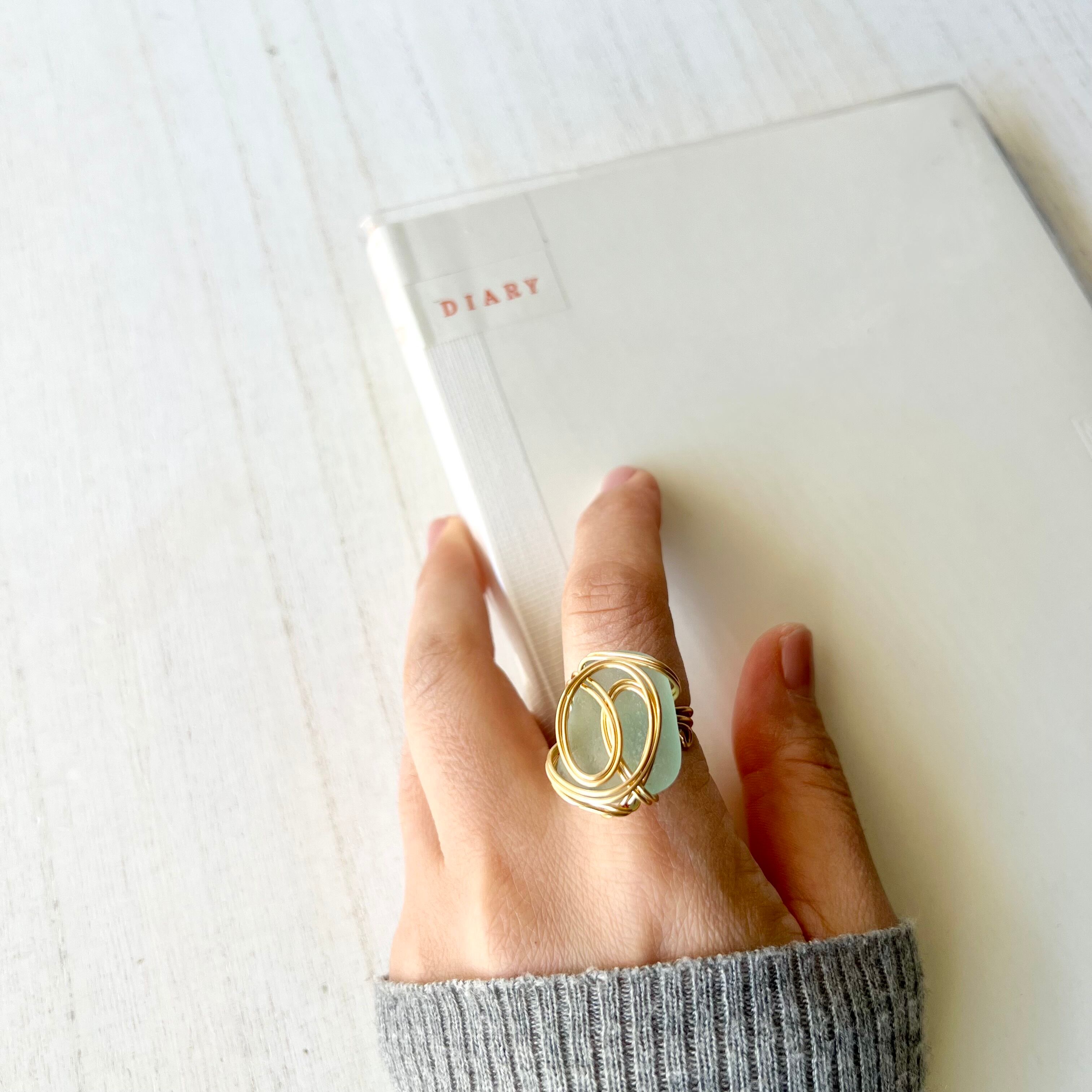 肩落とすんじゃなくゴツ目なこの大きなシーグラスリングで気分上げてください。