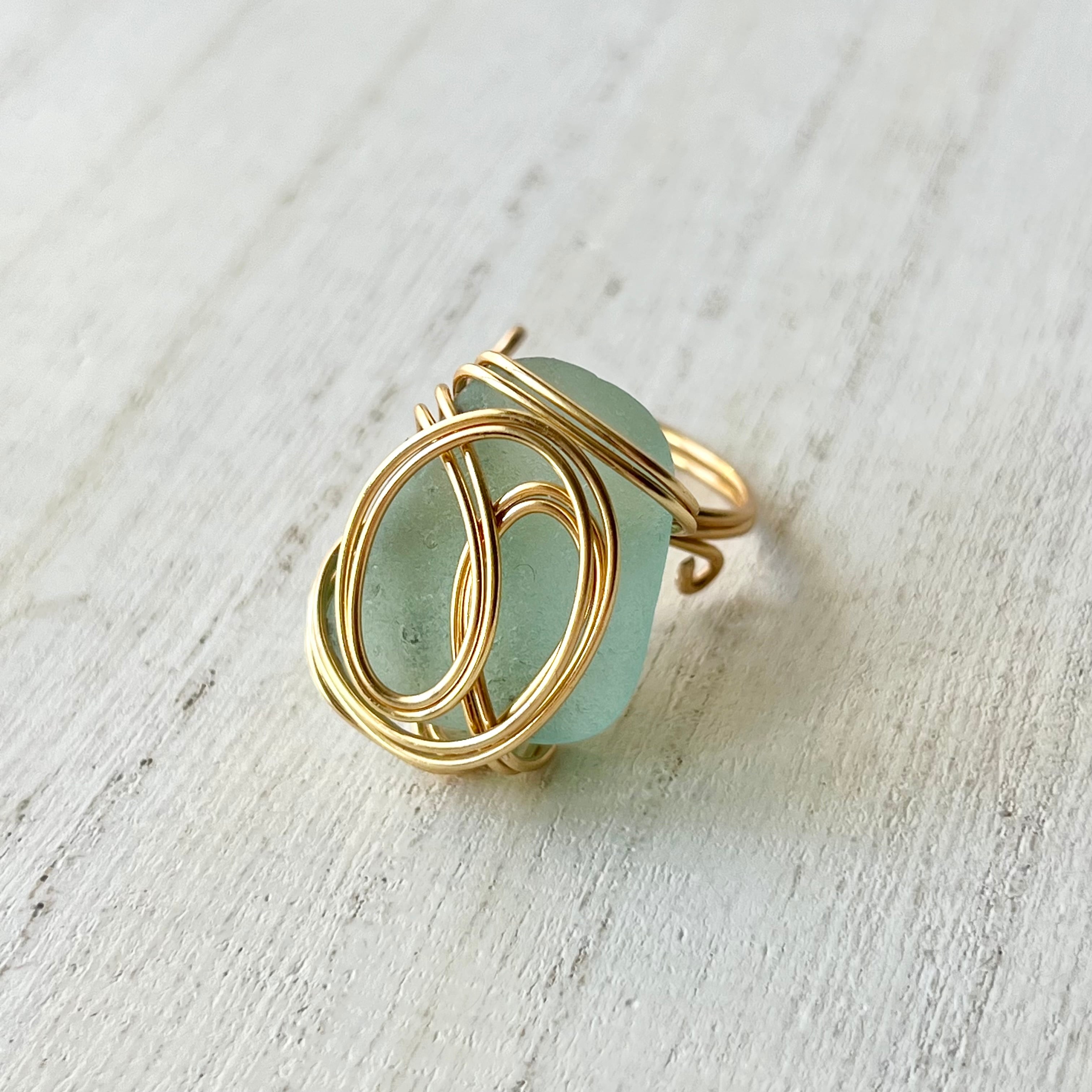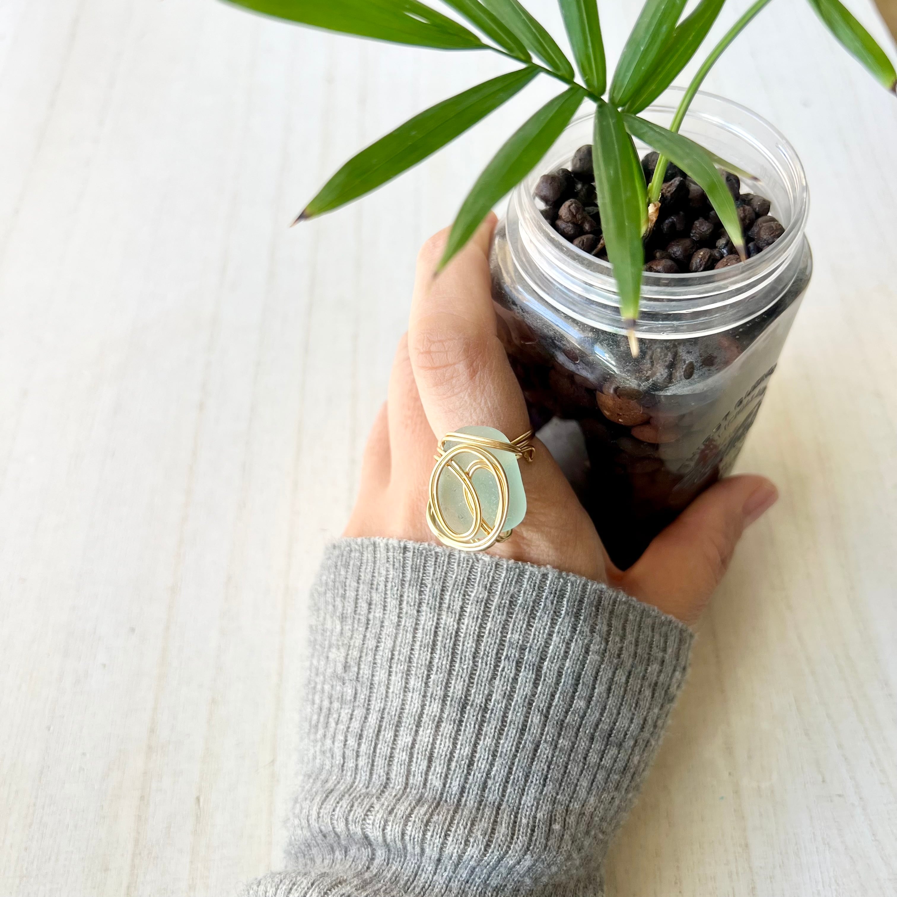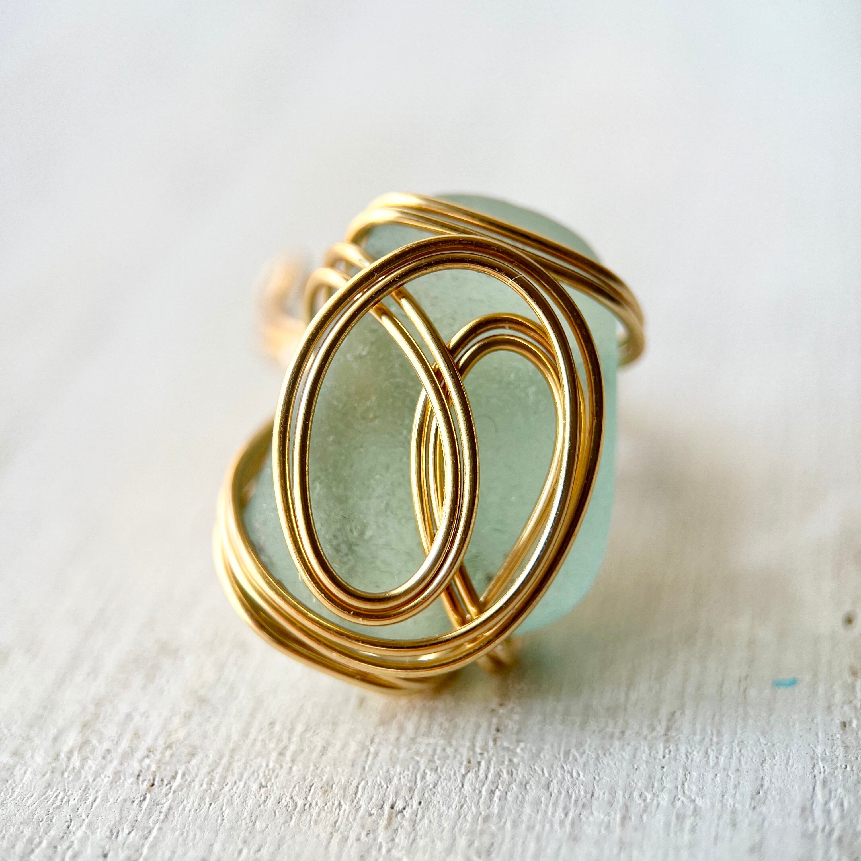 肩落とすんじゃなくゴツ目なこの大きなシーグラスリングで気分上げてください。