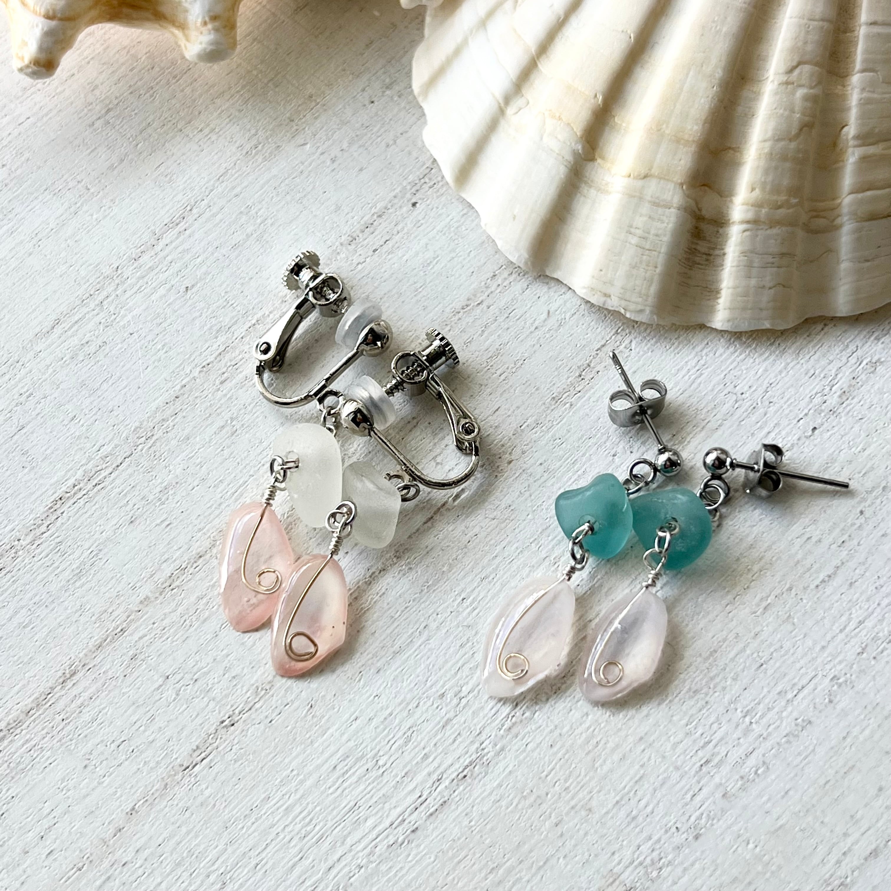 桜貝×シーグラスビーズ