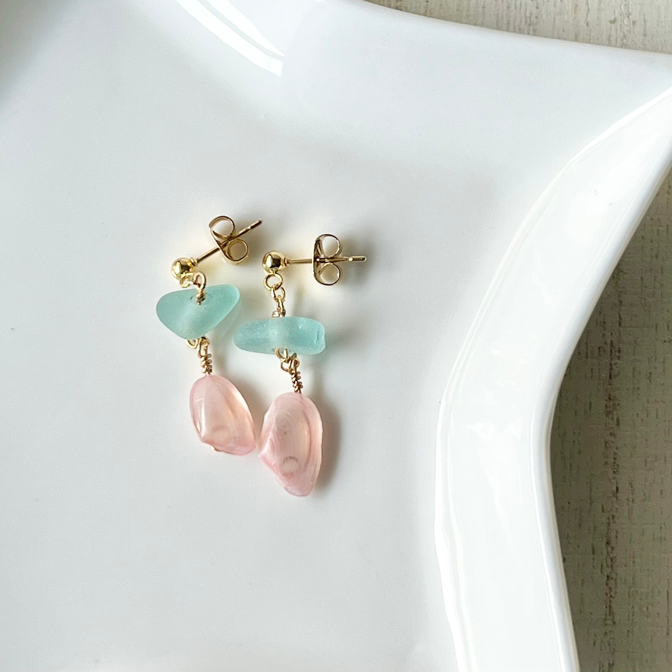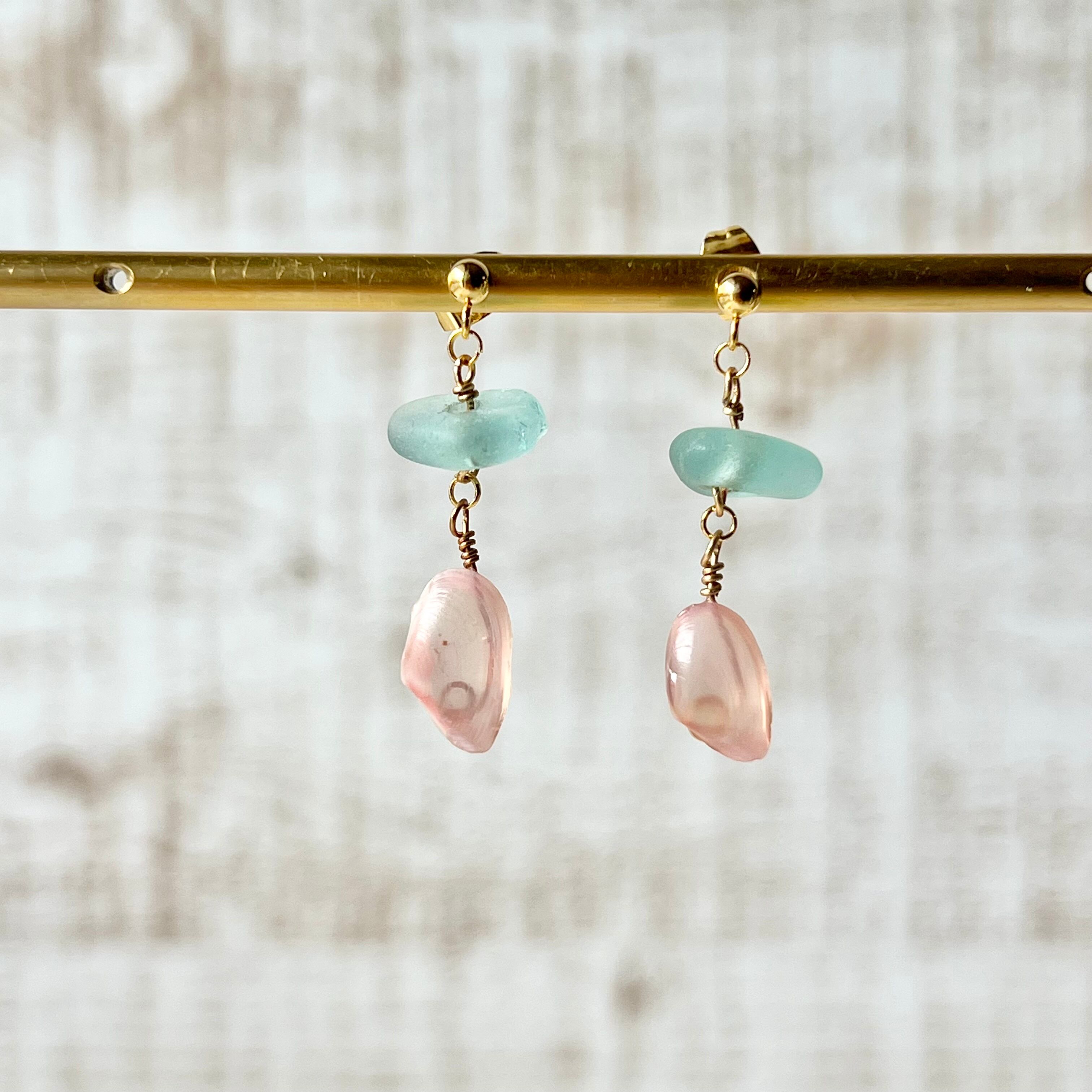 桜貝×シーグラスビーズ