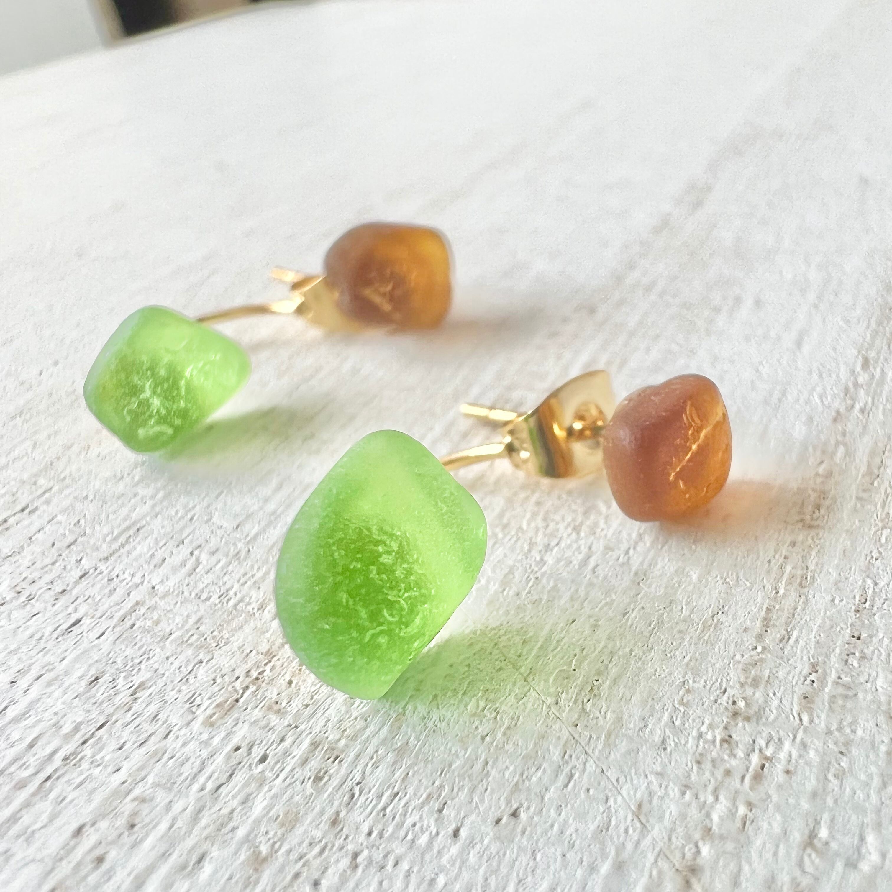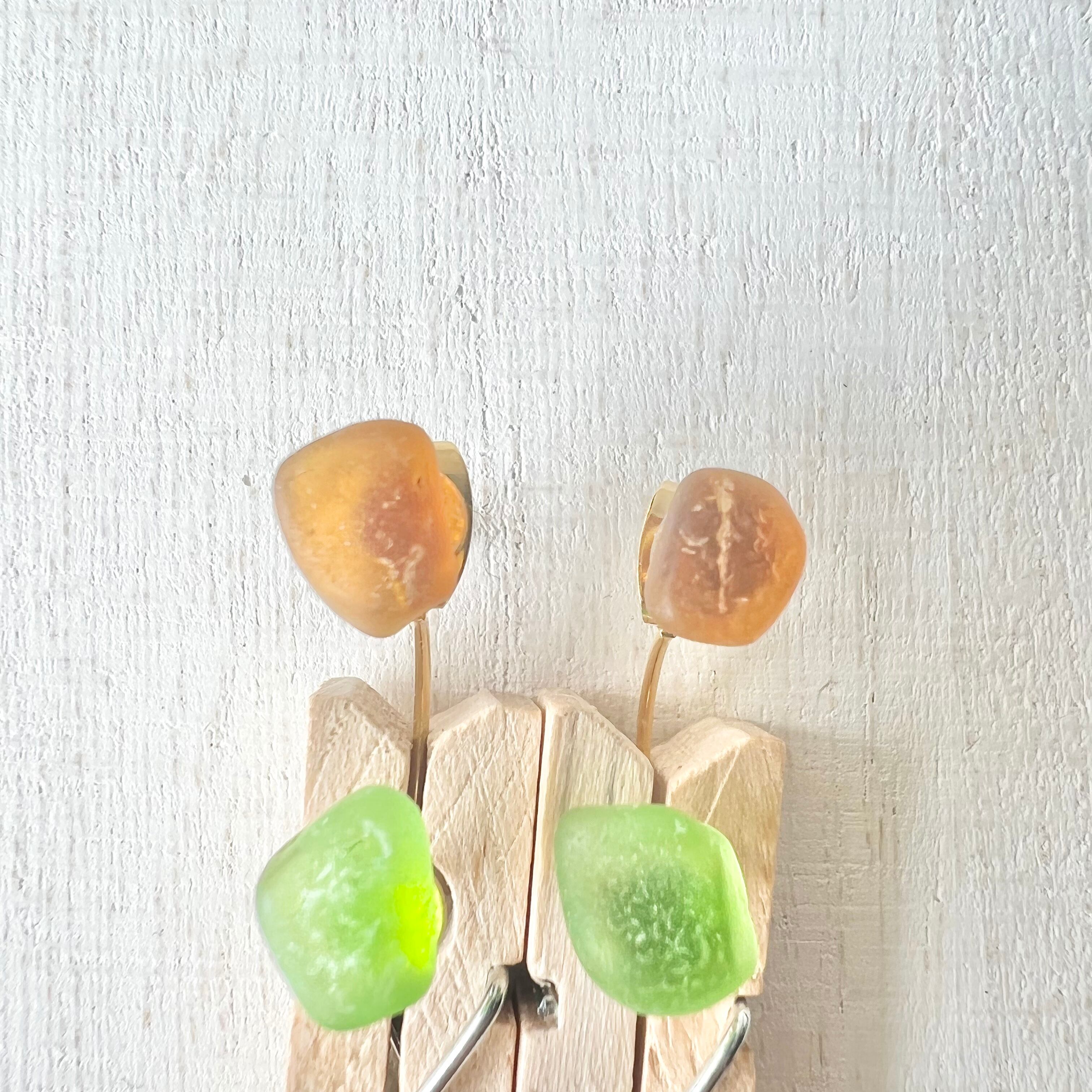 揺れないシーグラスキャッチのピアス~大人ブラウン×グリーン~
