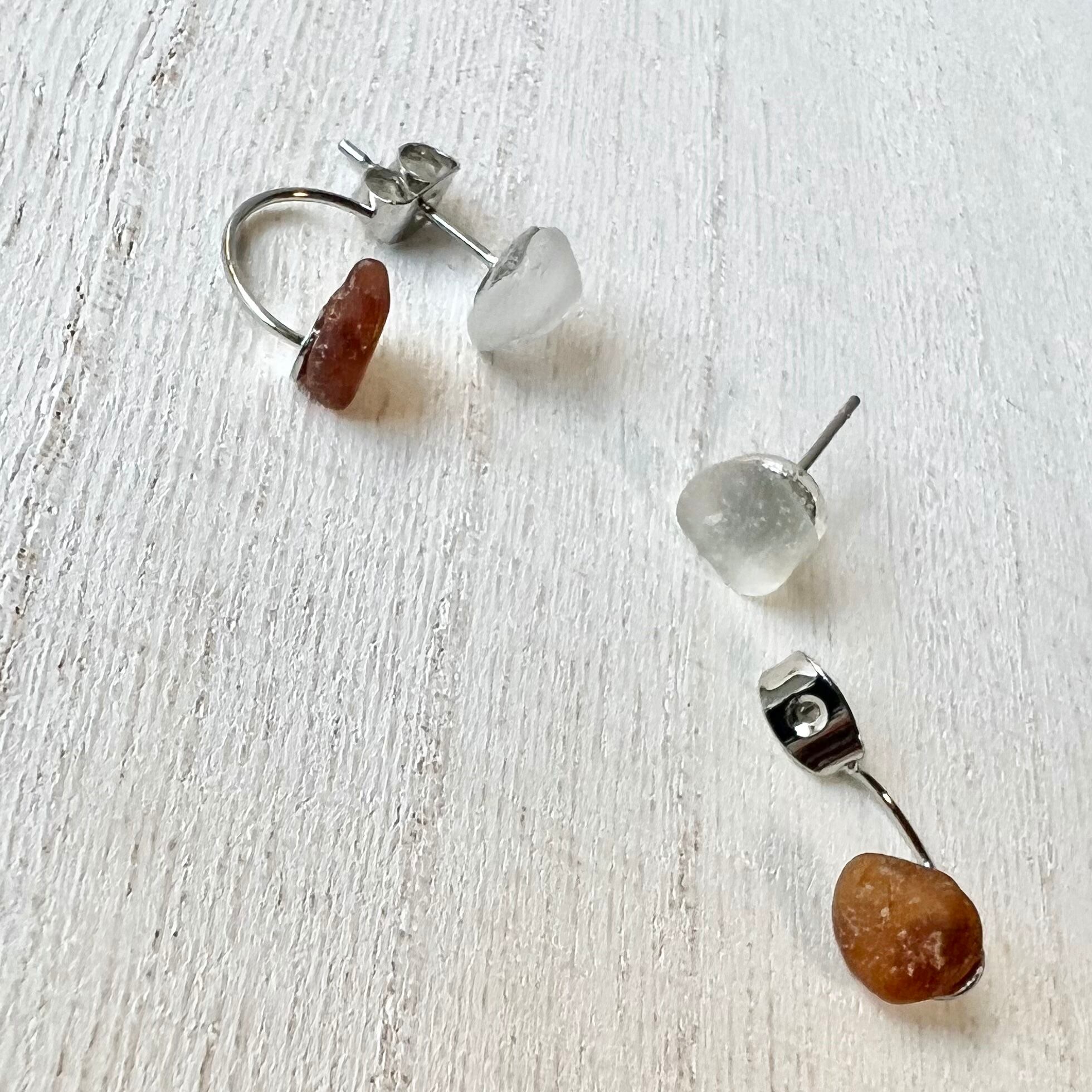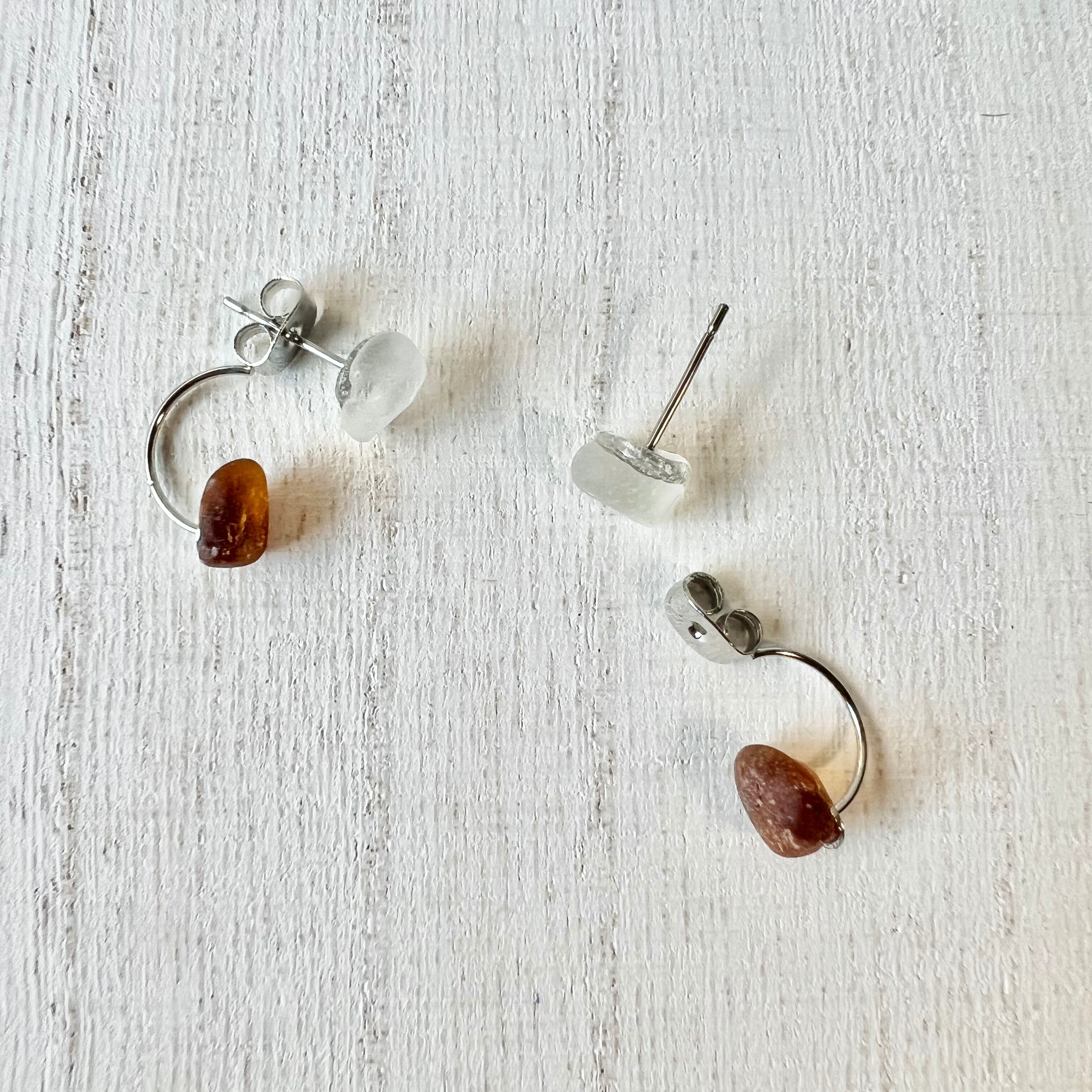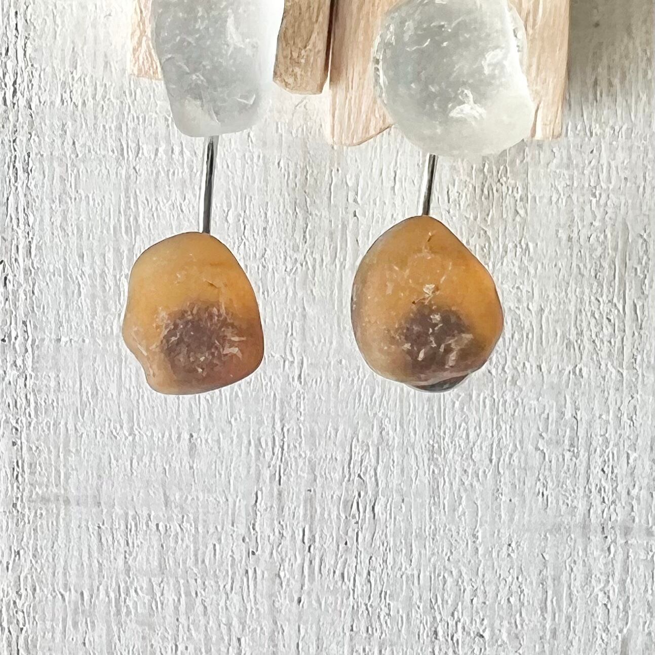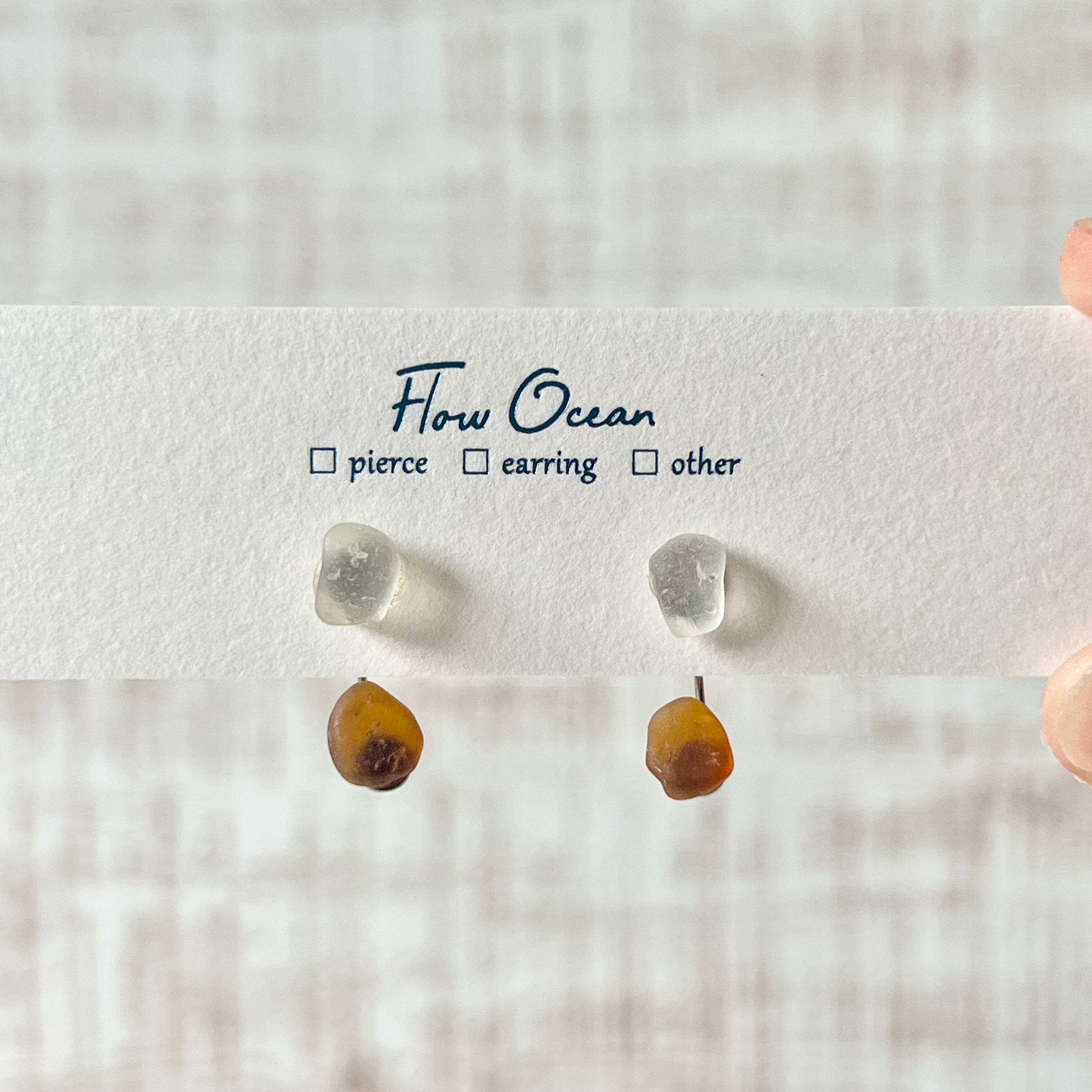 揺れないバックキャッチのシーグラスピアス~波と大人ブラウン~