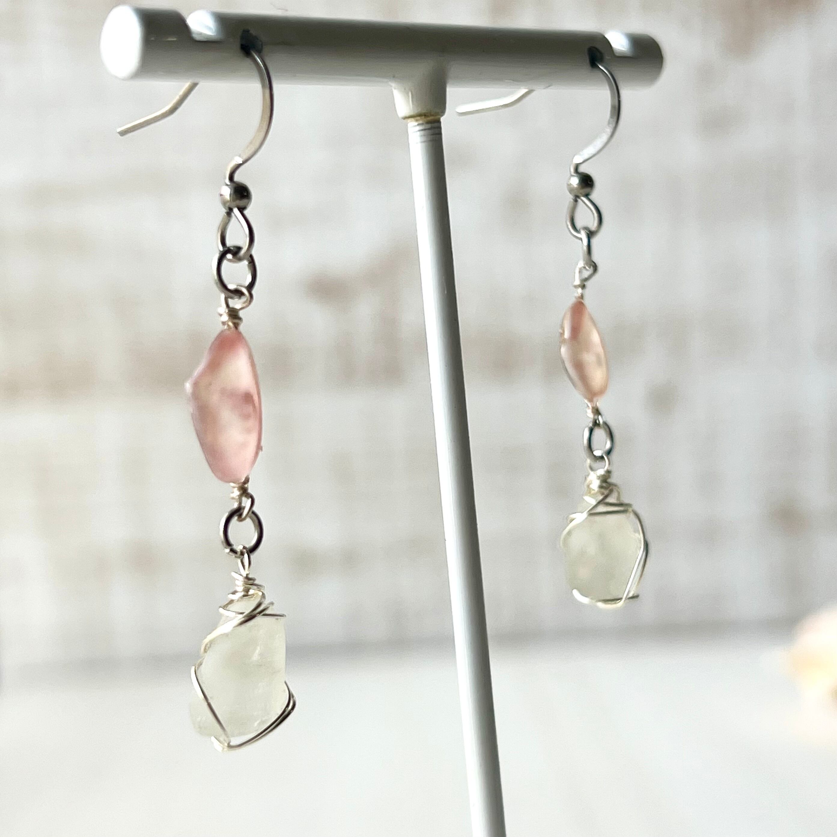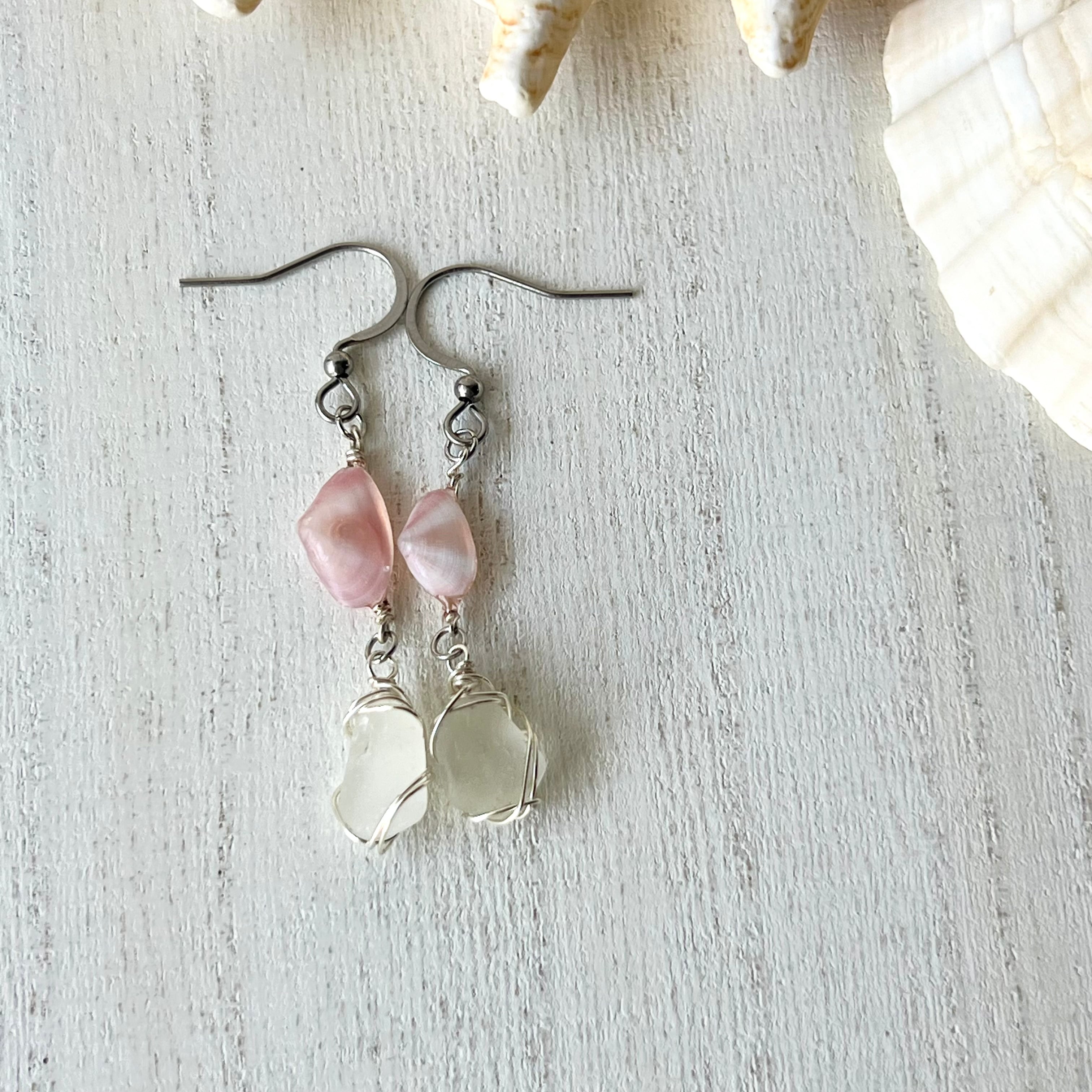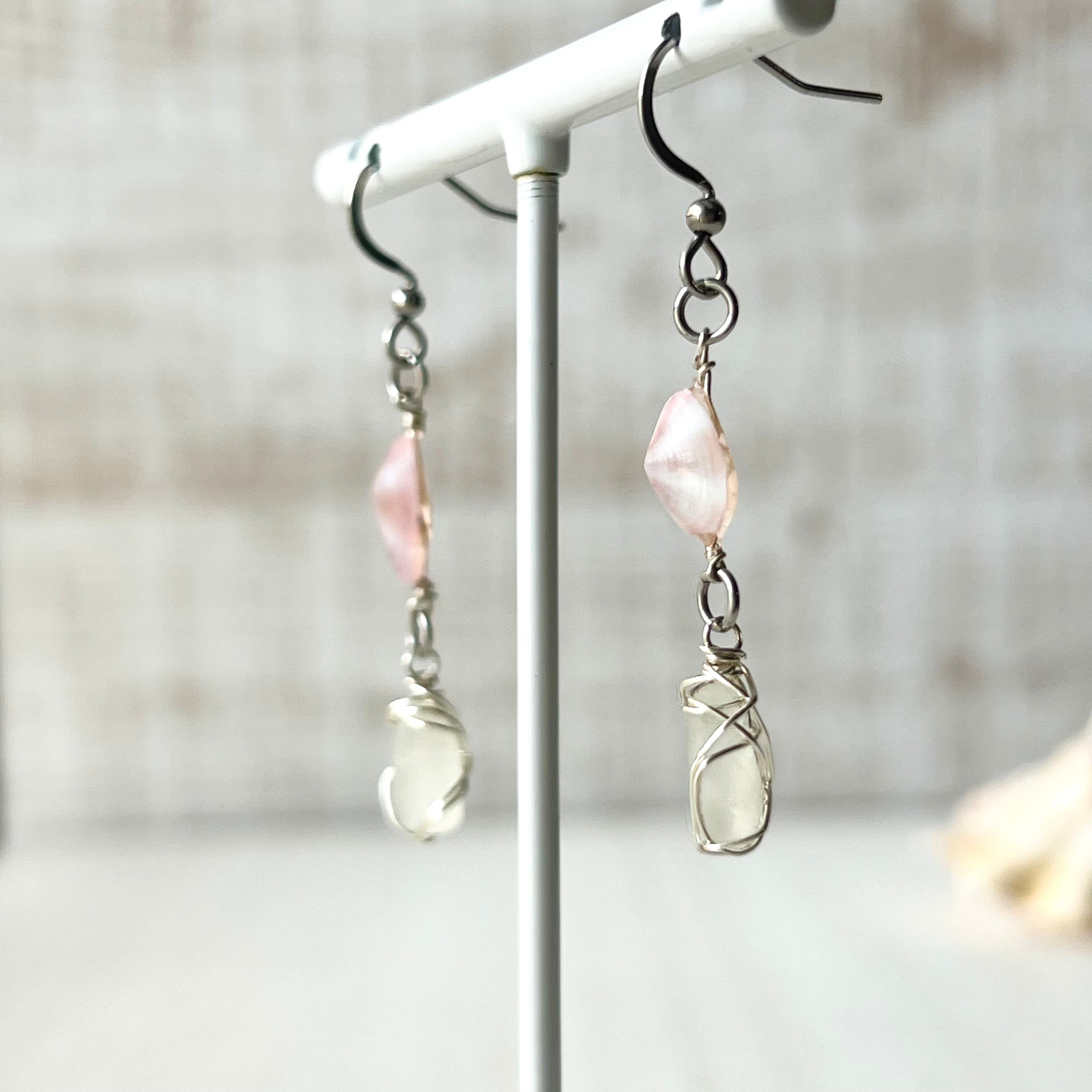純新無垢な桜貝とホワイトシーグラスのアクセサリー