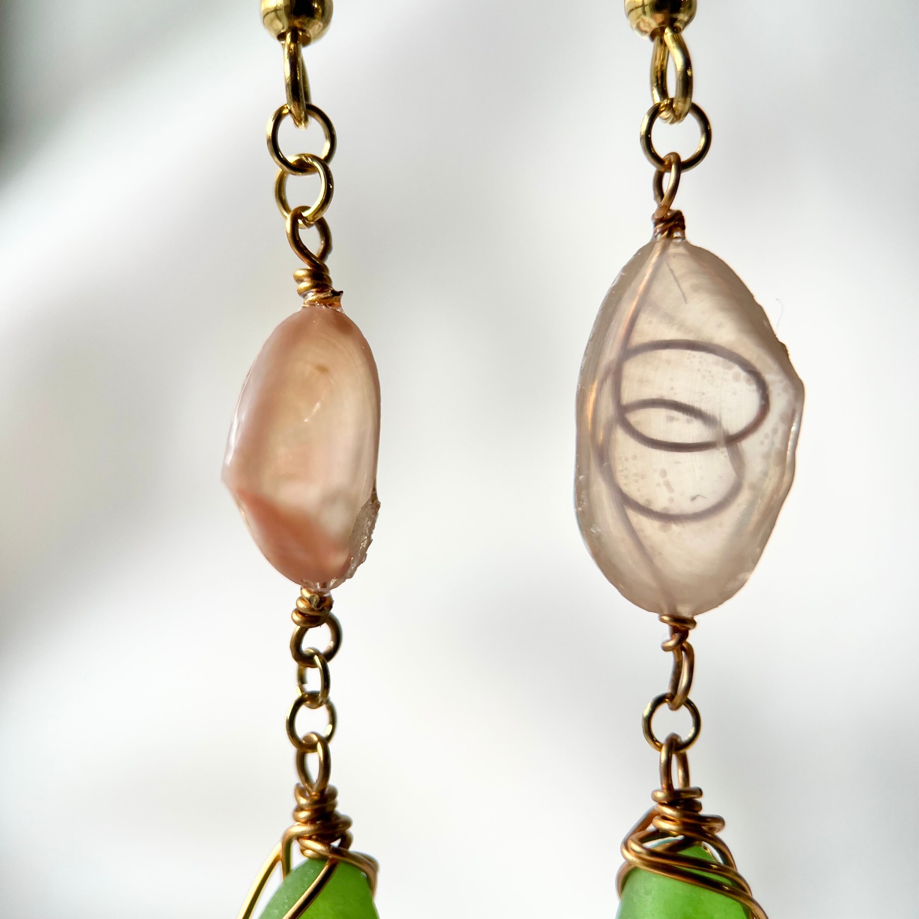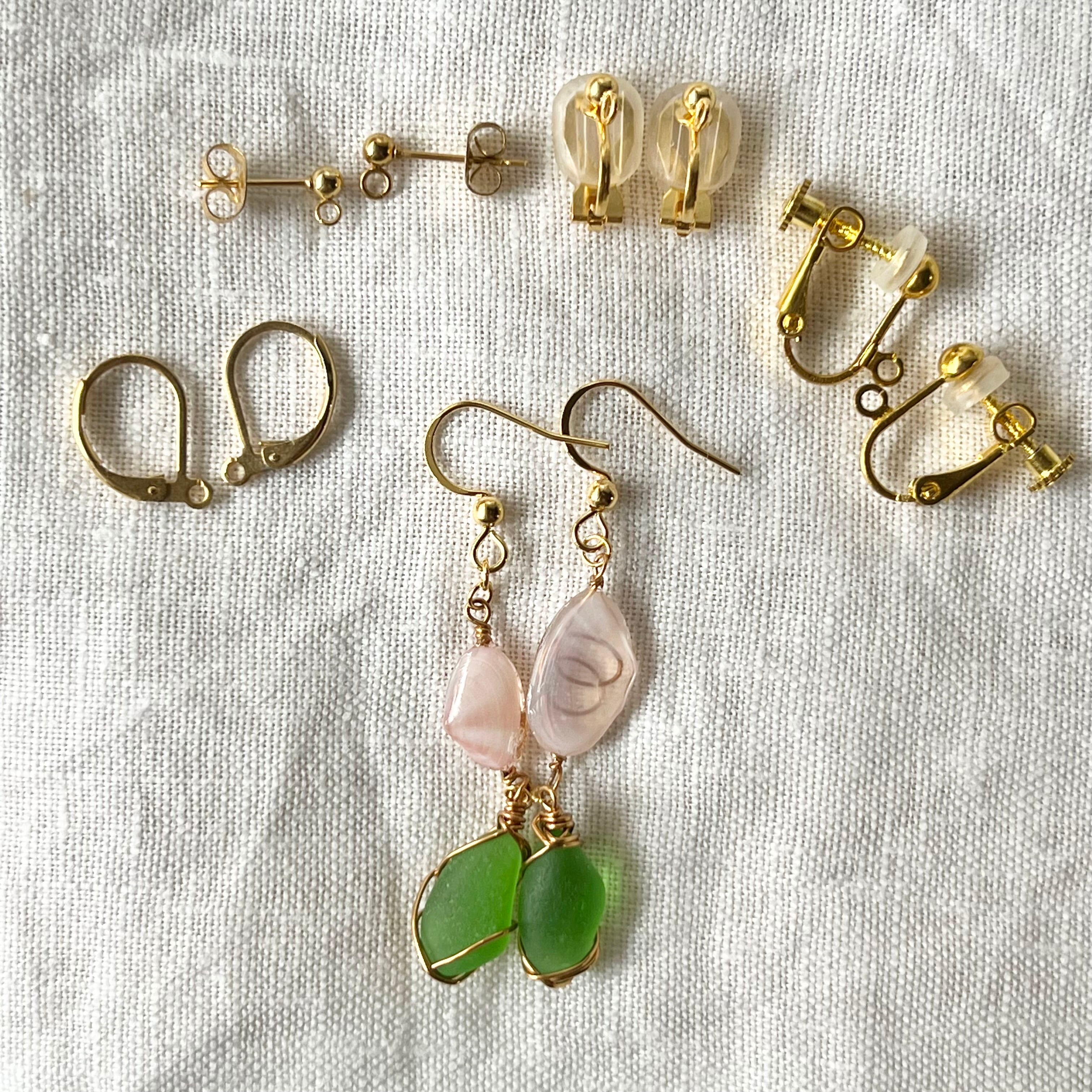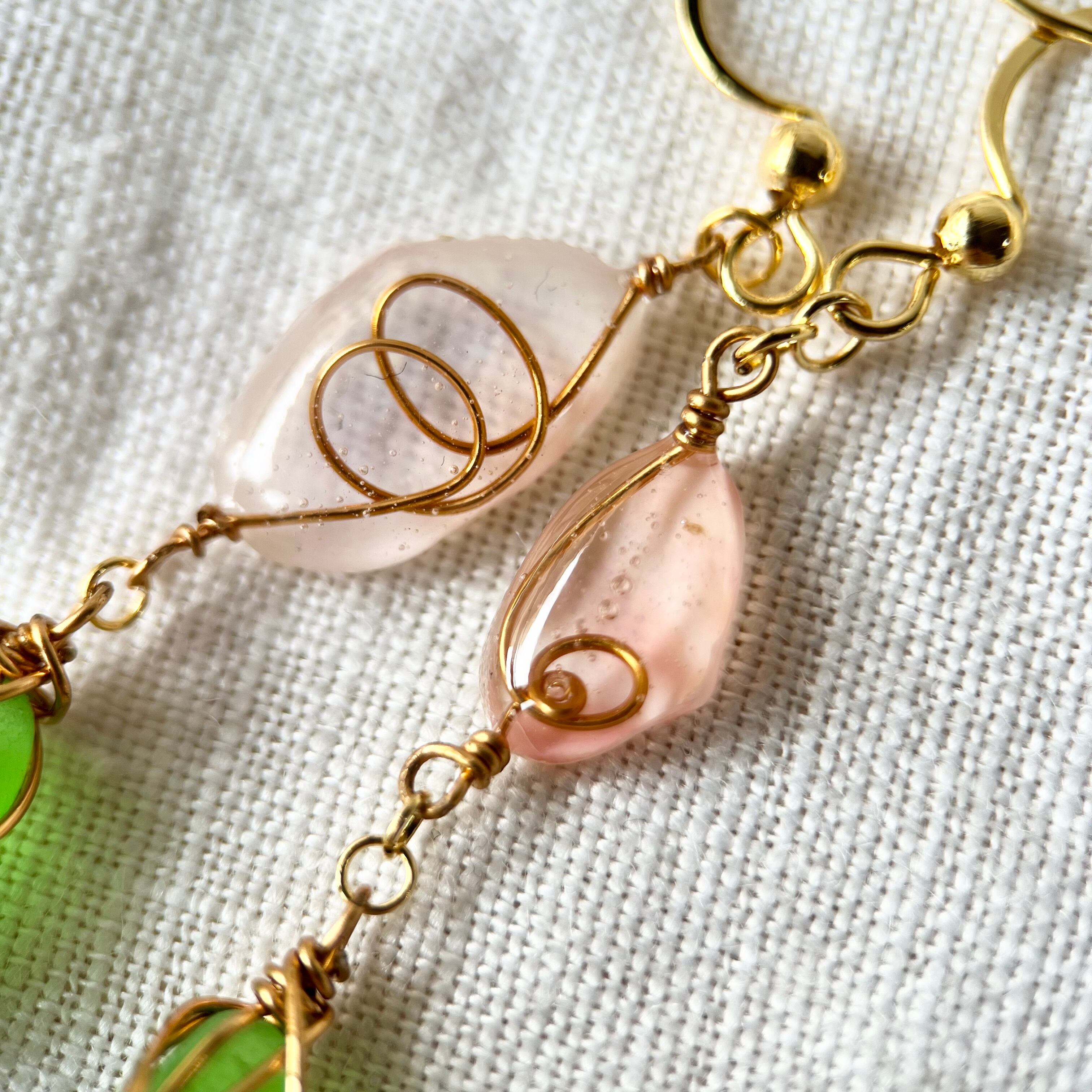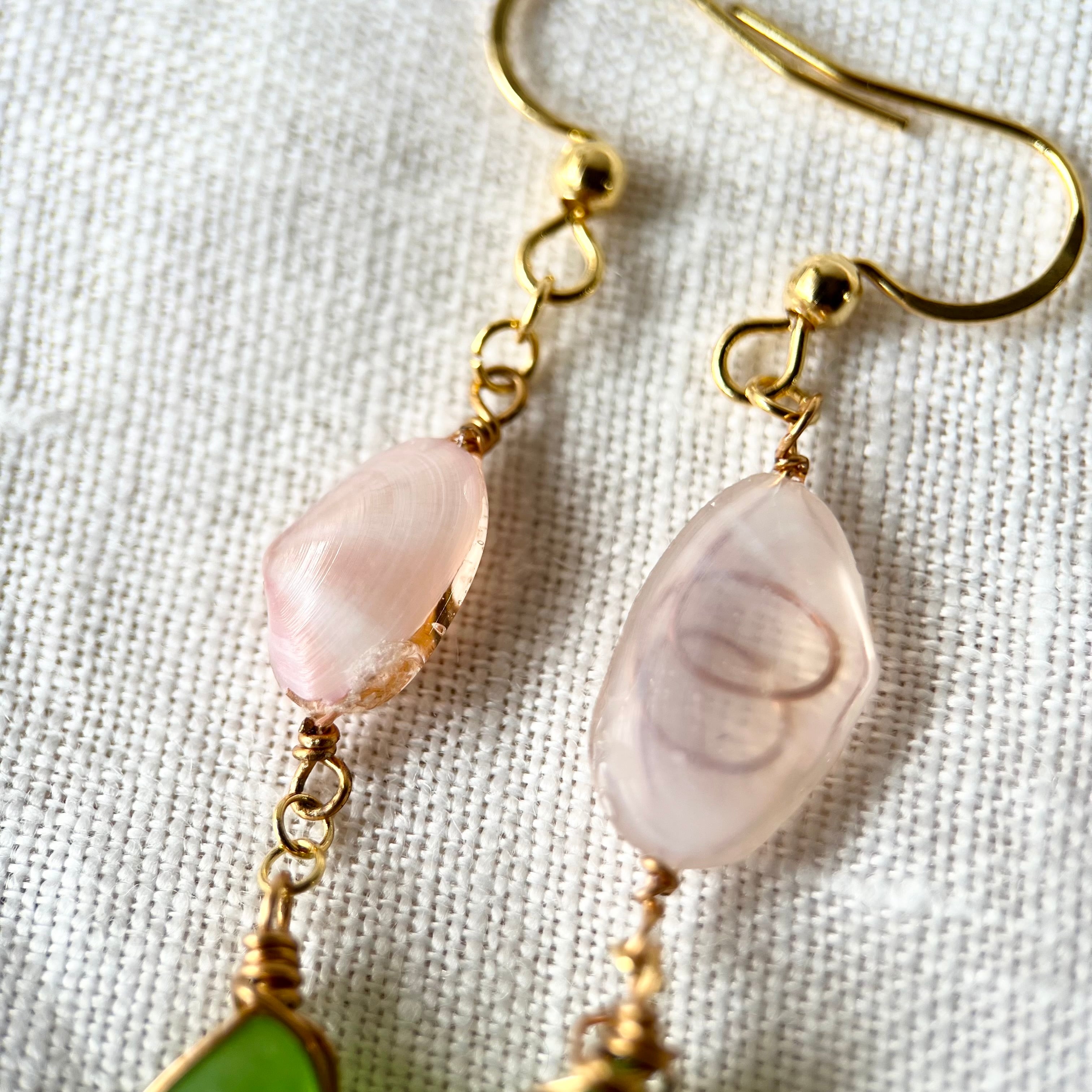 モチベーションアップする桜貝とグリーンシーグラスイヤリング