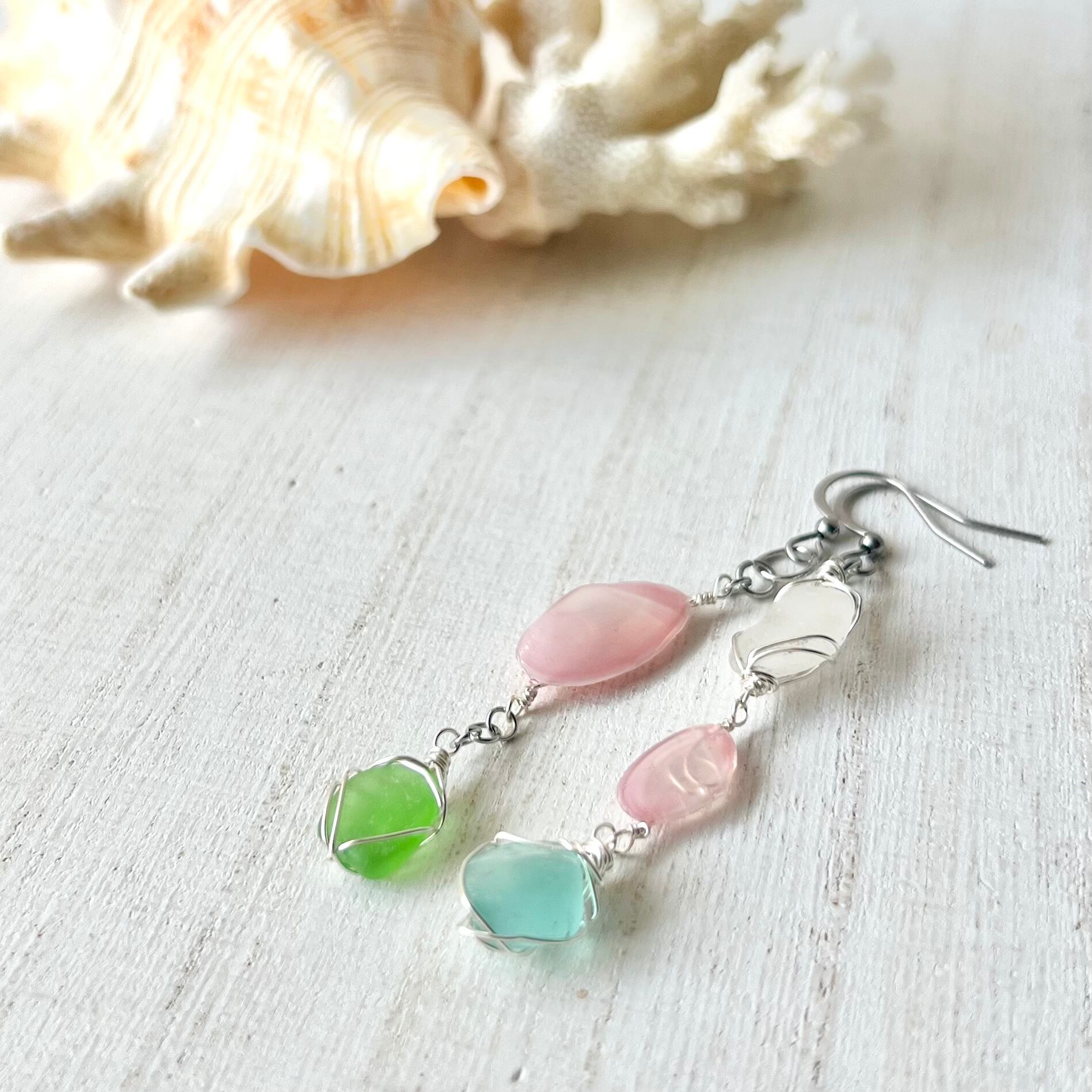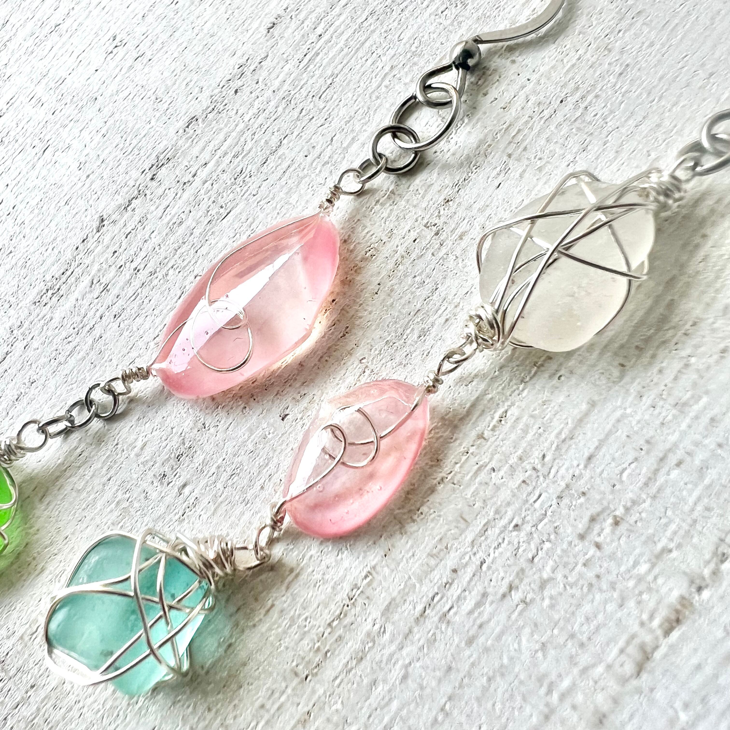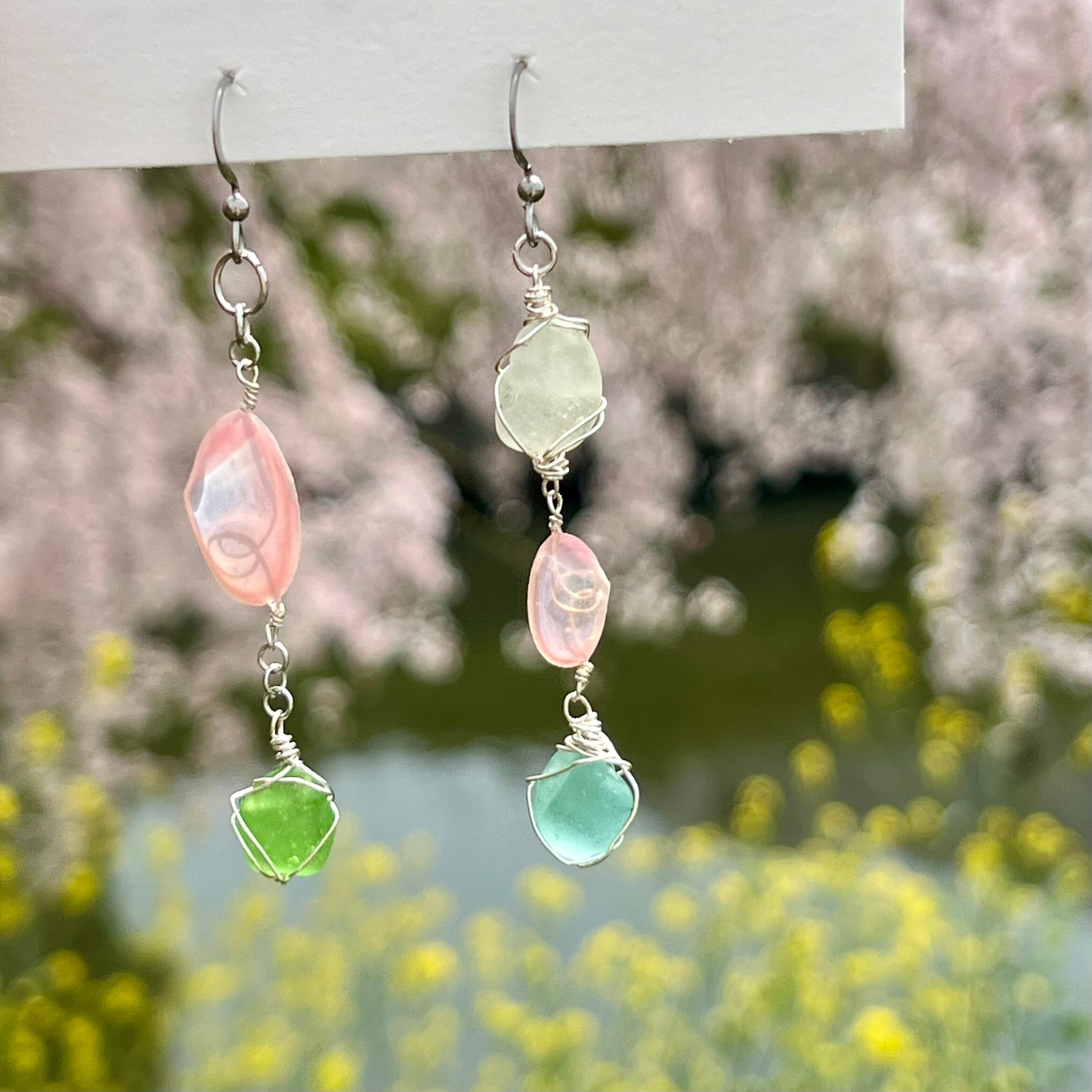 春を楽しむ桜貝のマルチカラーシーグラスのアクセサリー