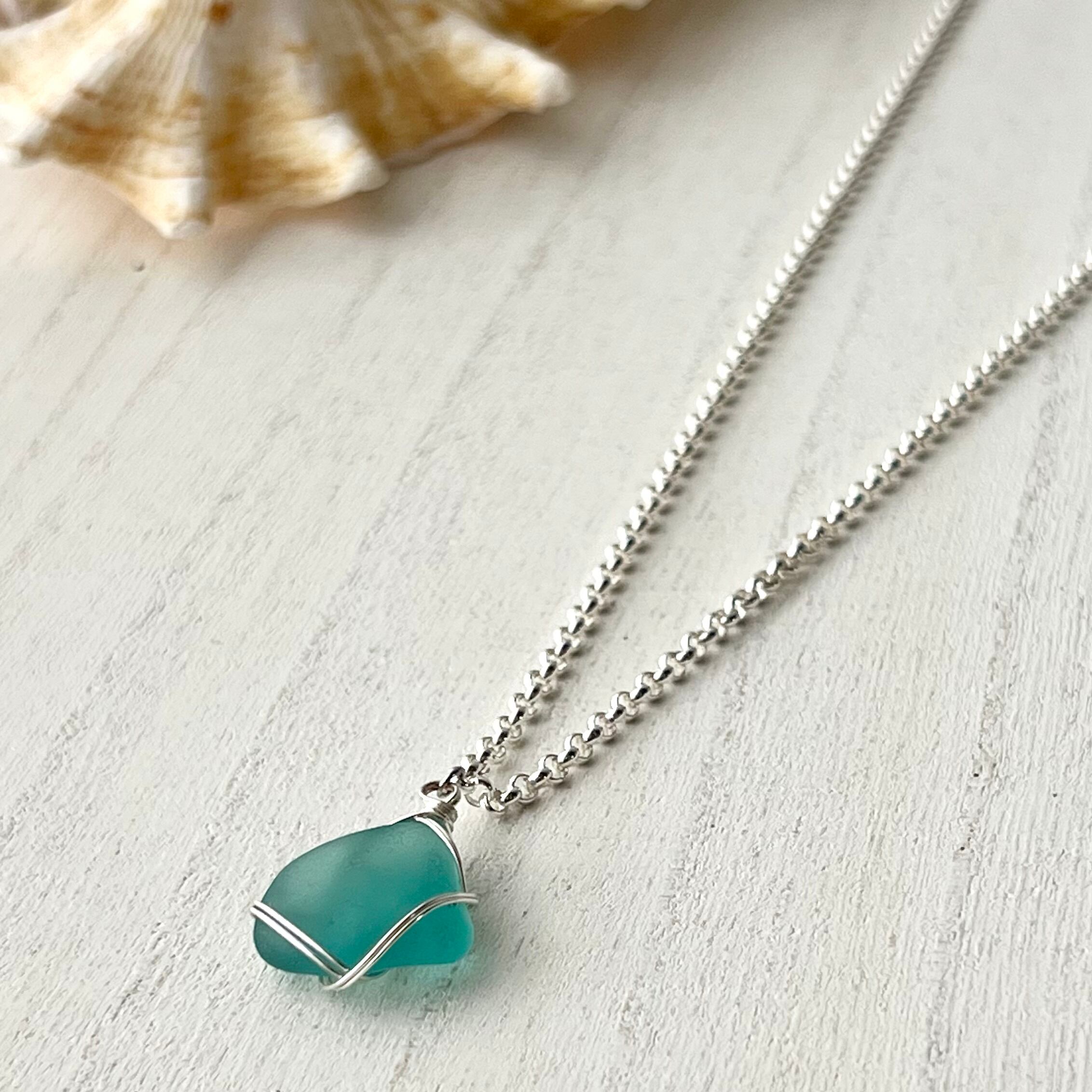 《Silver925》海の一欠片 海色シーグラスのネックレス 50cm