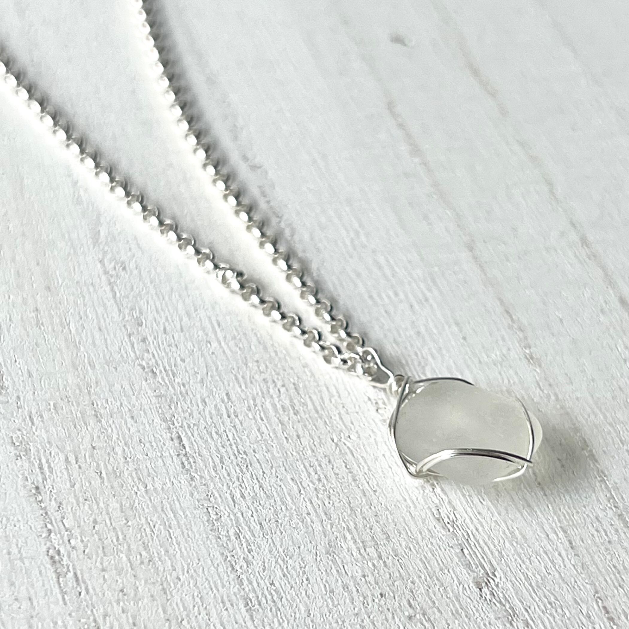 ホワイトシーグラスのネックレス。