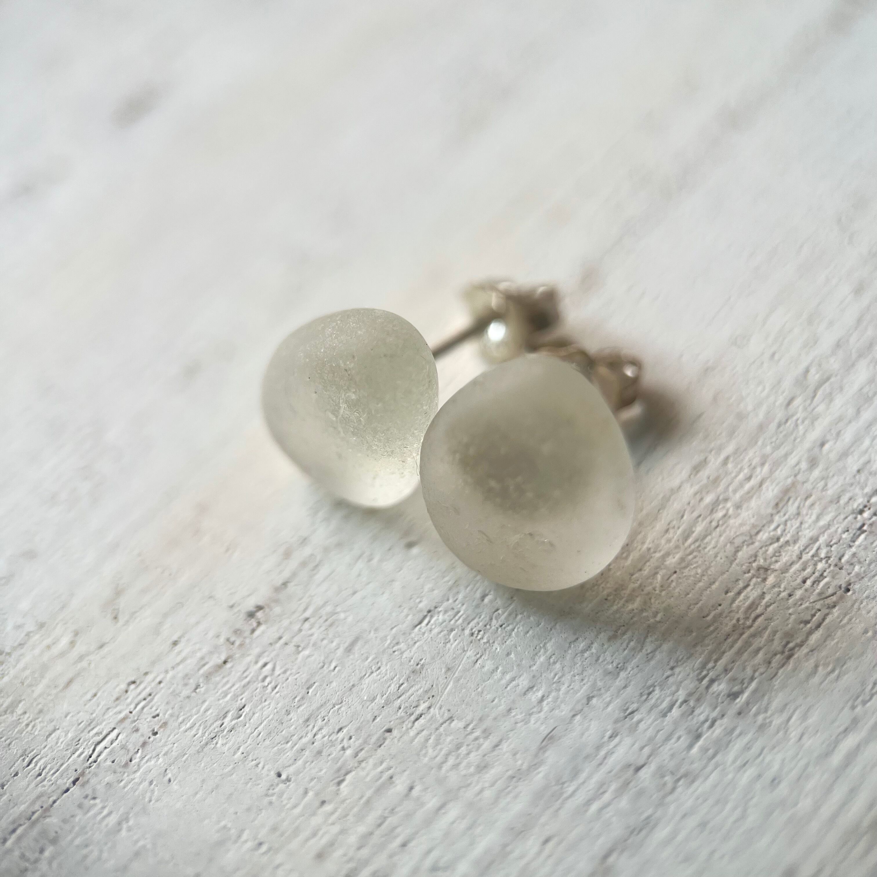 《Silver925》コロンとしたホワイトシーグラスのスタッズピアス