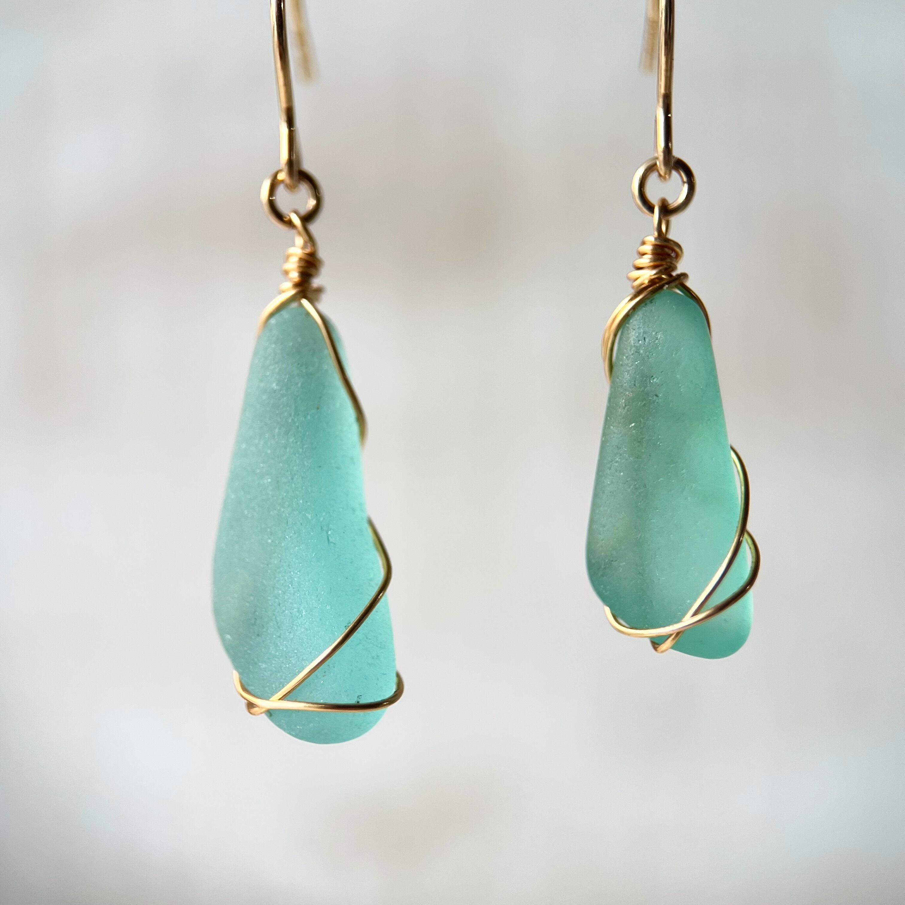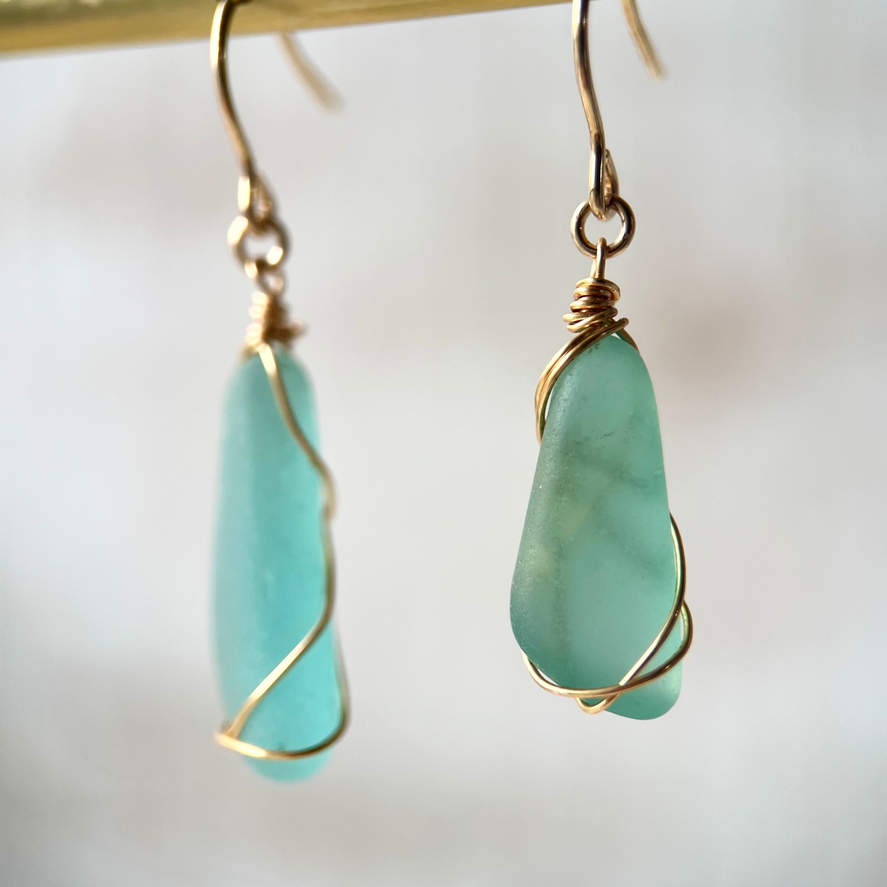 《14kgf》海色シーグラスのアシンメトリーピアス