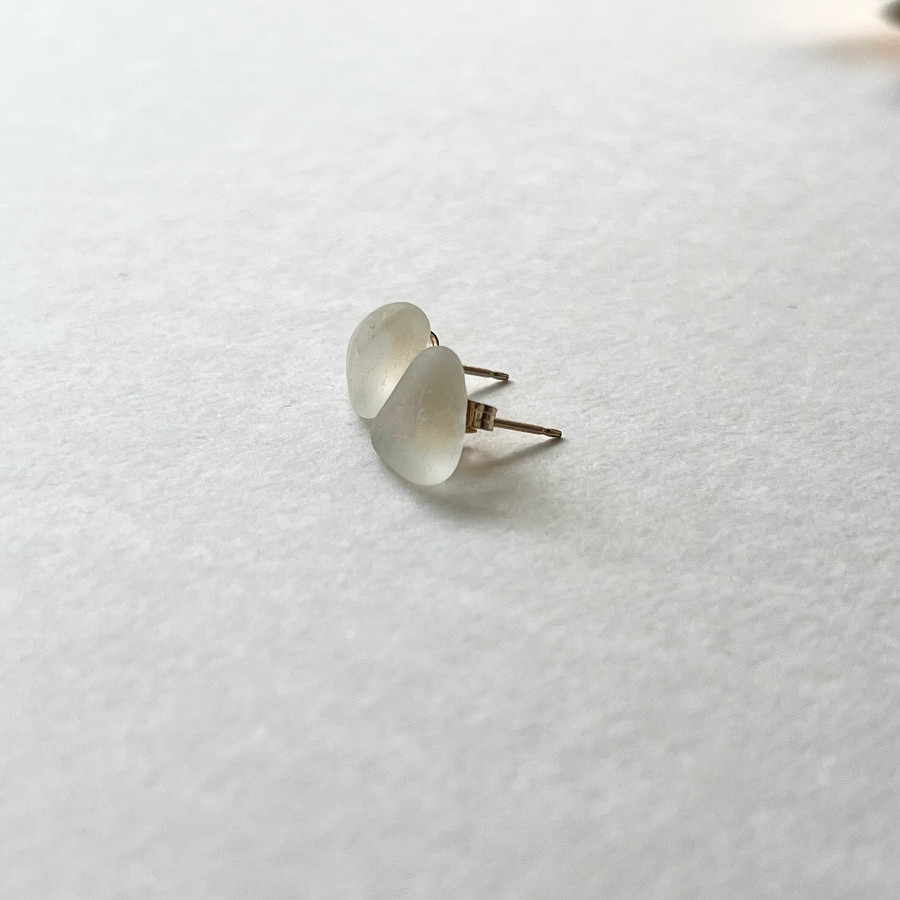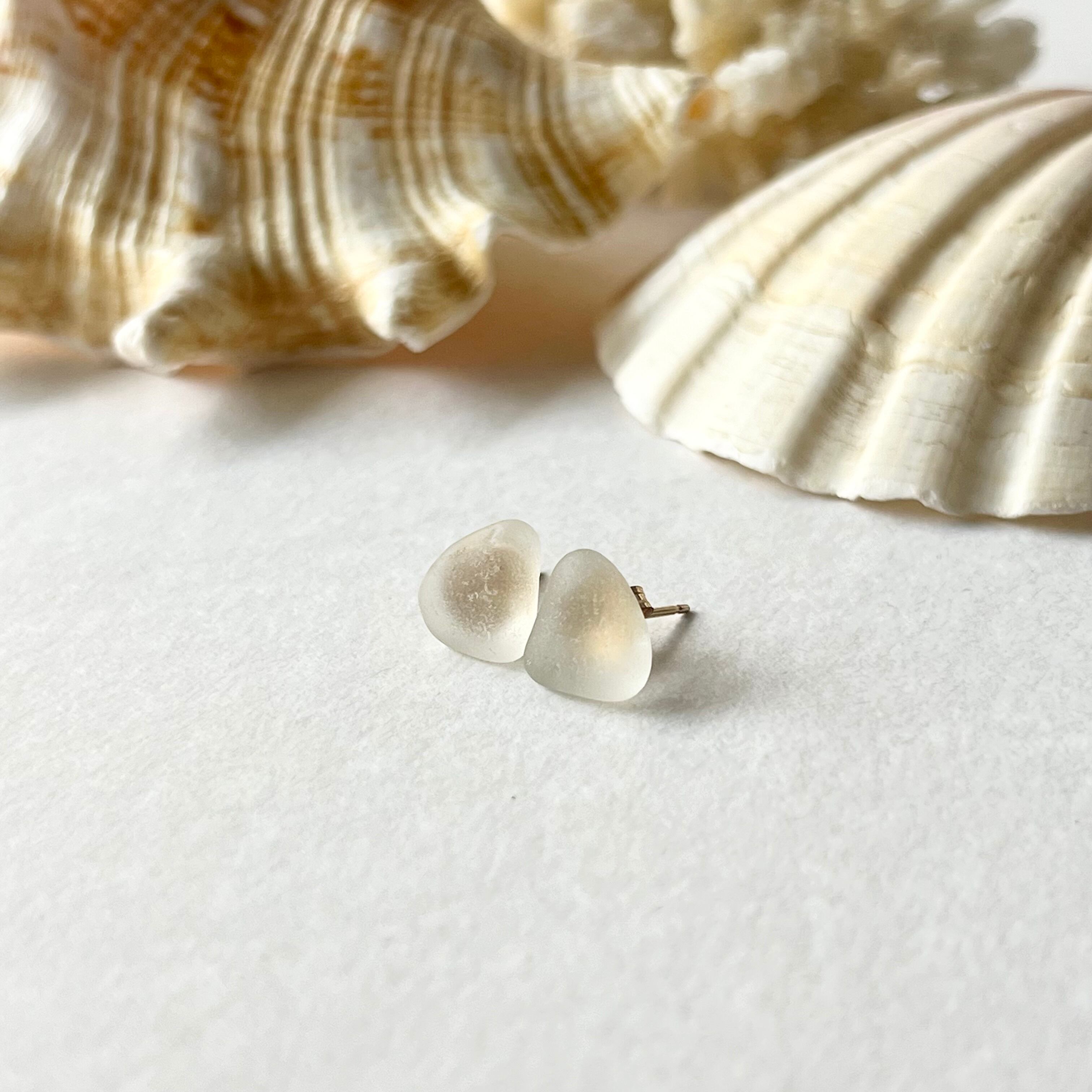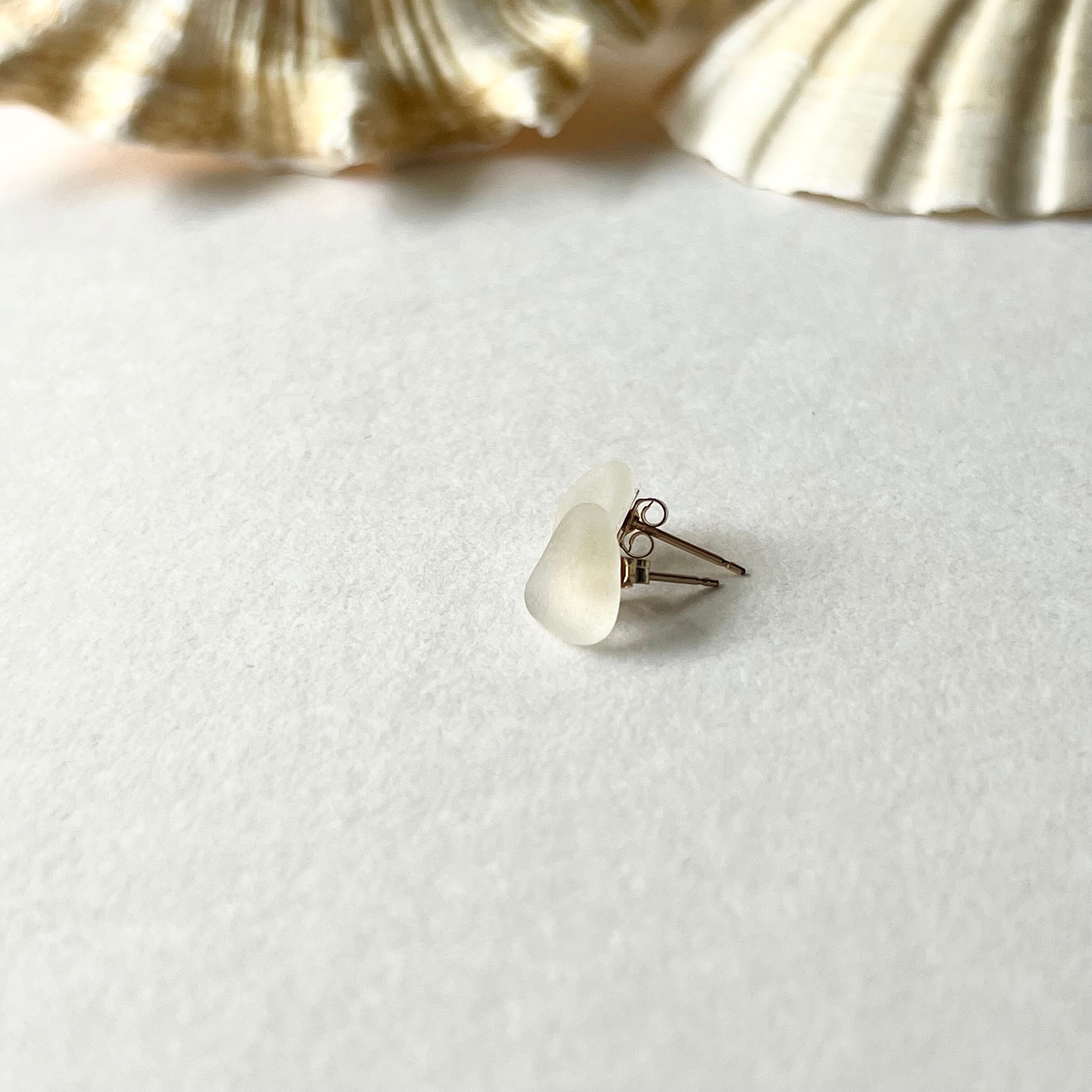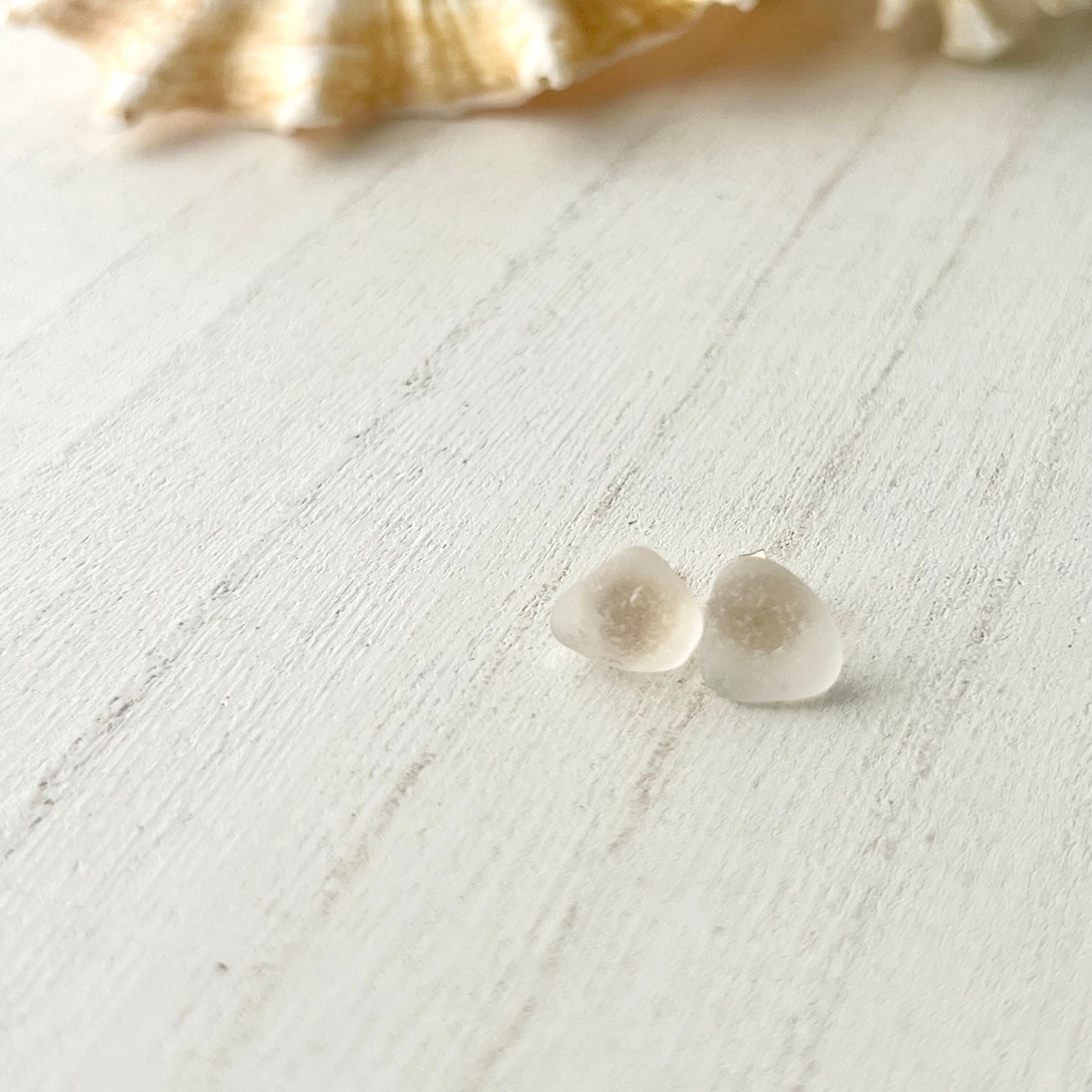 《14kgf》小さなホワイトシーグラスのスタッズピアス