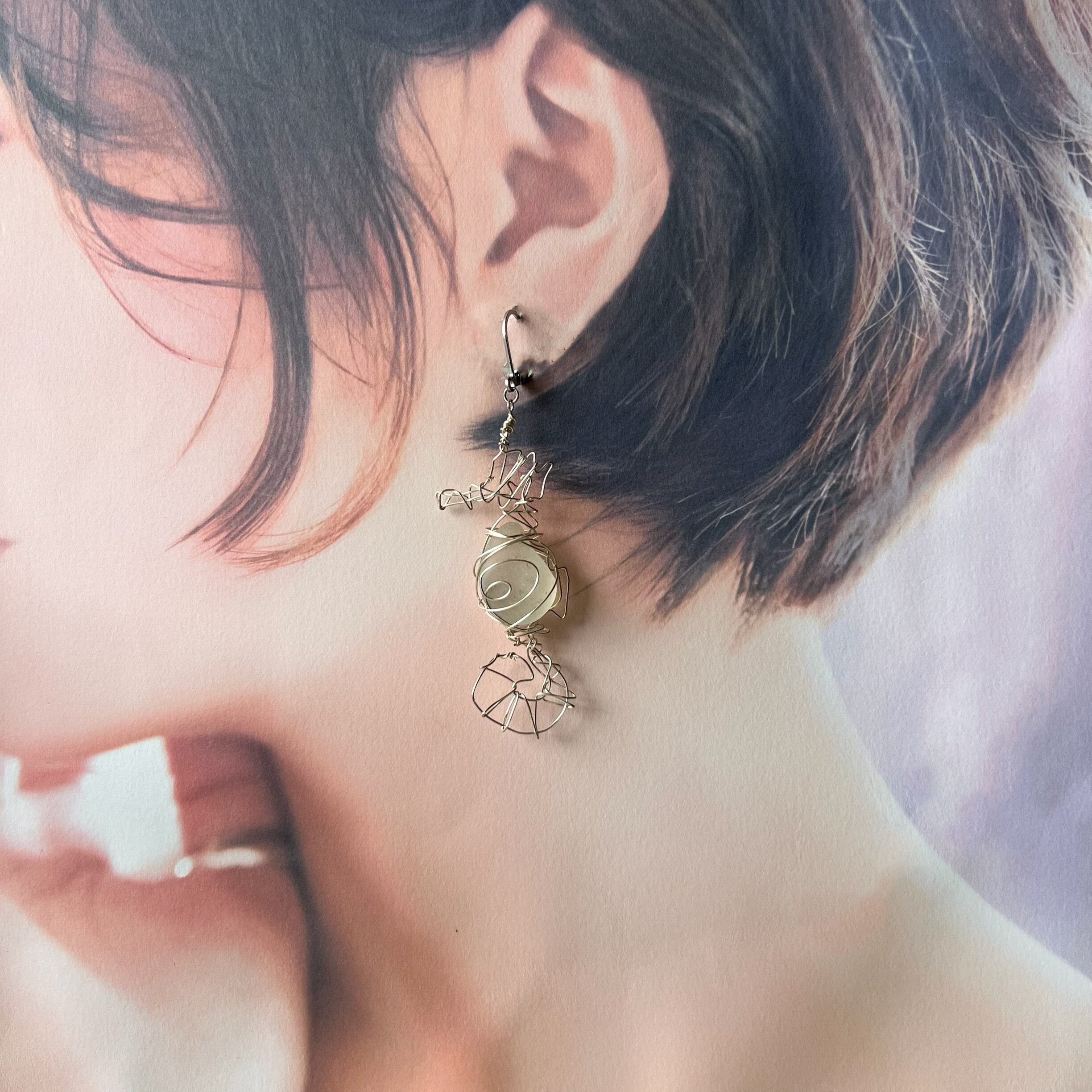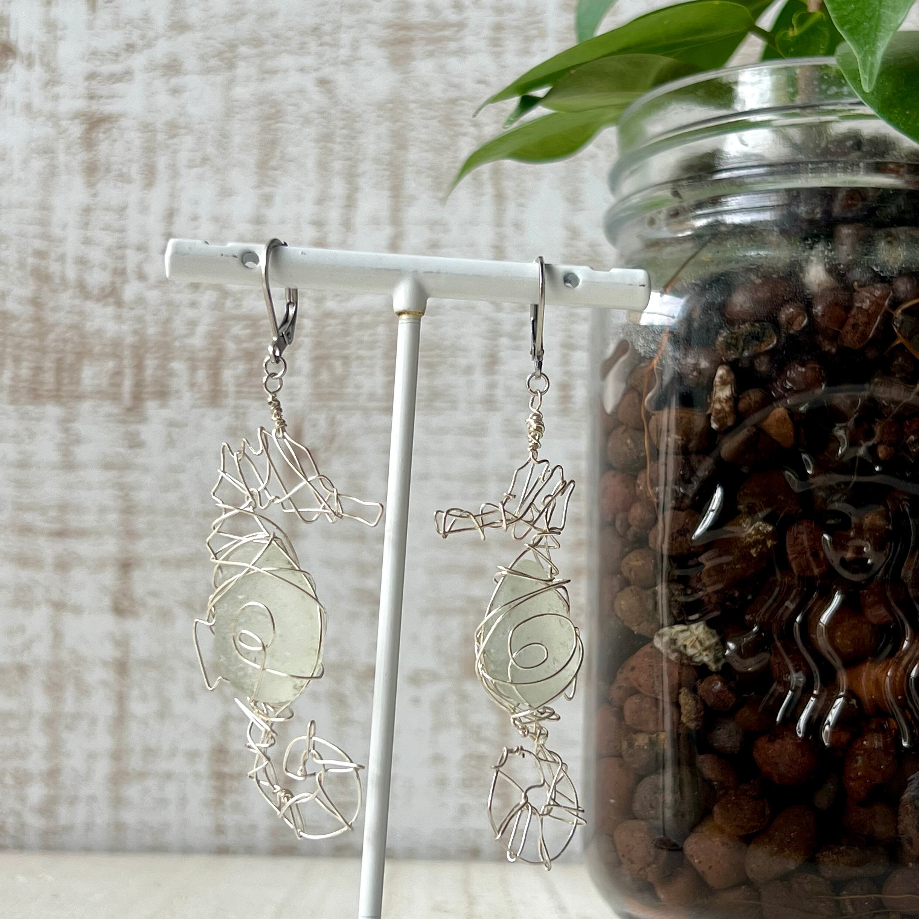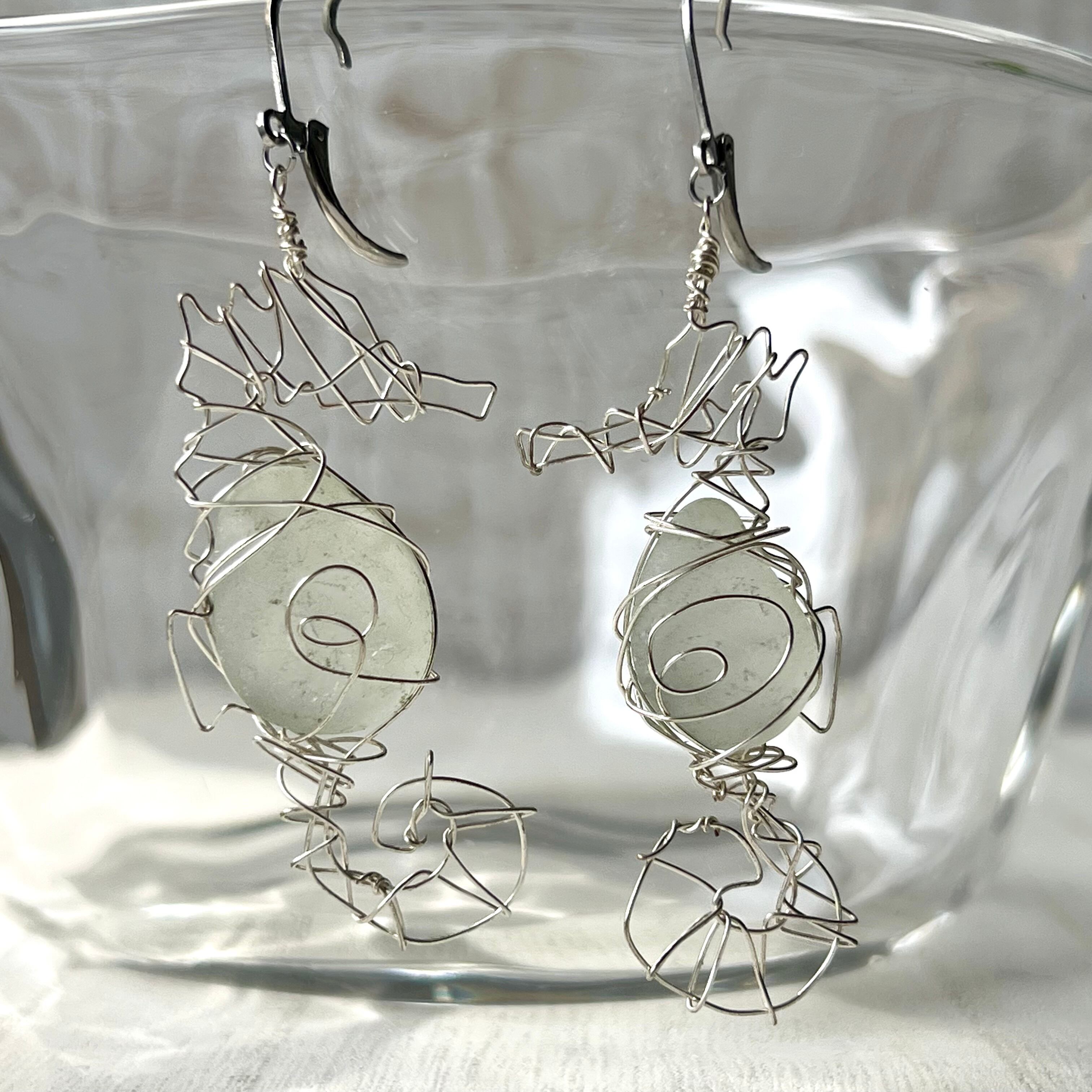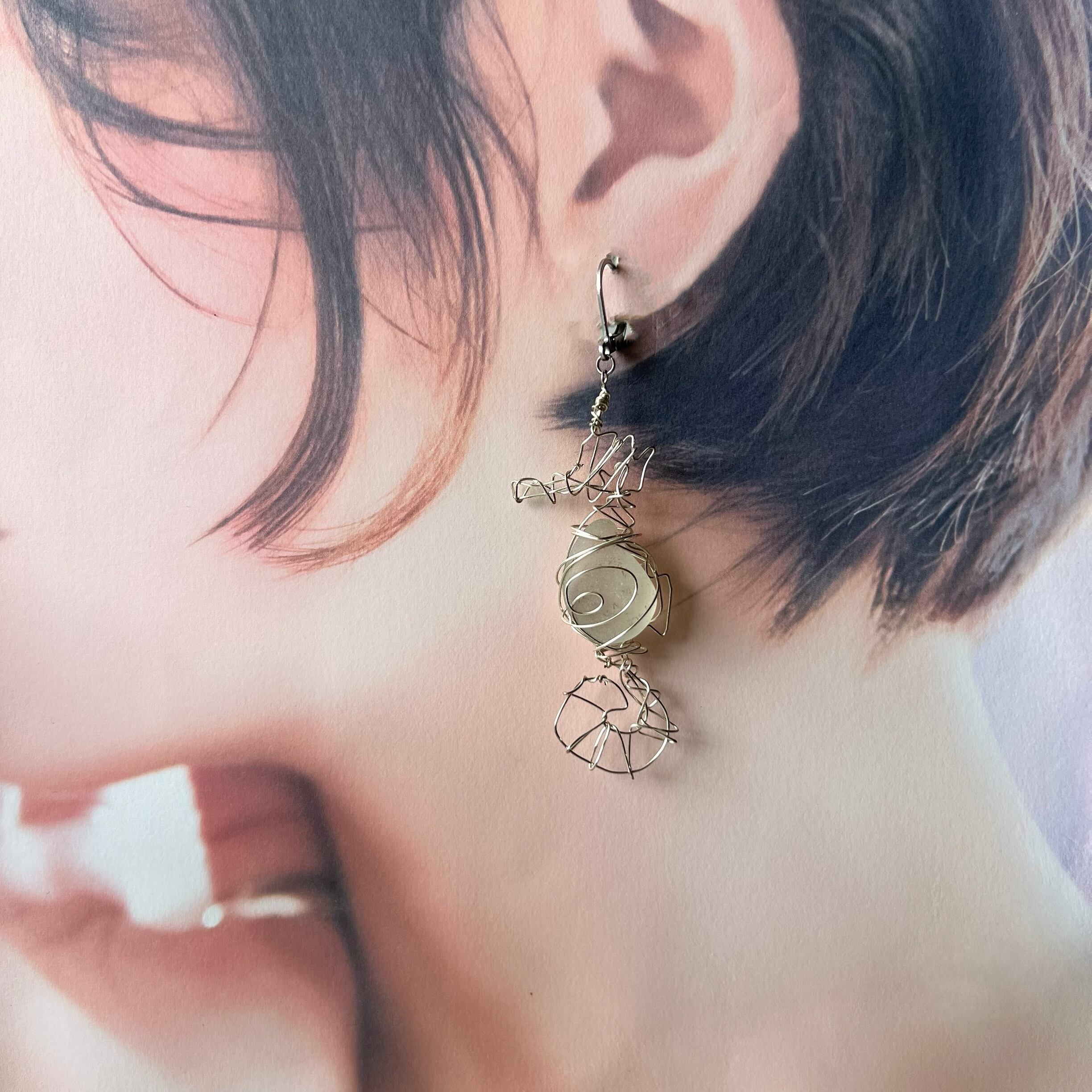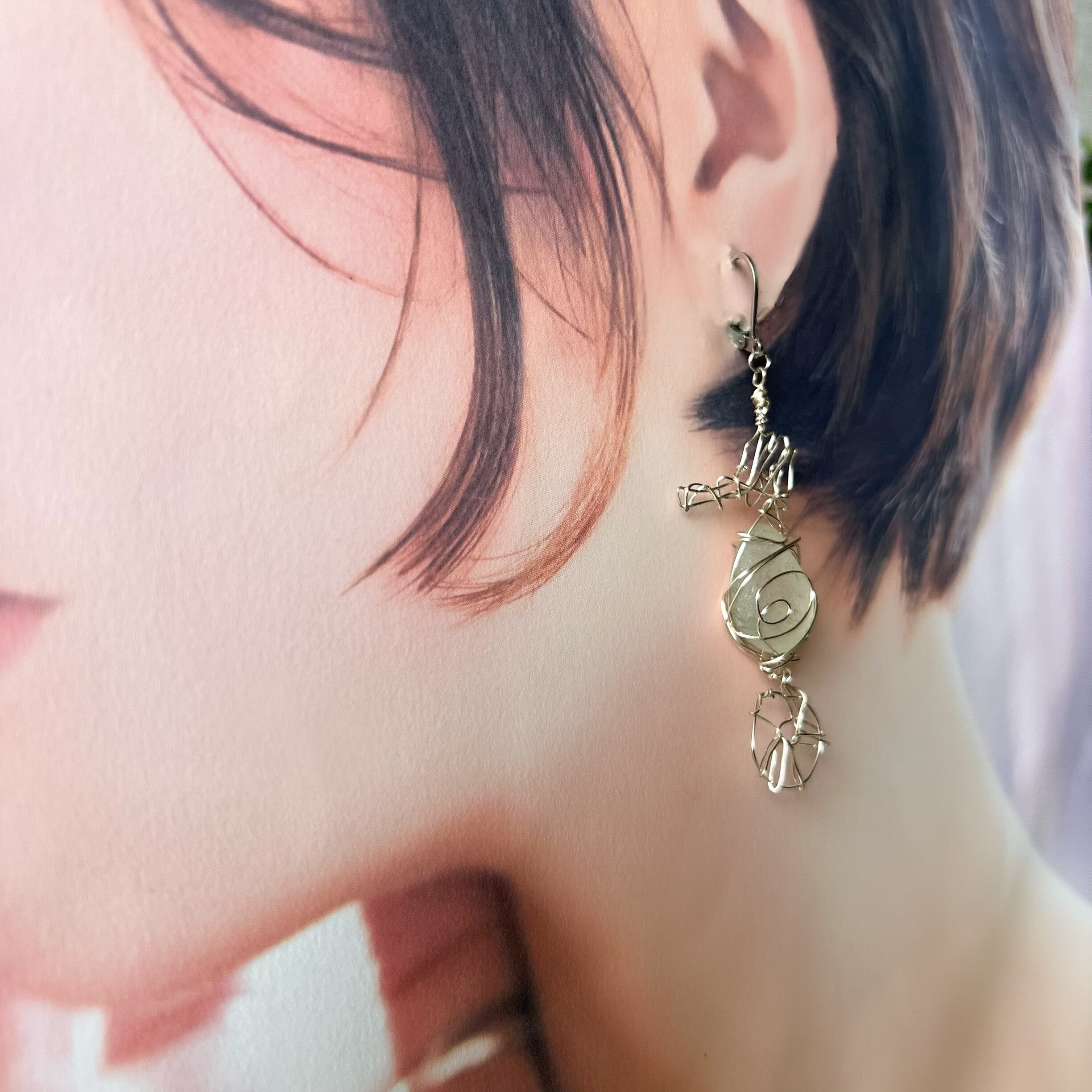 幸せ詰め込んだホワイトシーグラスのタツノオトシゴのピアス〝Core〟