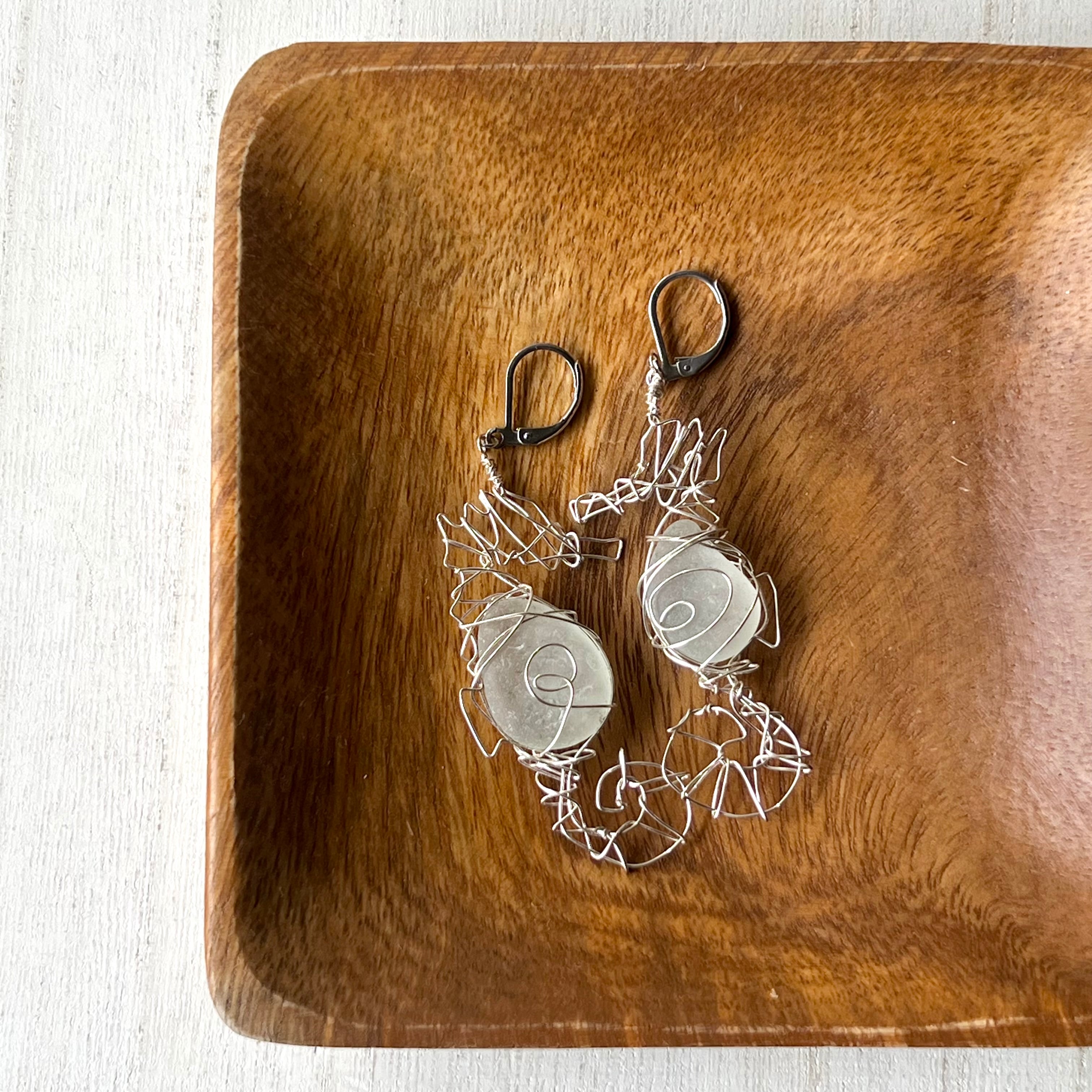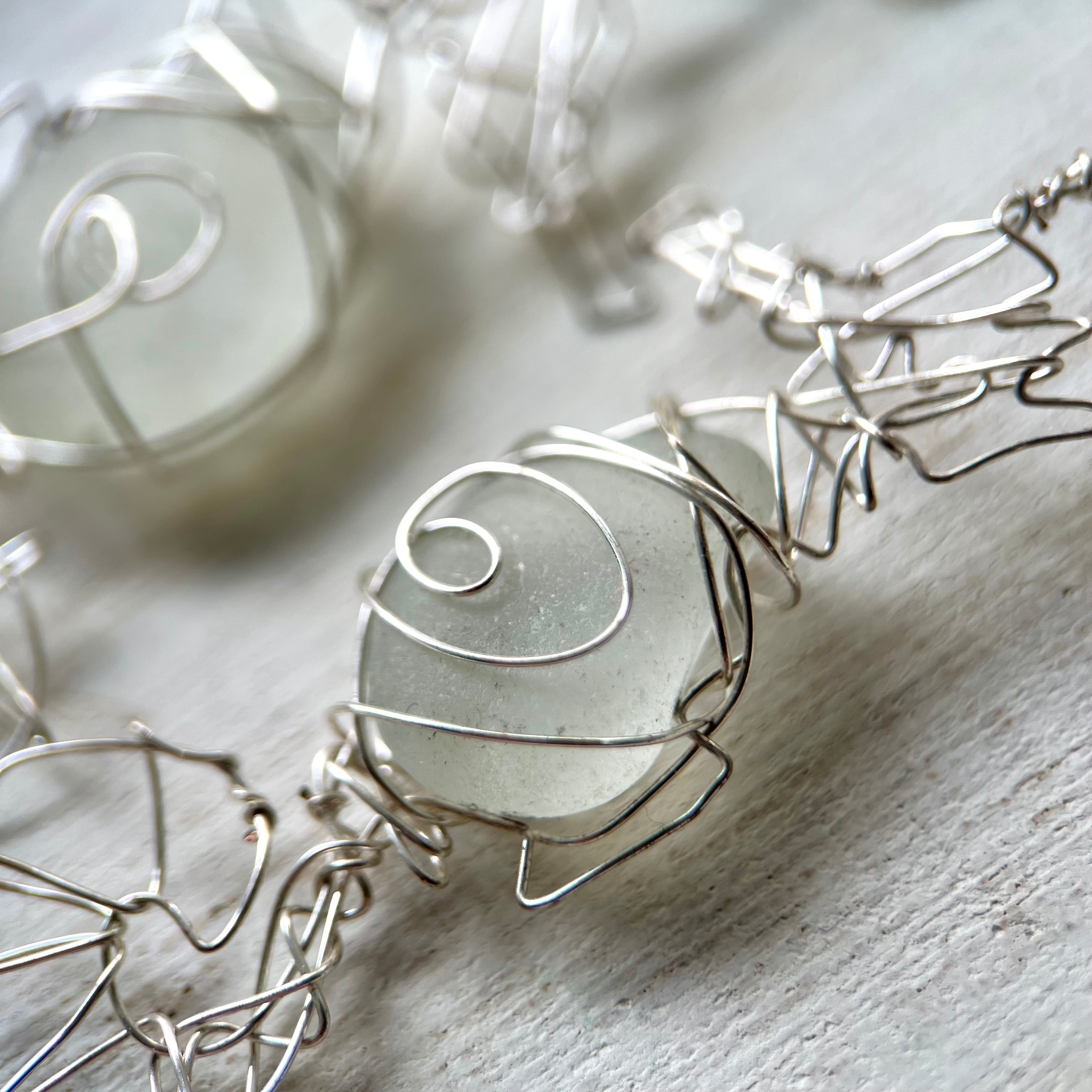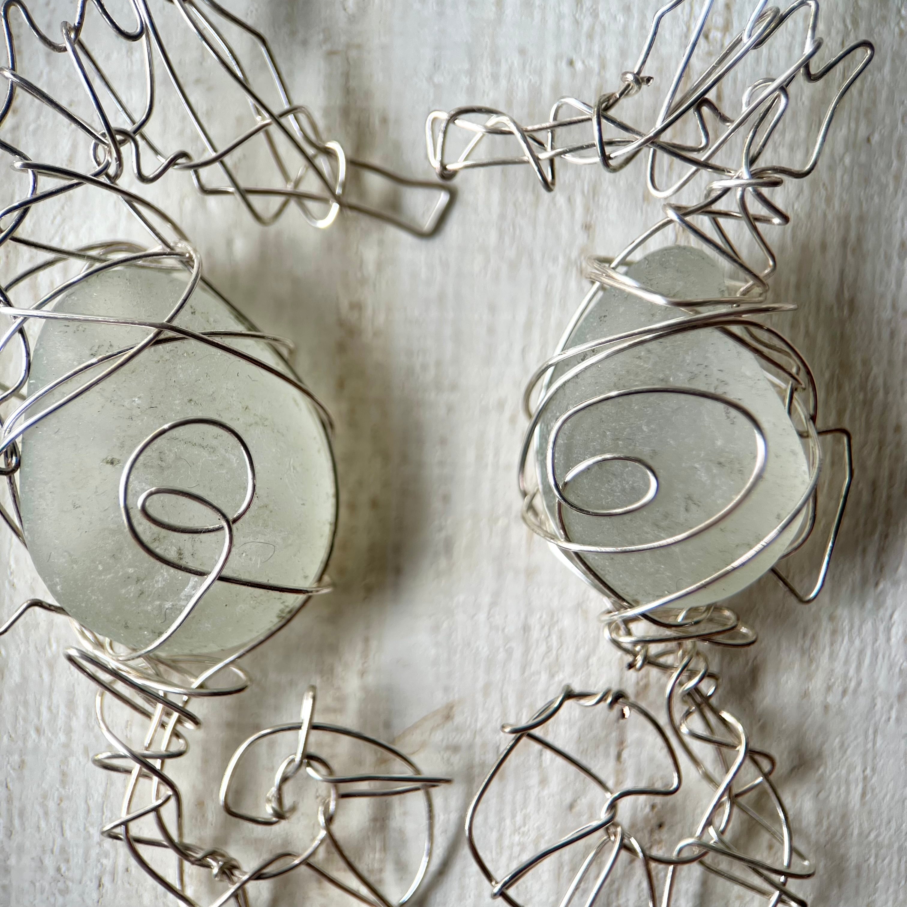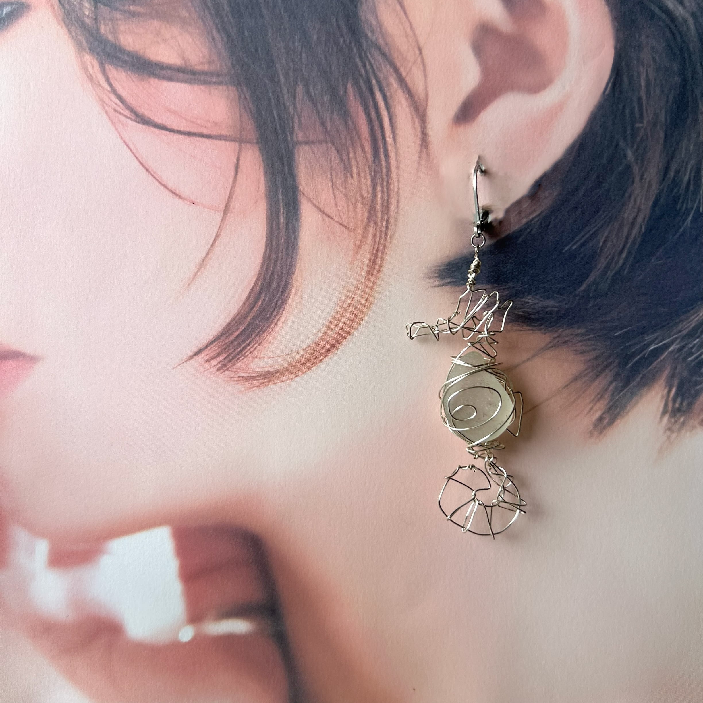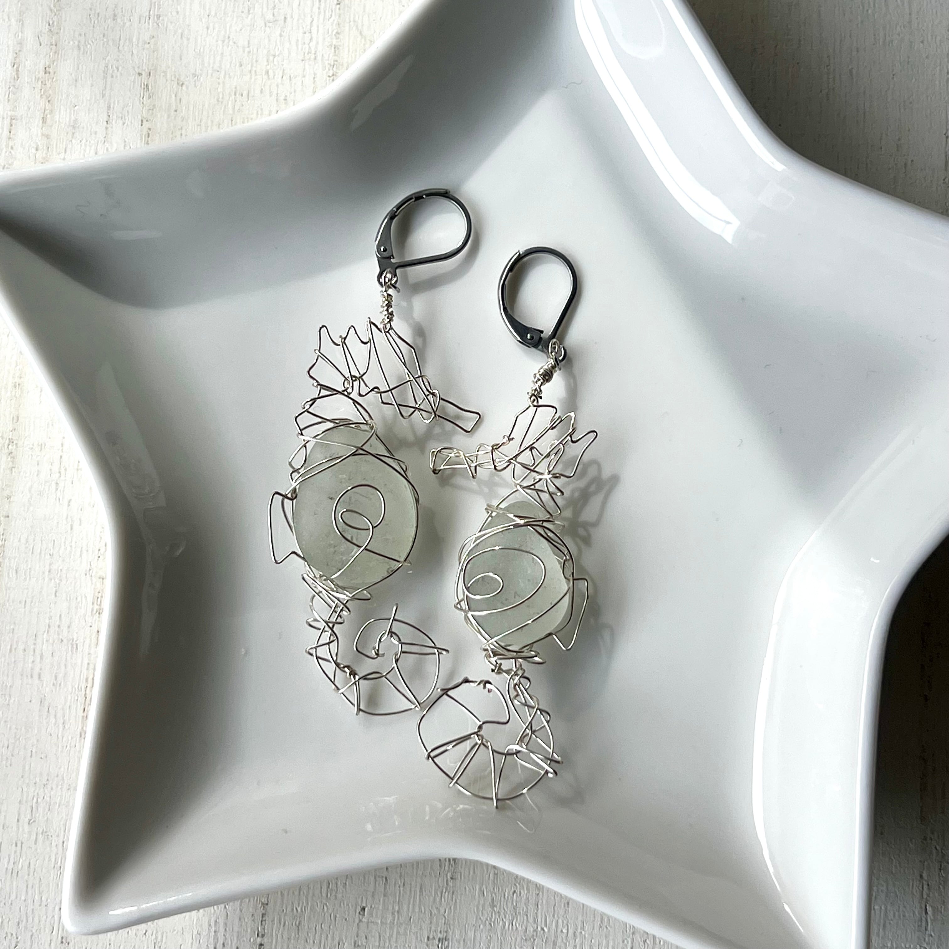 幸せ詰め込んだホワイトシーグラスのタツノオトシゴのピアス〝Core〟