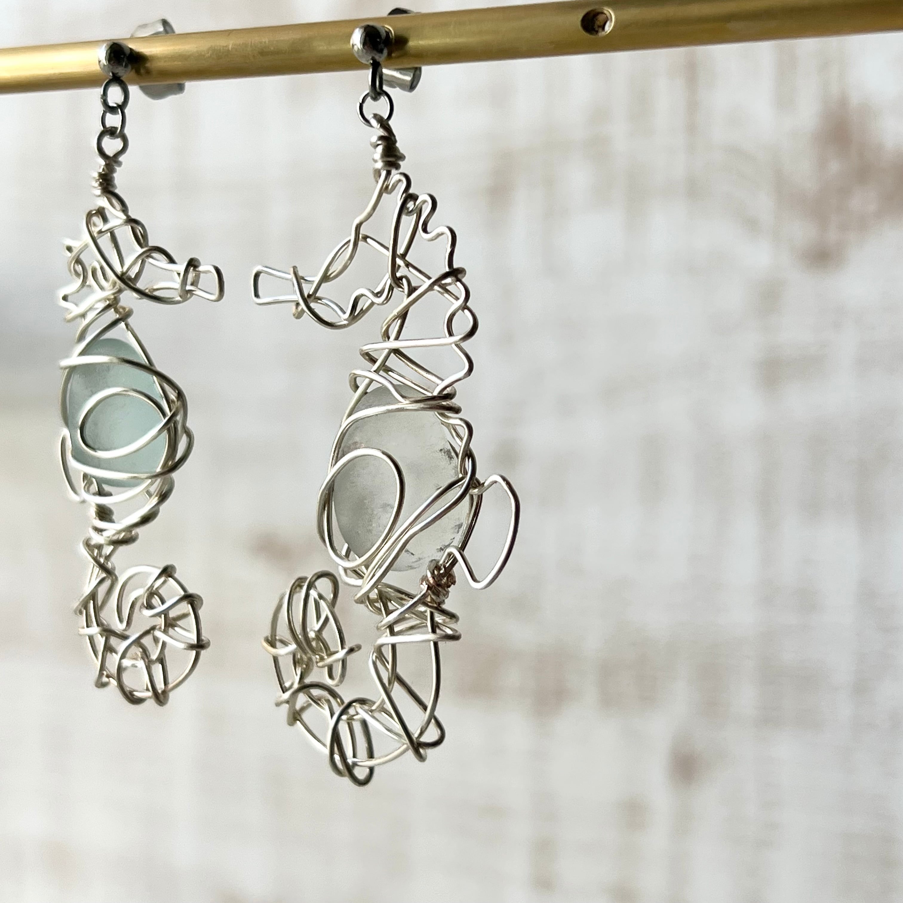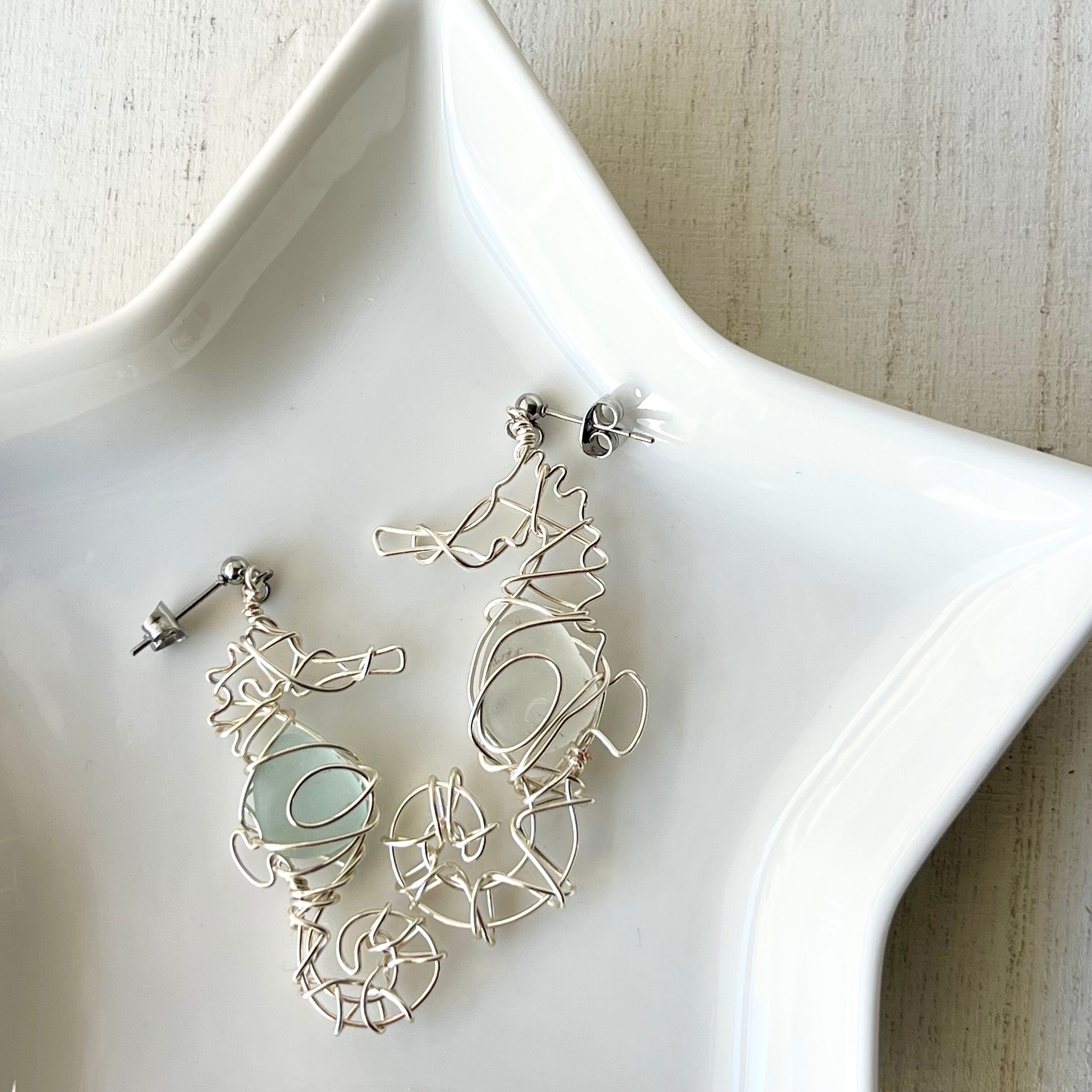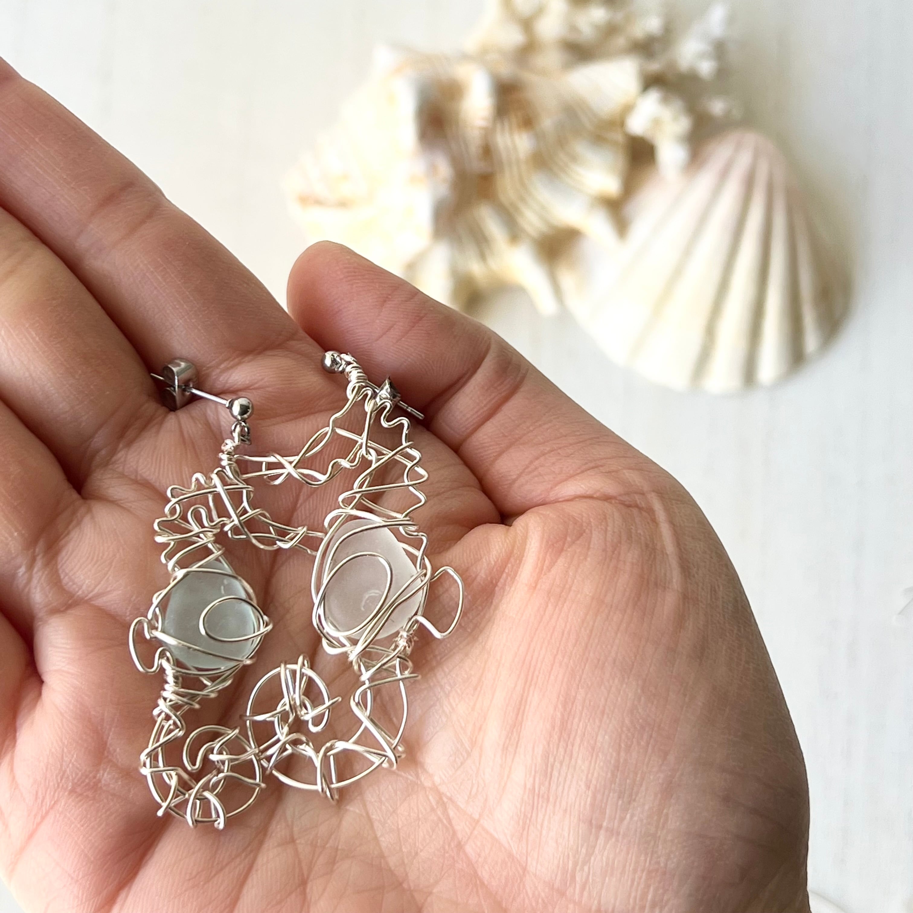 空を泳ぐような空色とホワイトシーグラスの幸せの象徴タツノオトシゴのピアス〝Core〟