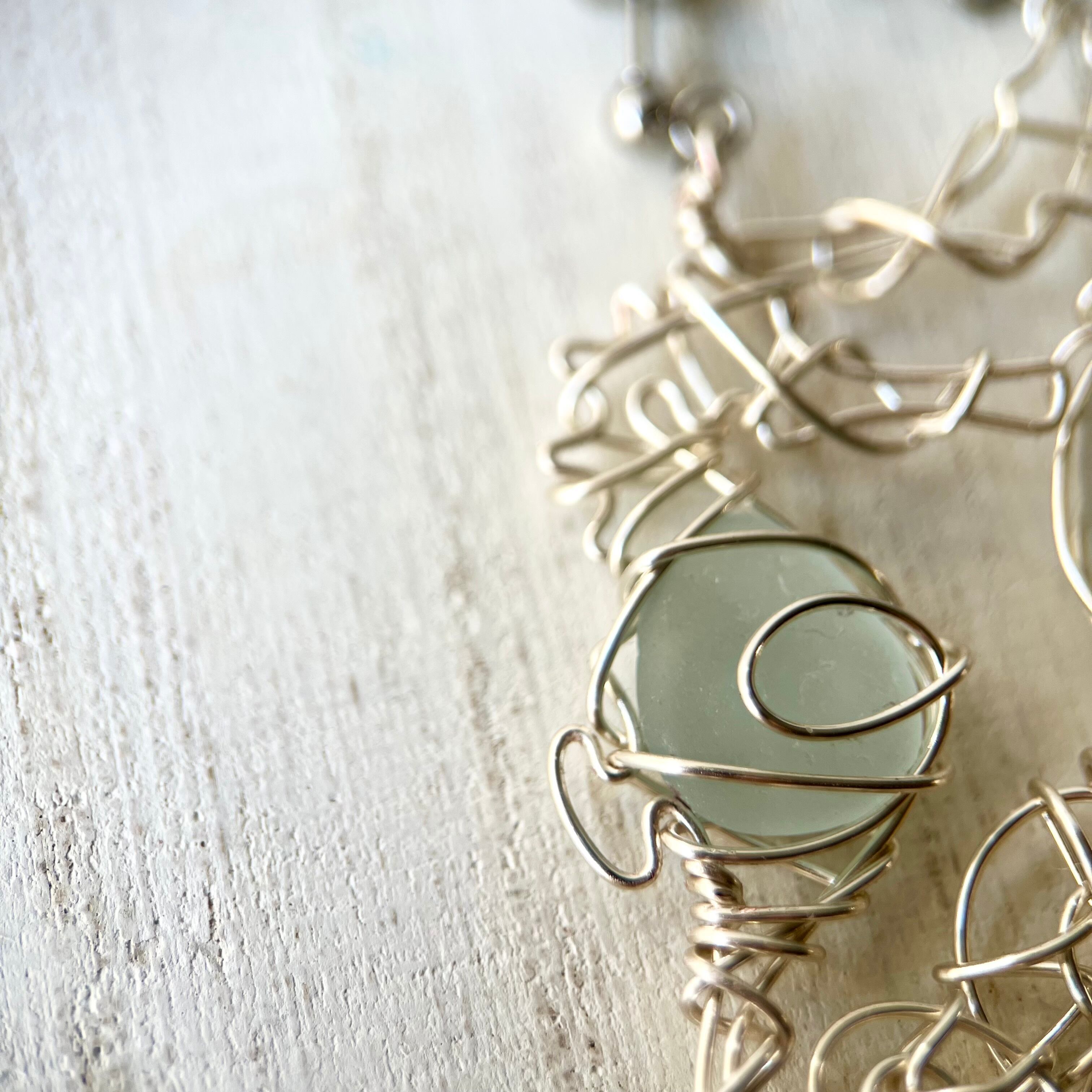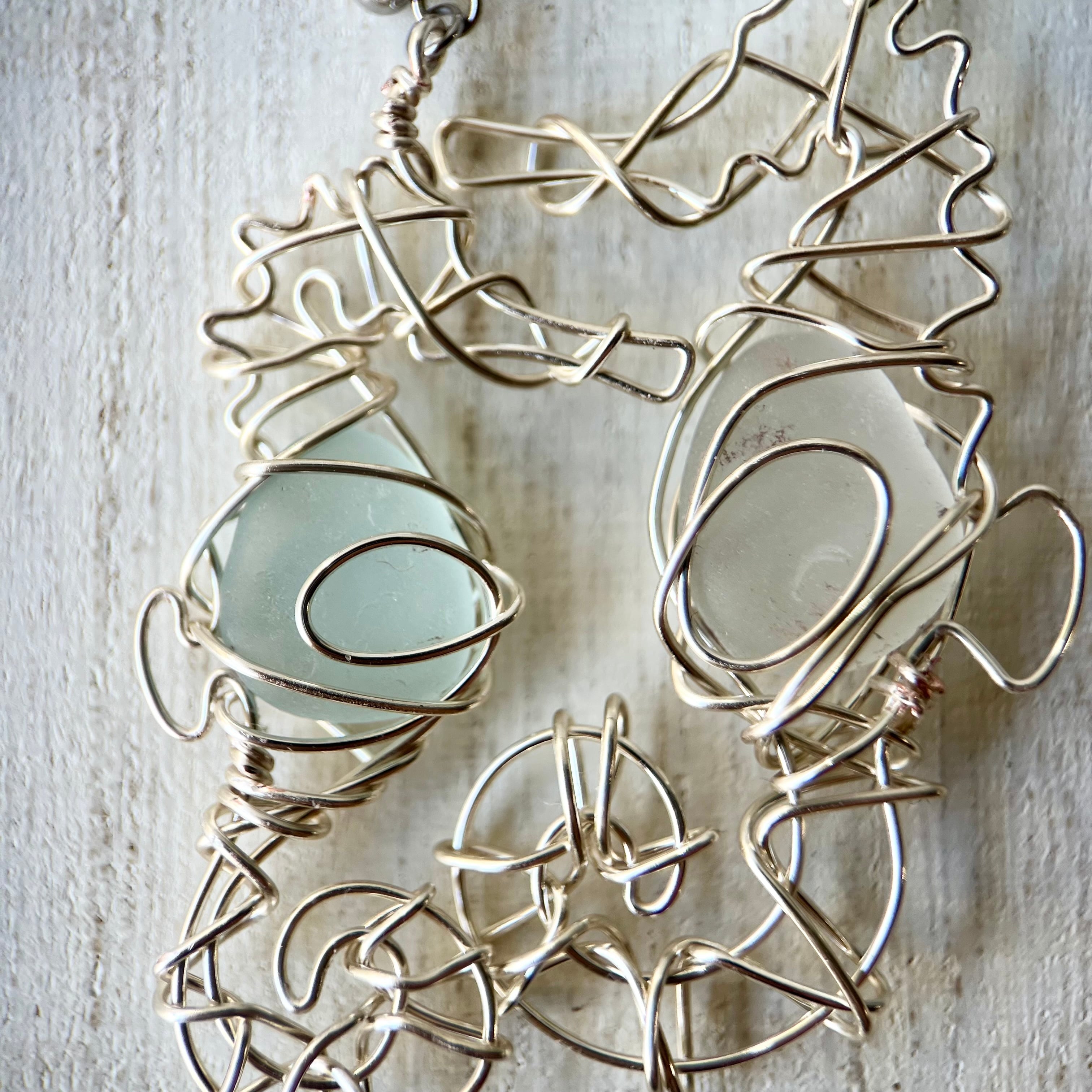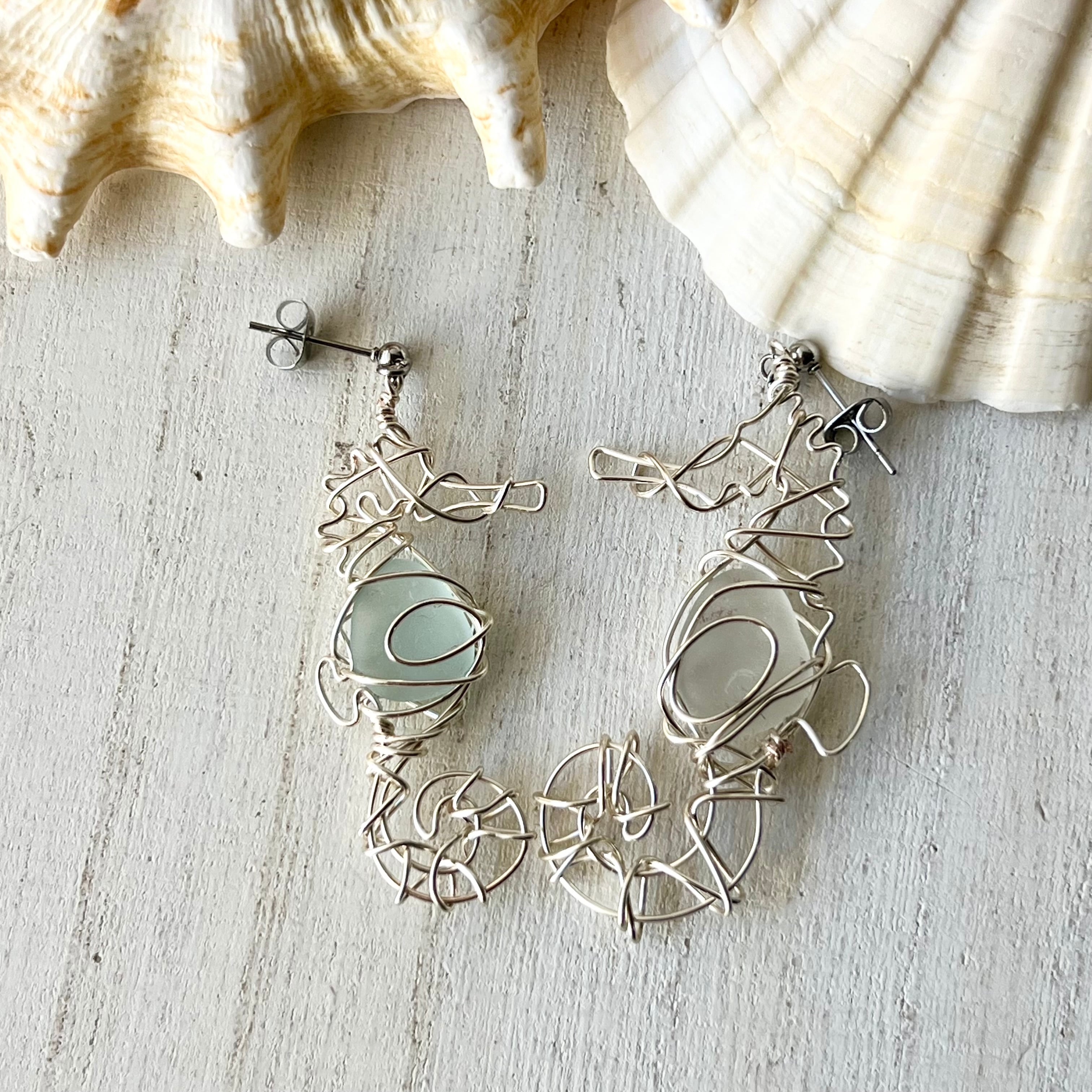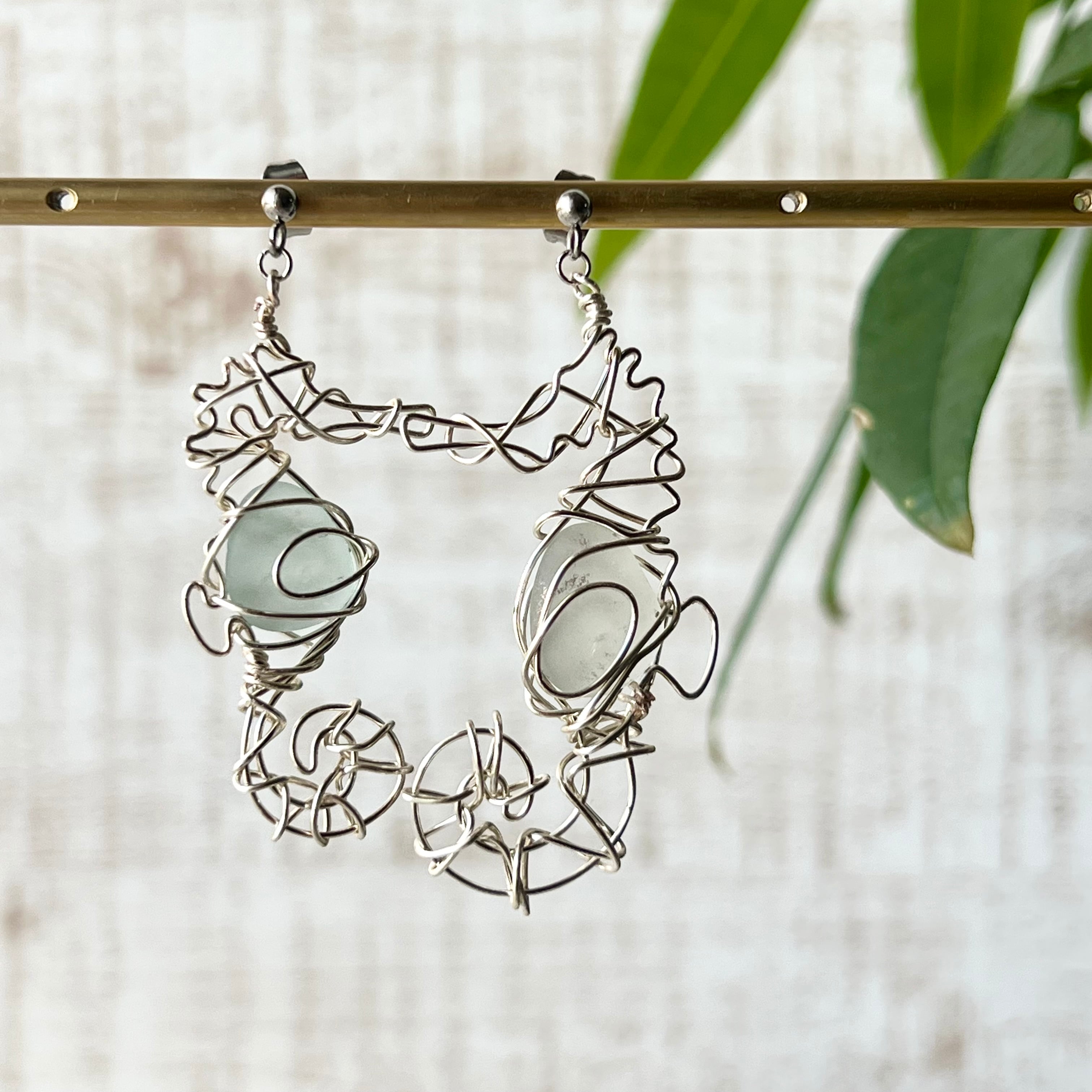 空を泳ぐような空色とホワイトシーグラスの幸せの象徴タツノオトシゴのピアス〝Core〟