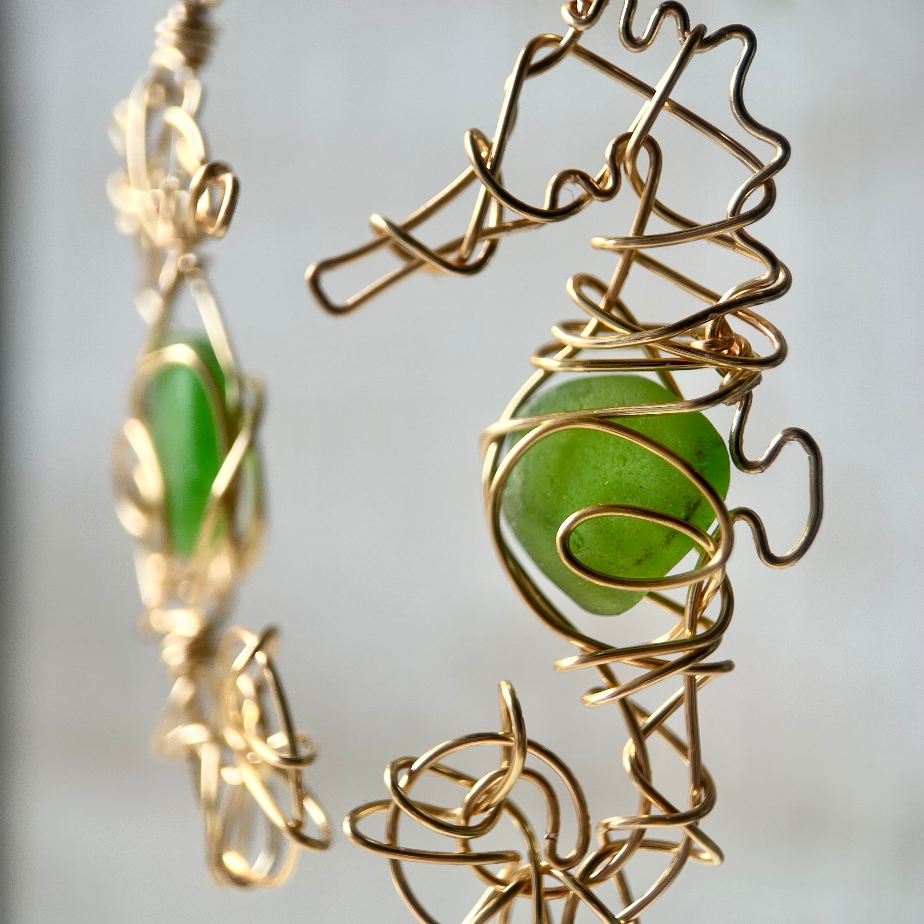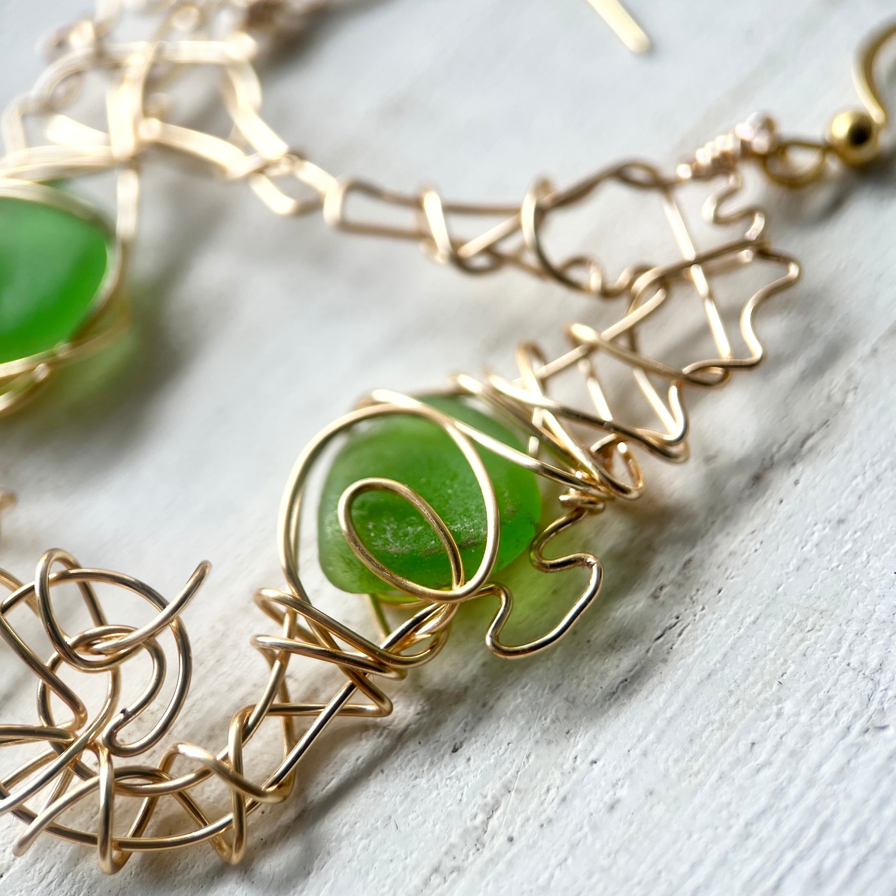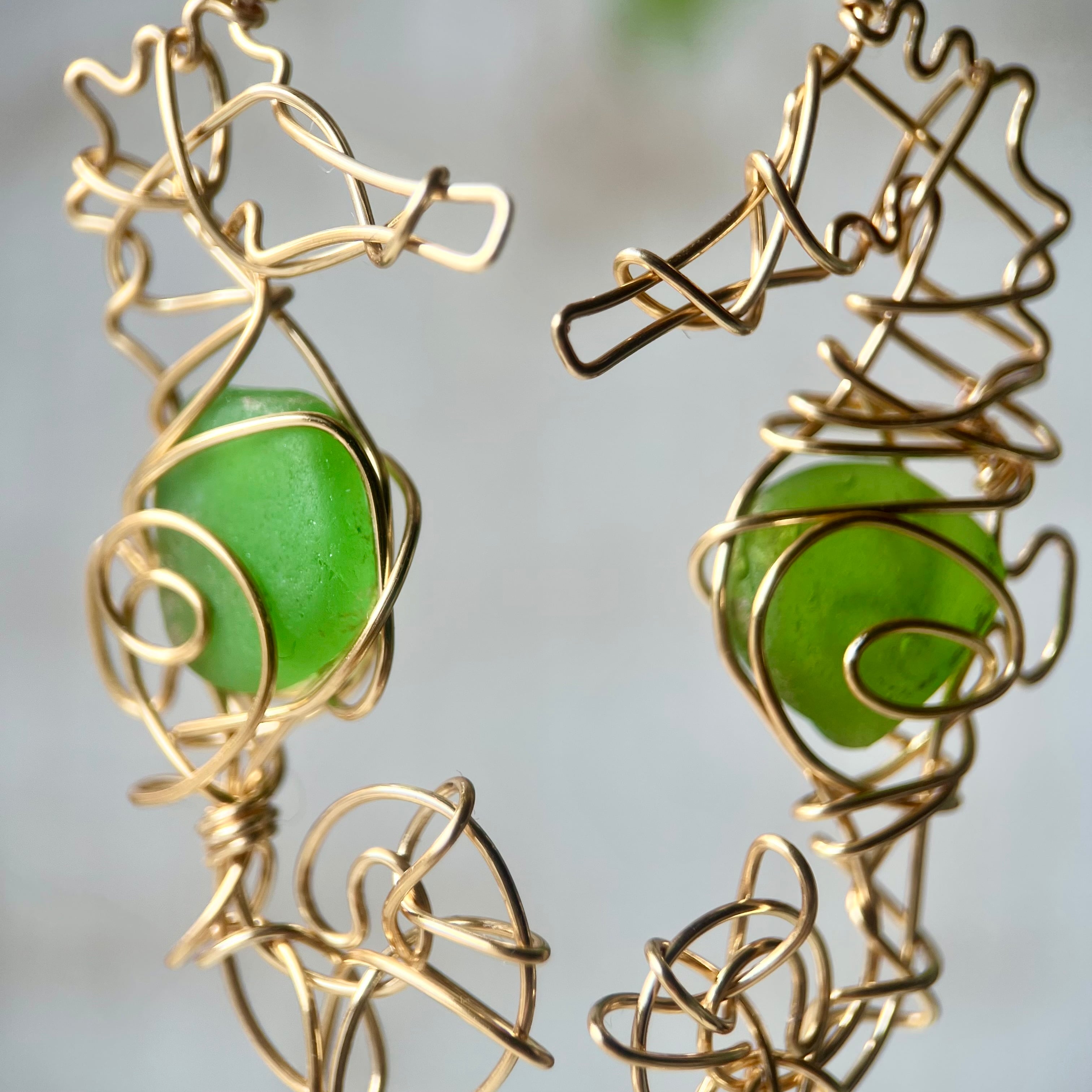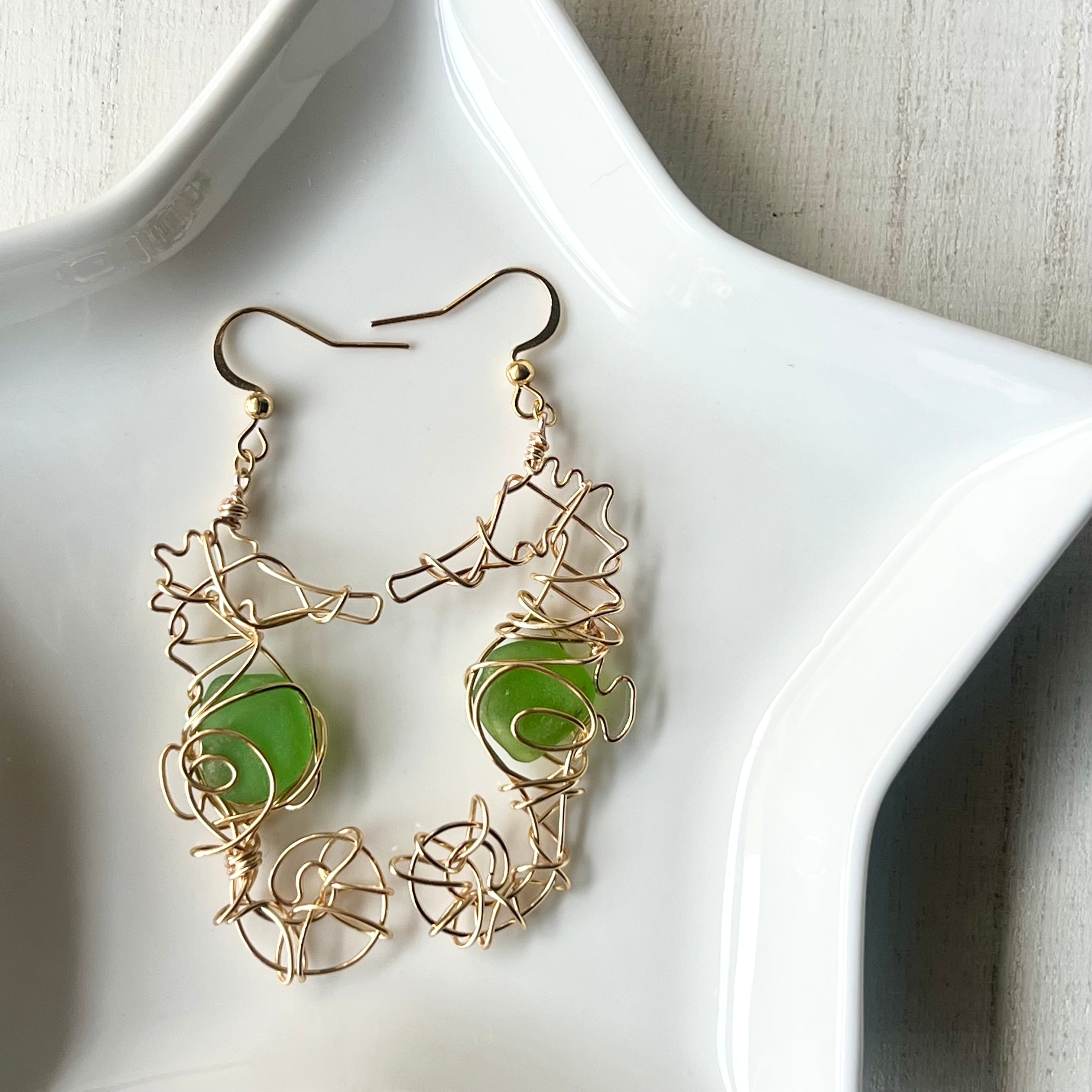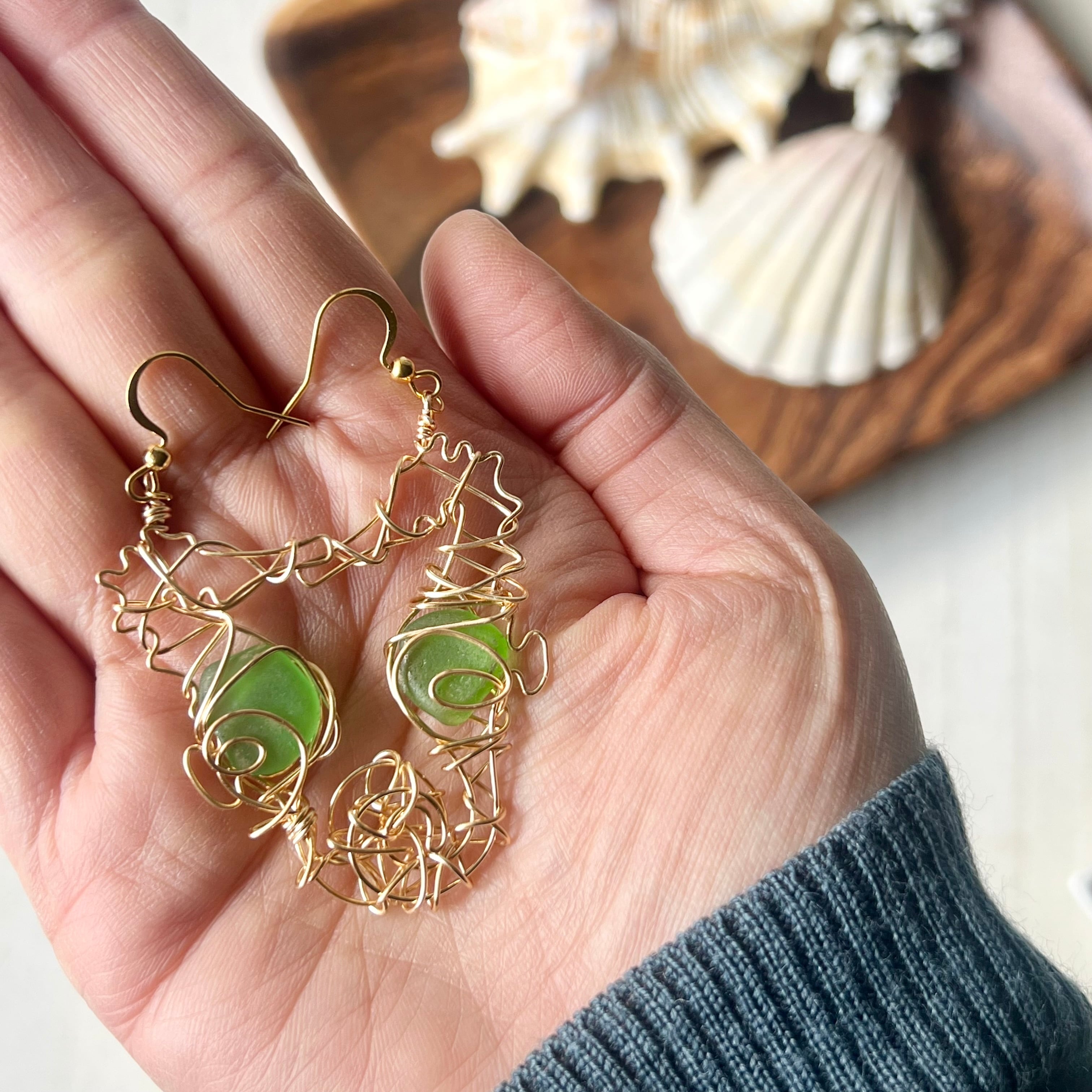 癒しのグリーンシーグラスの幸せの象徴タツノオトシゴのピアス〝Core〟