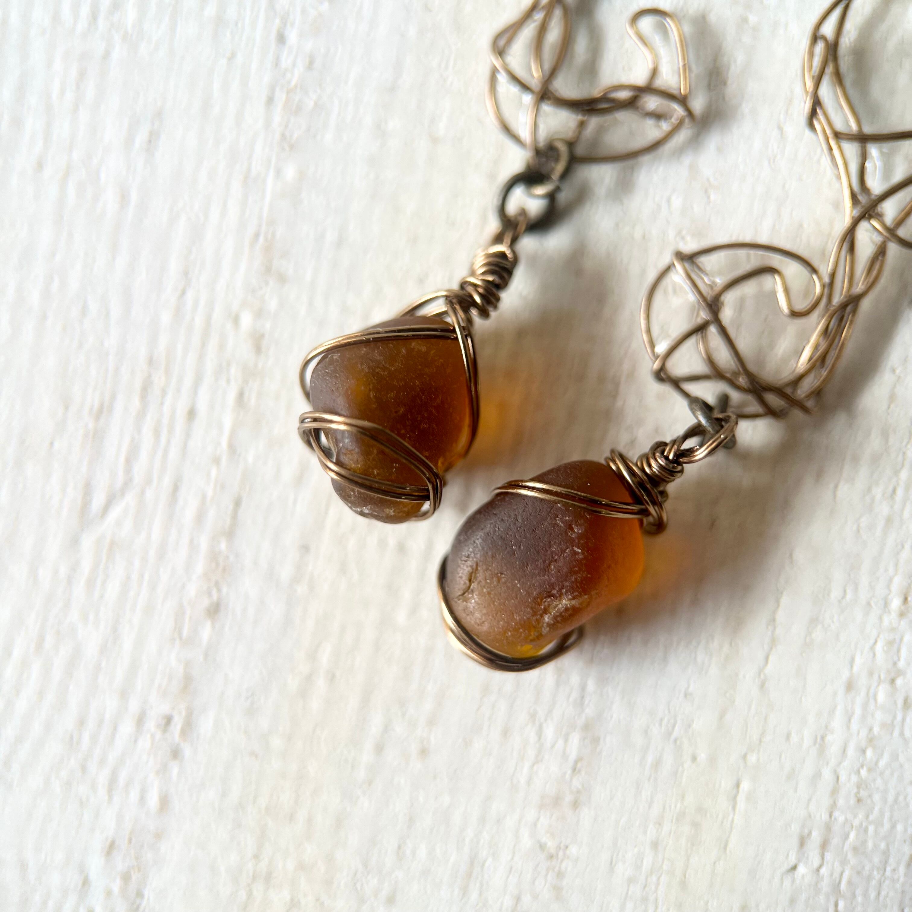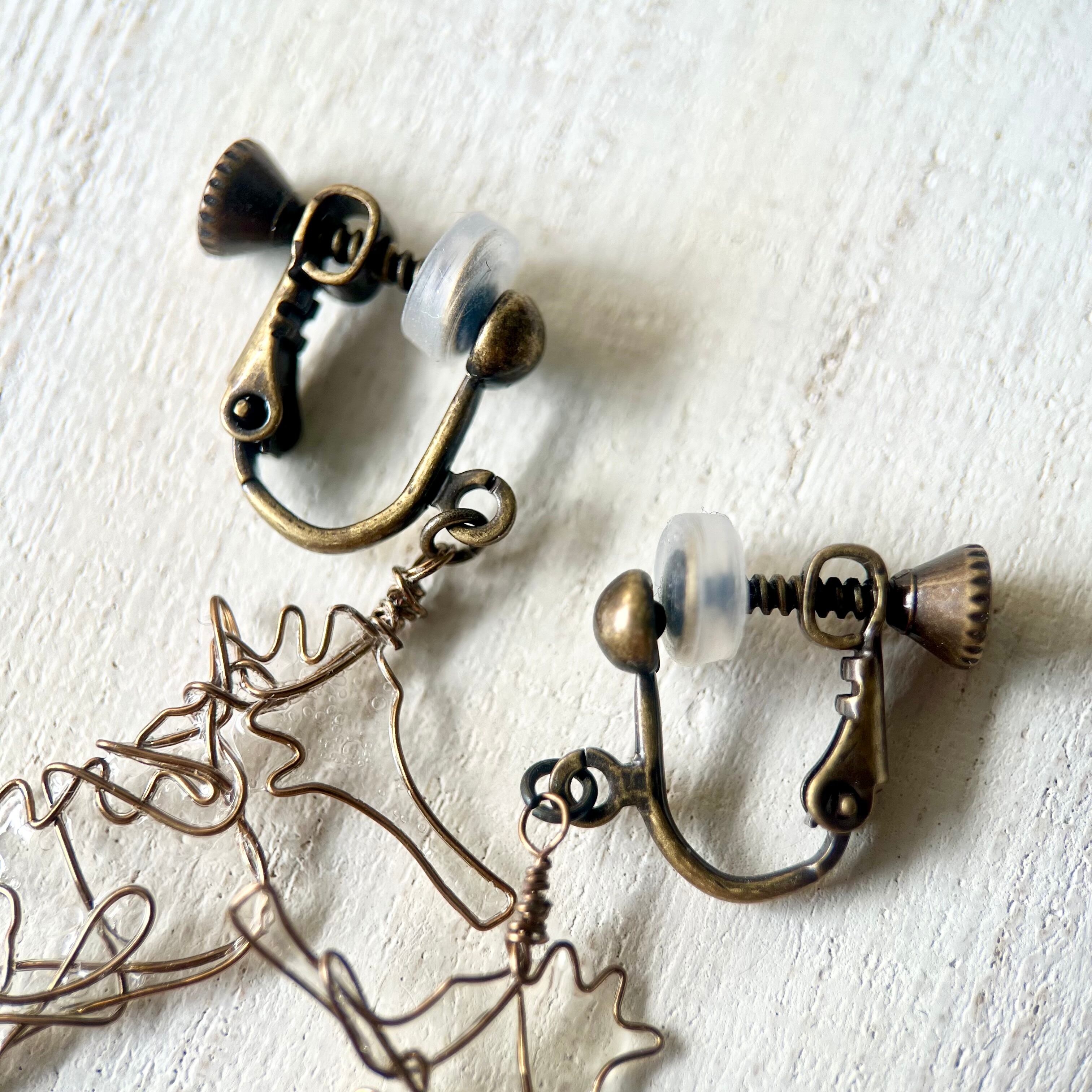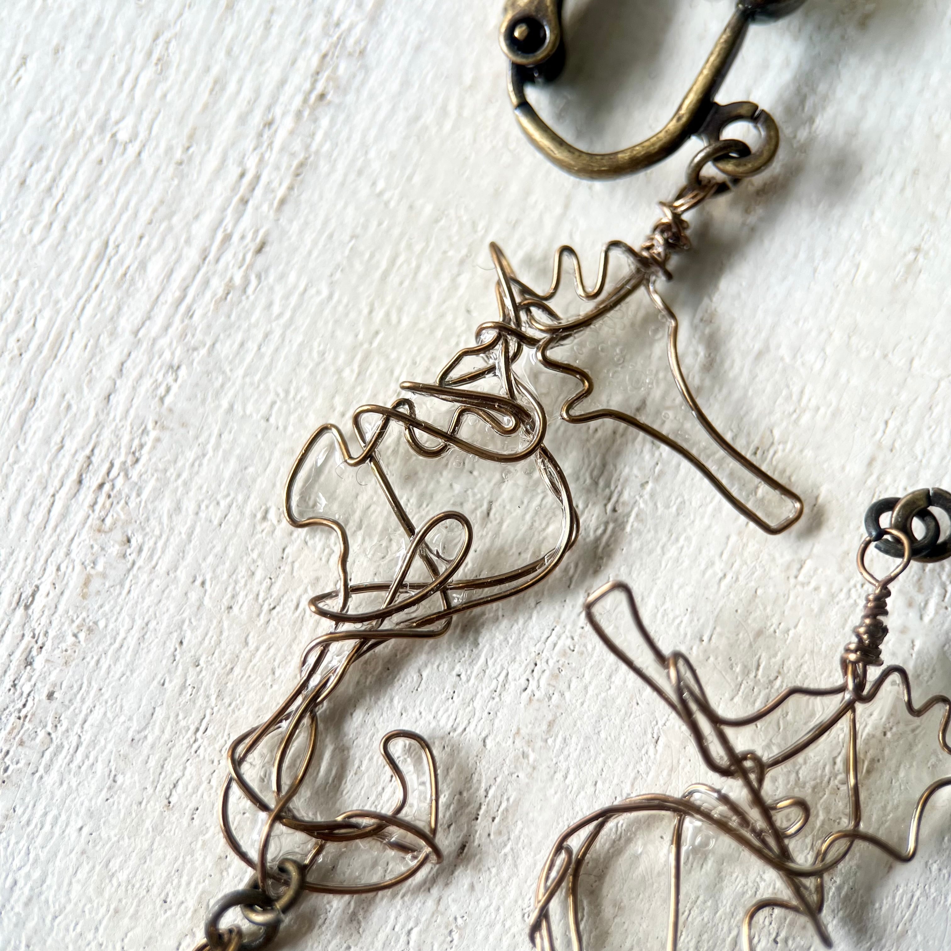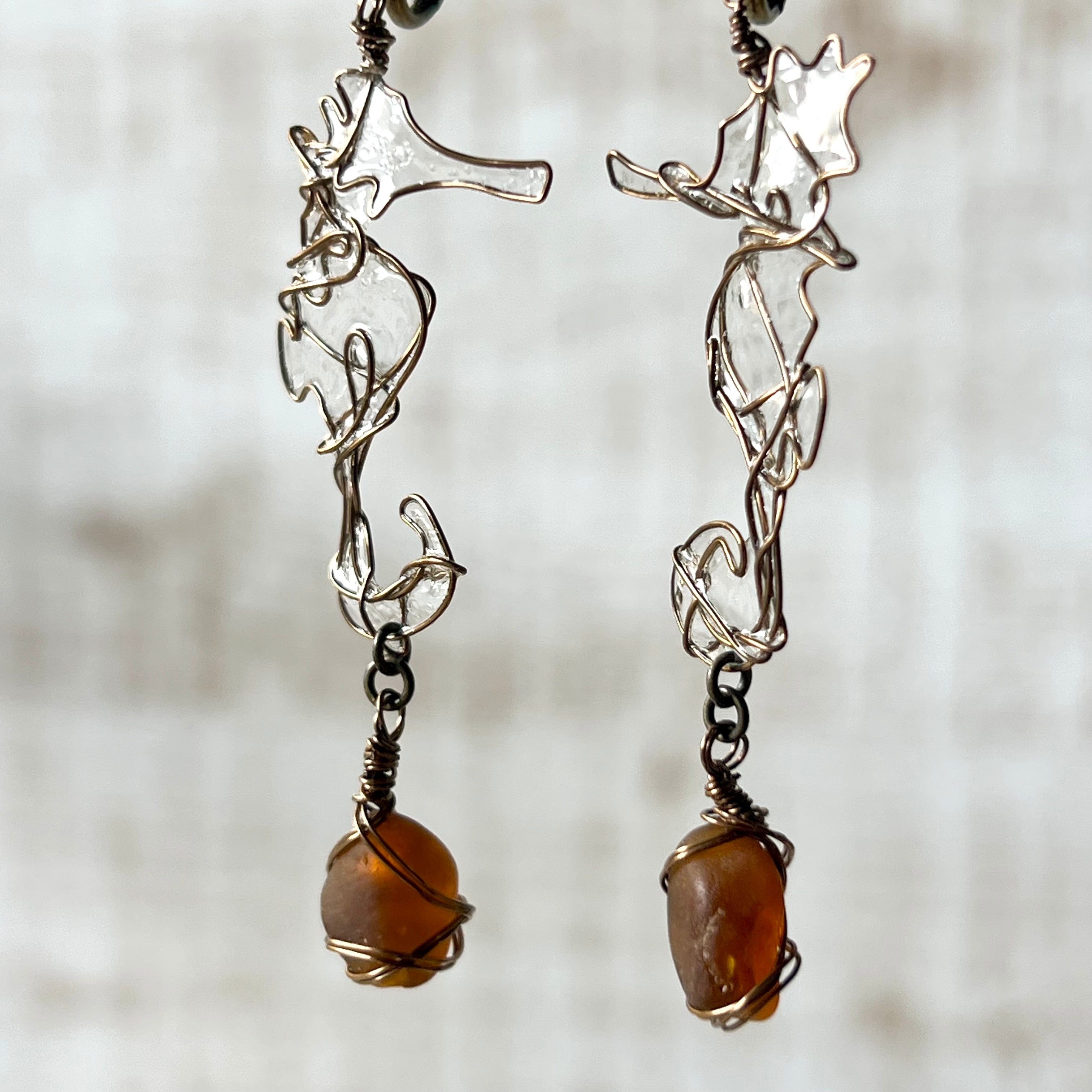幸せの象徴タツノオトシゴの大人ブラウンシーグラスが揺れるイヤリング〝yurayura〟