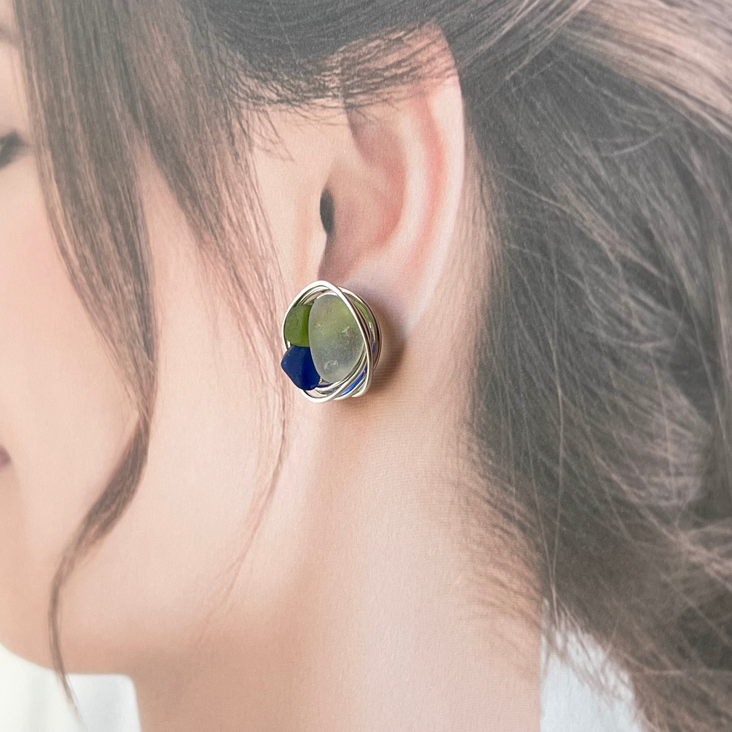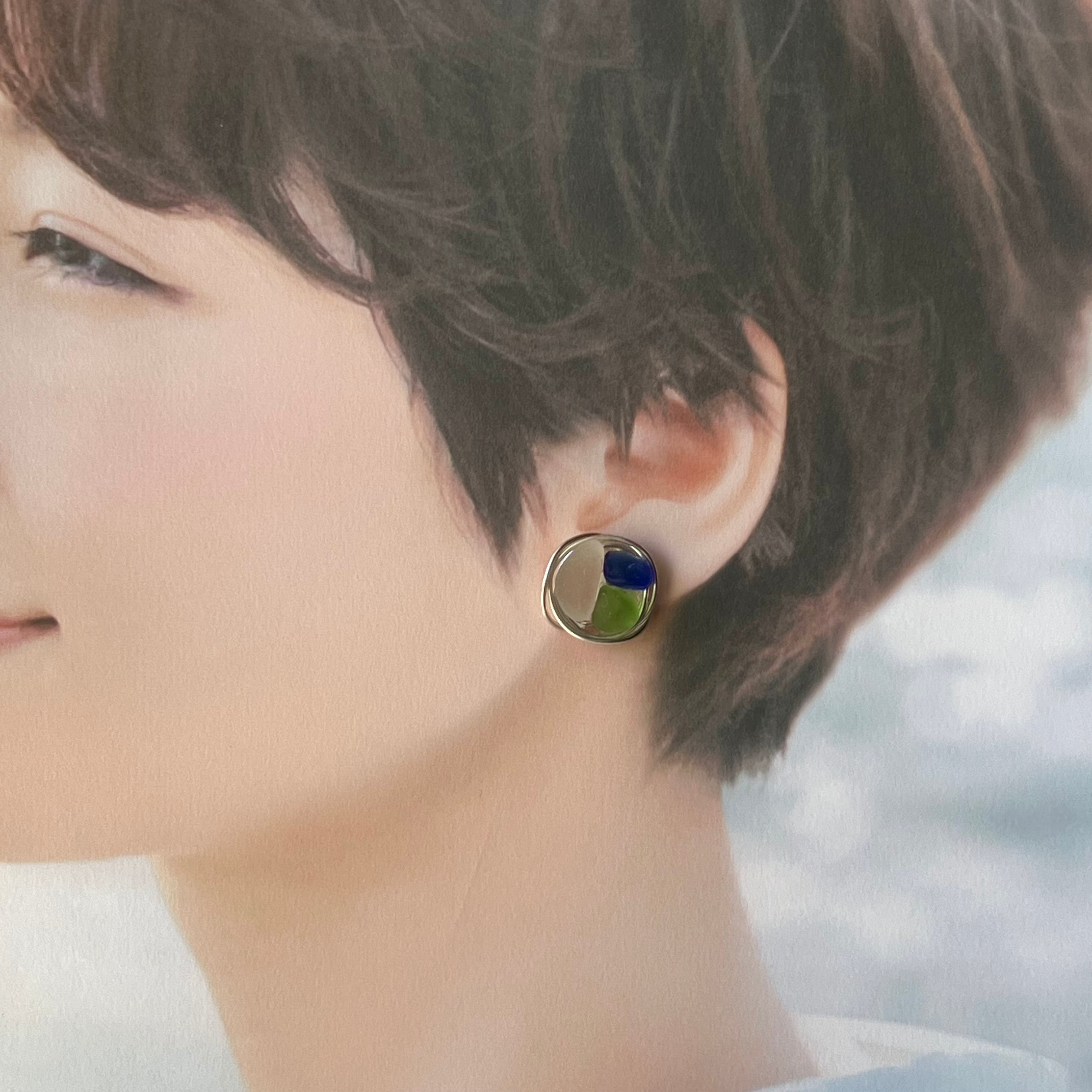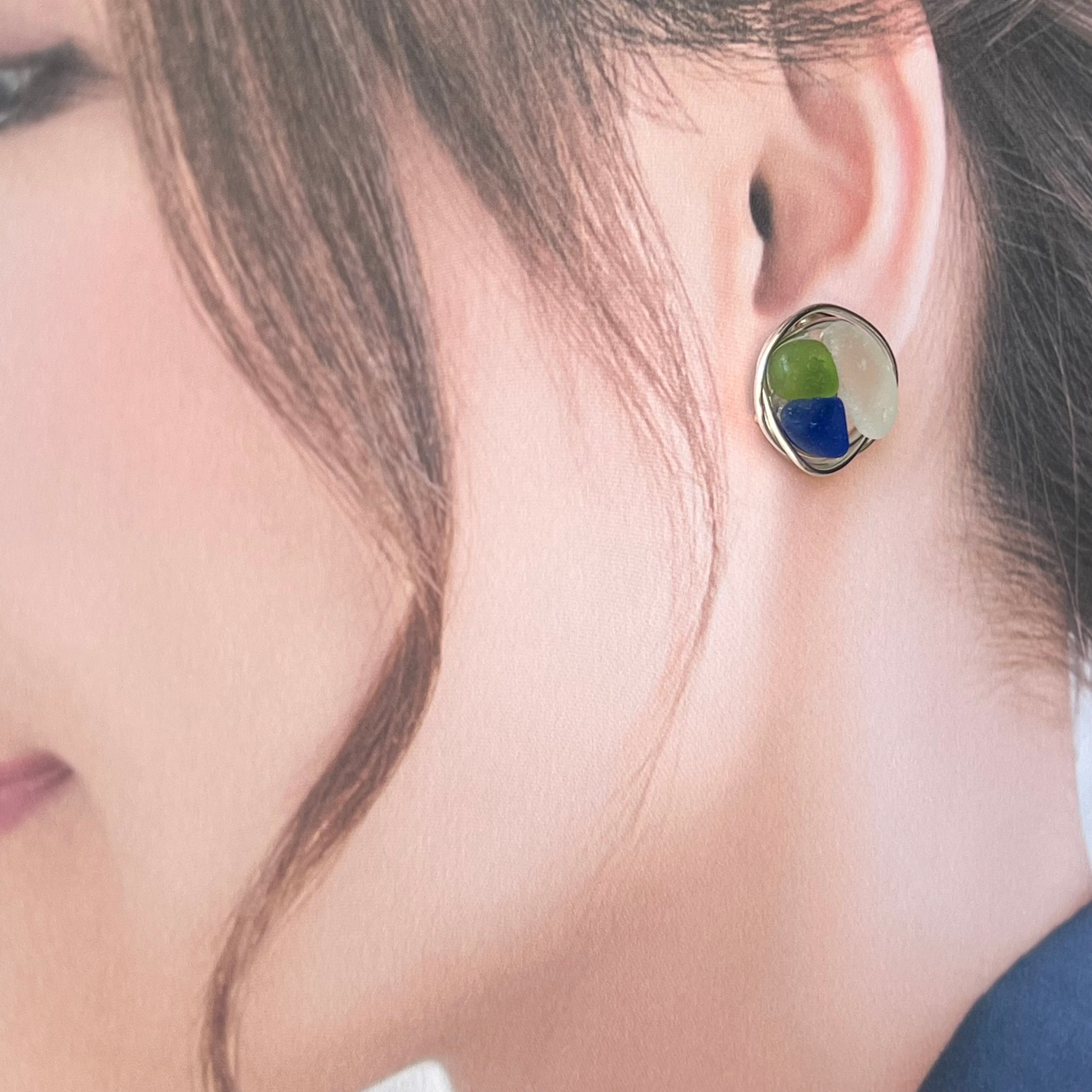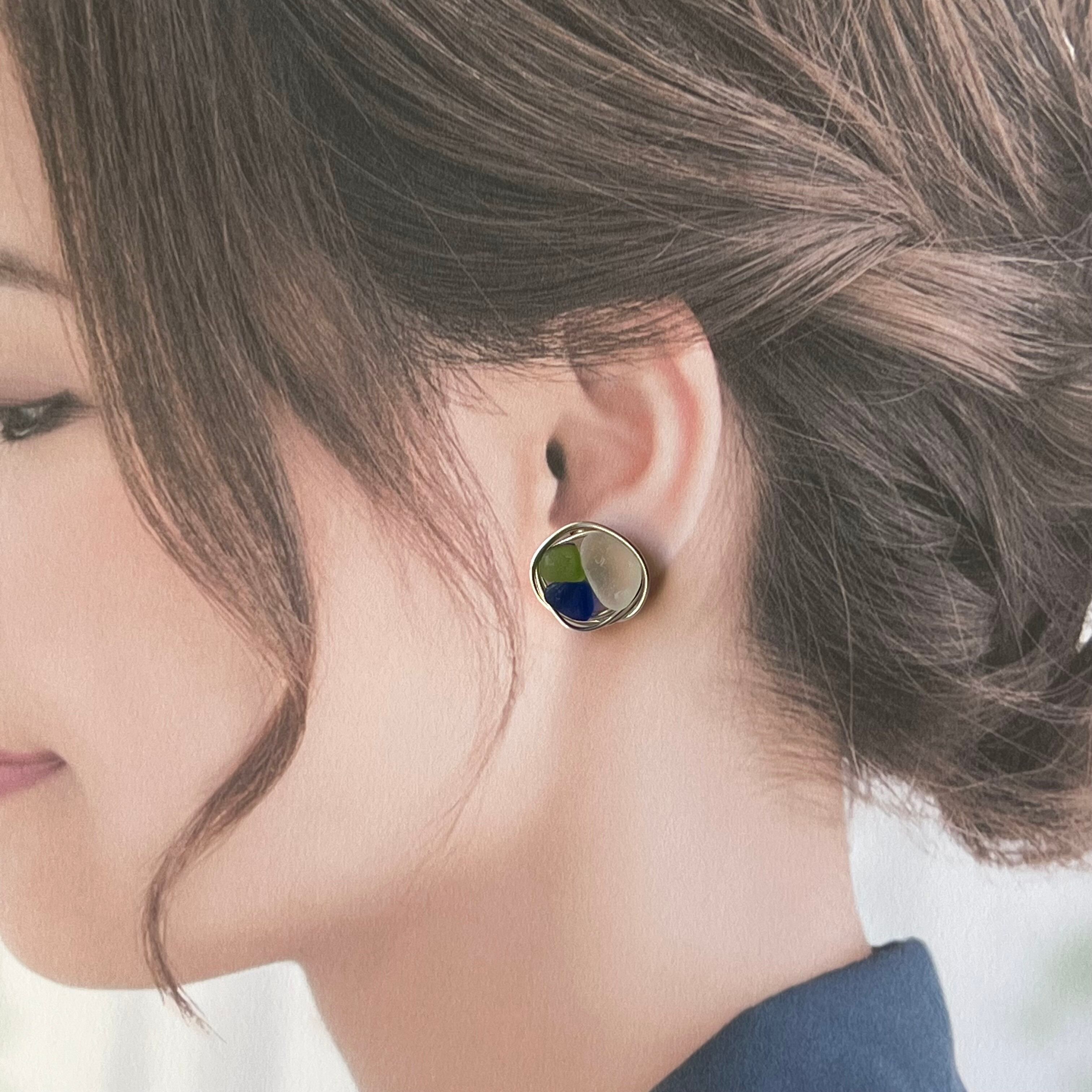 クールで大人カジュアルなシーグラスのサークルピアス