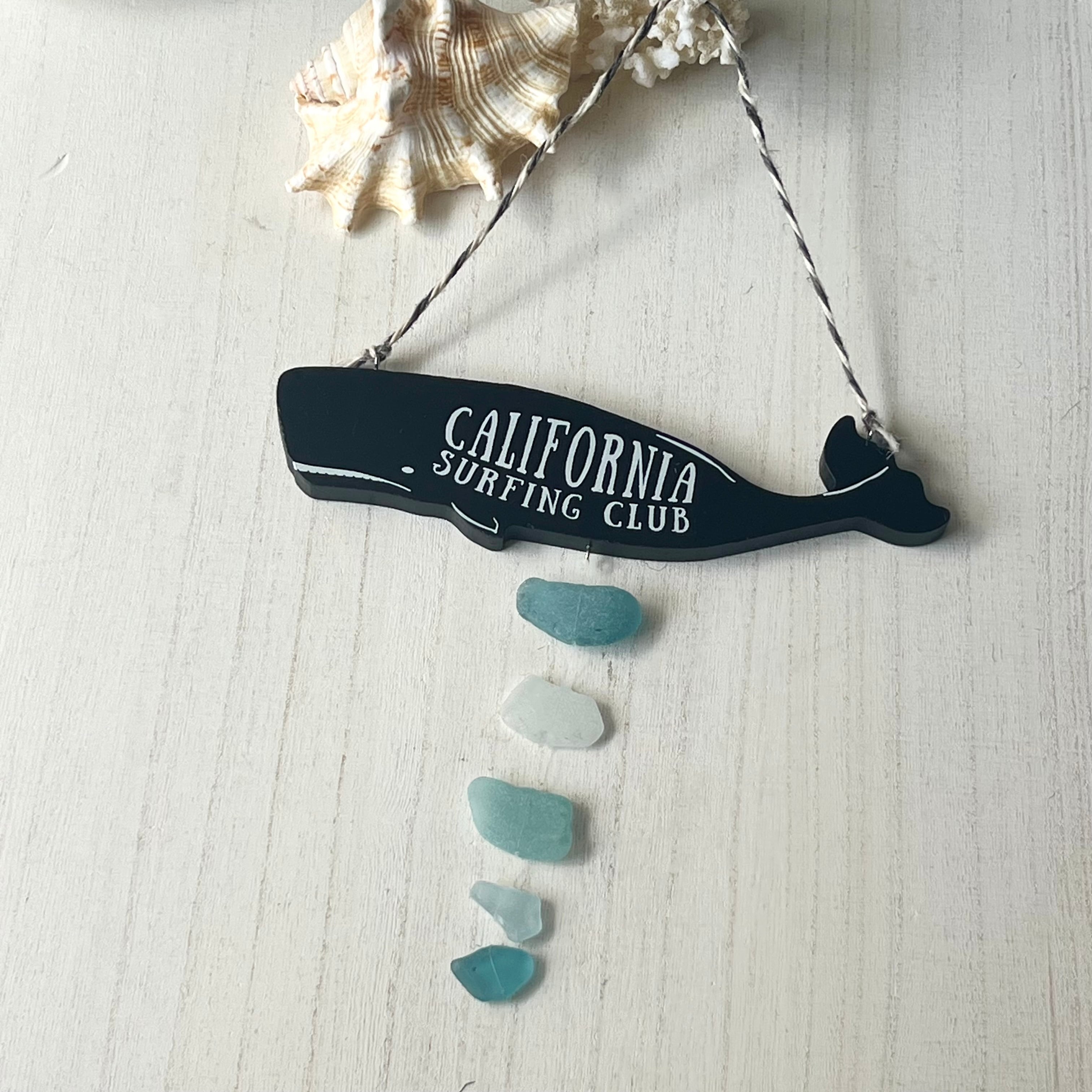 くじらが癒しを運んでくるシーグラスモビール