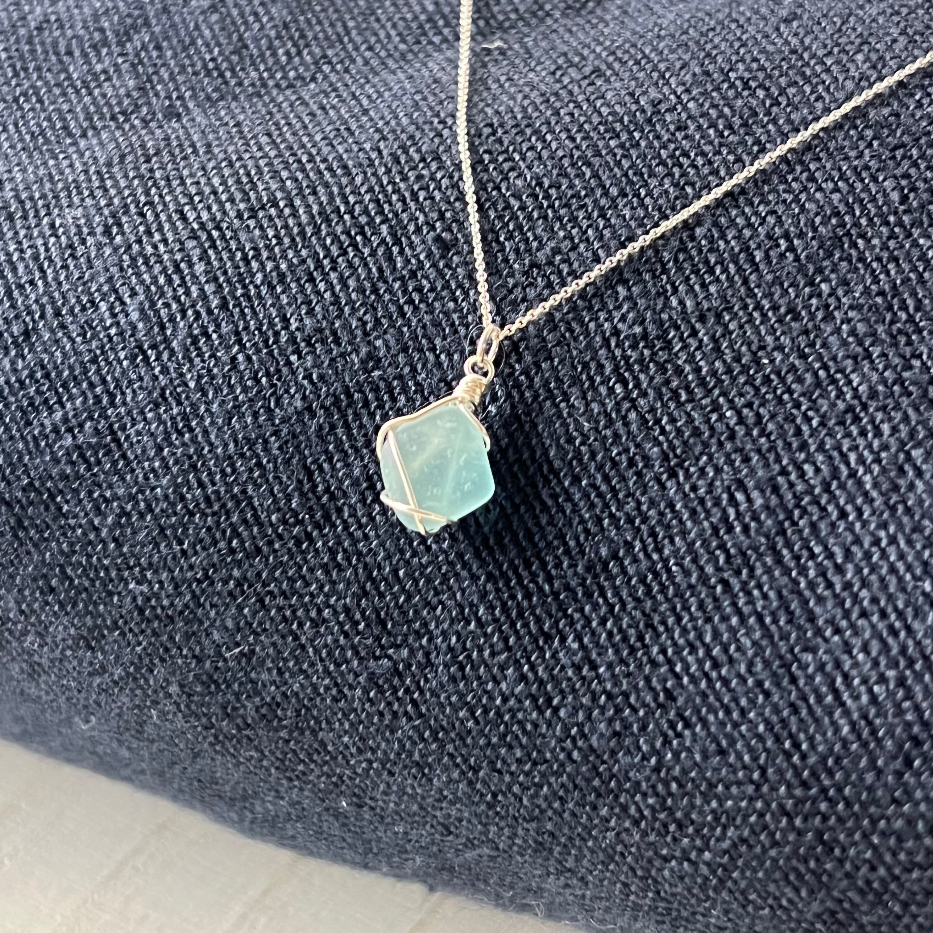 《Silver925》海の一雫 小さな空色シーグラスのネックレス 45cm