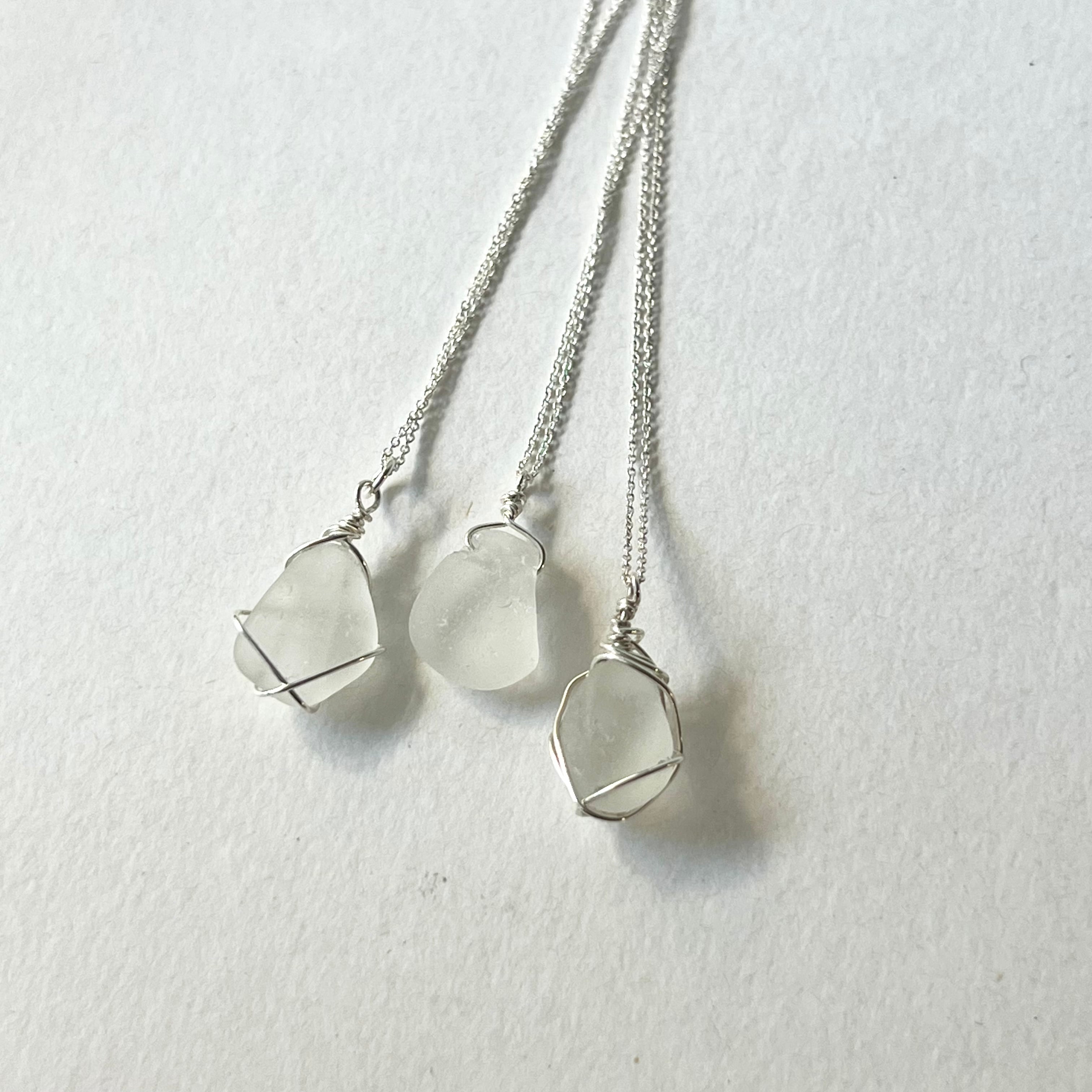 《Silver925》小さくさり気ないホワイトシーグラスのネックレス 40cm