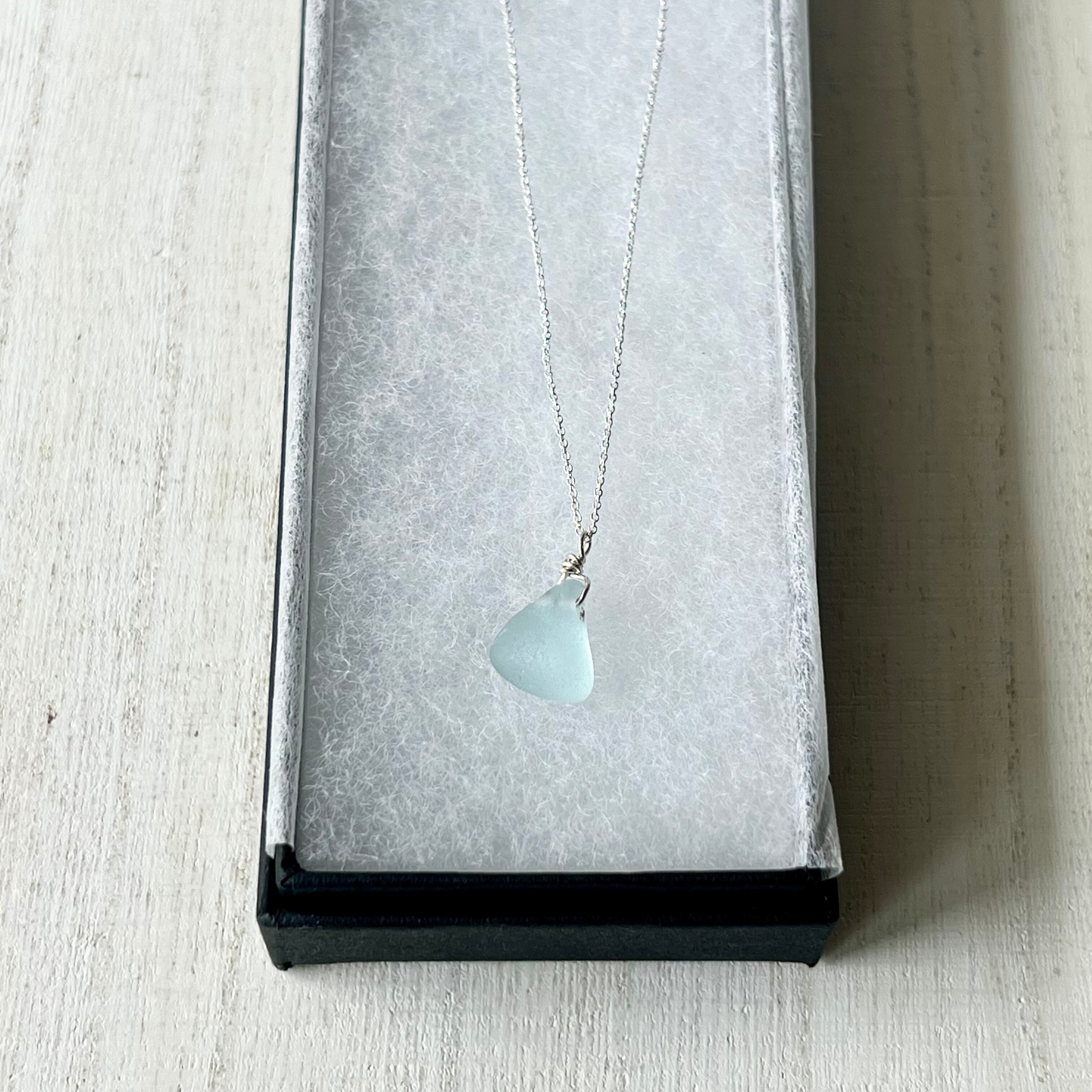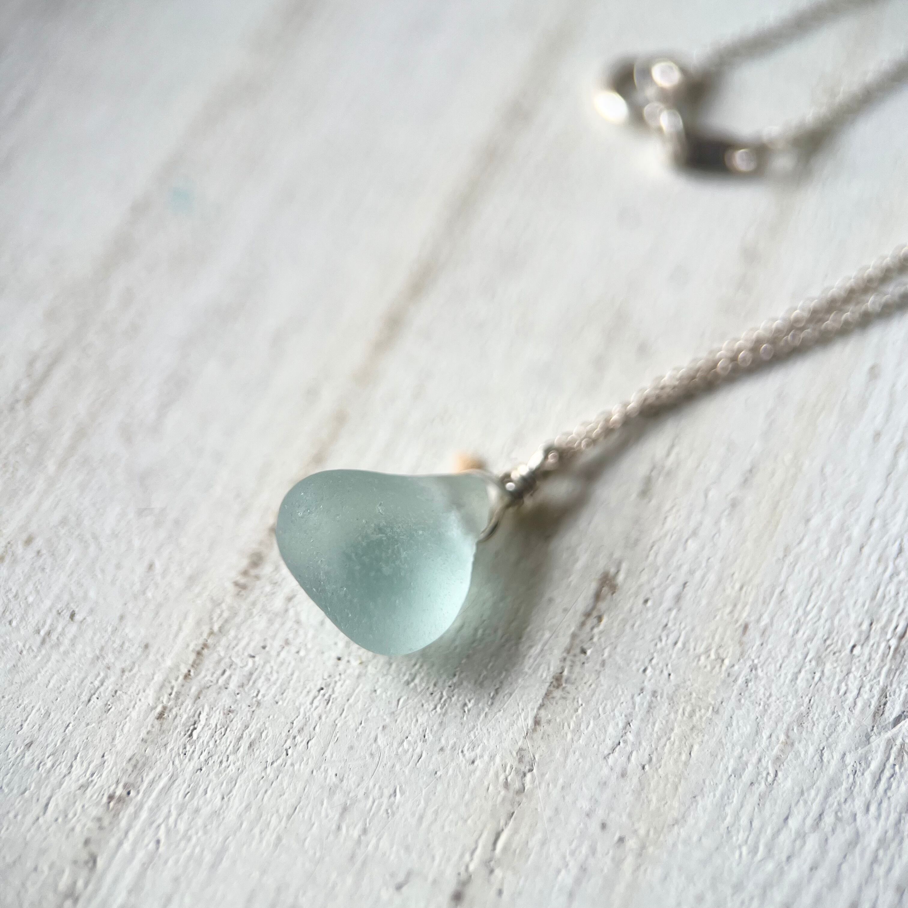 《Silver925》空の一雫 小さな空色シーグラスビーズのネックレス 45cm