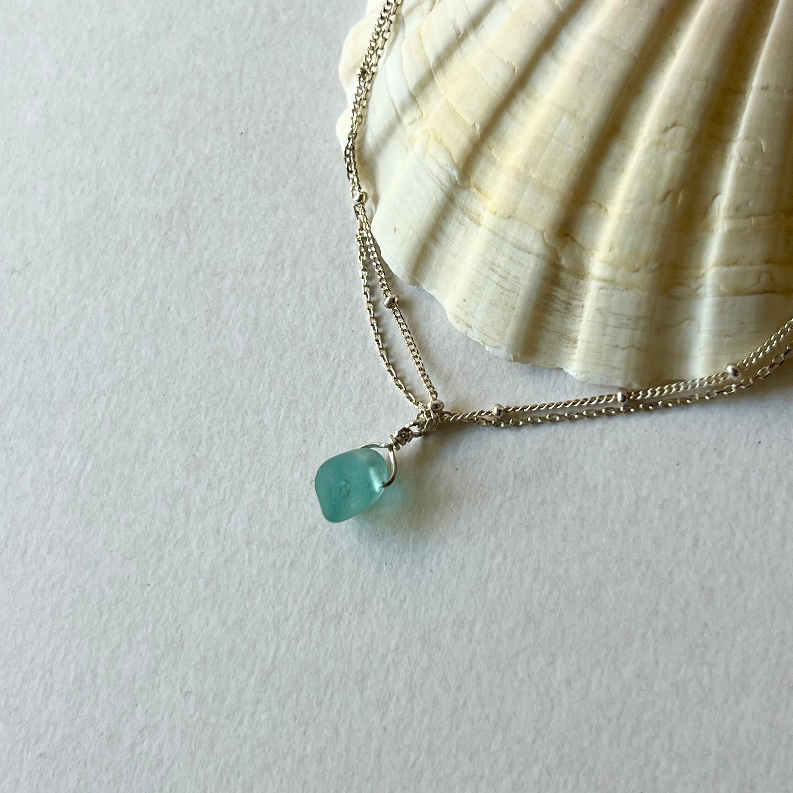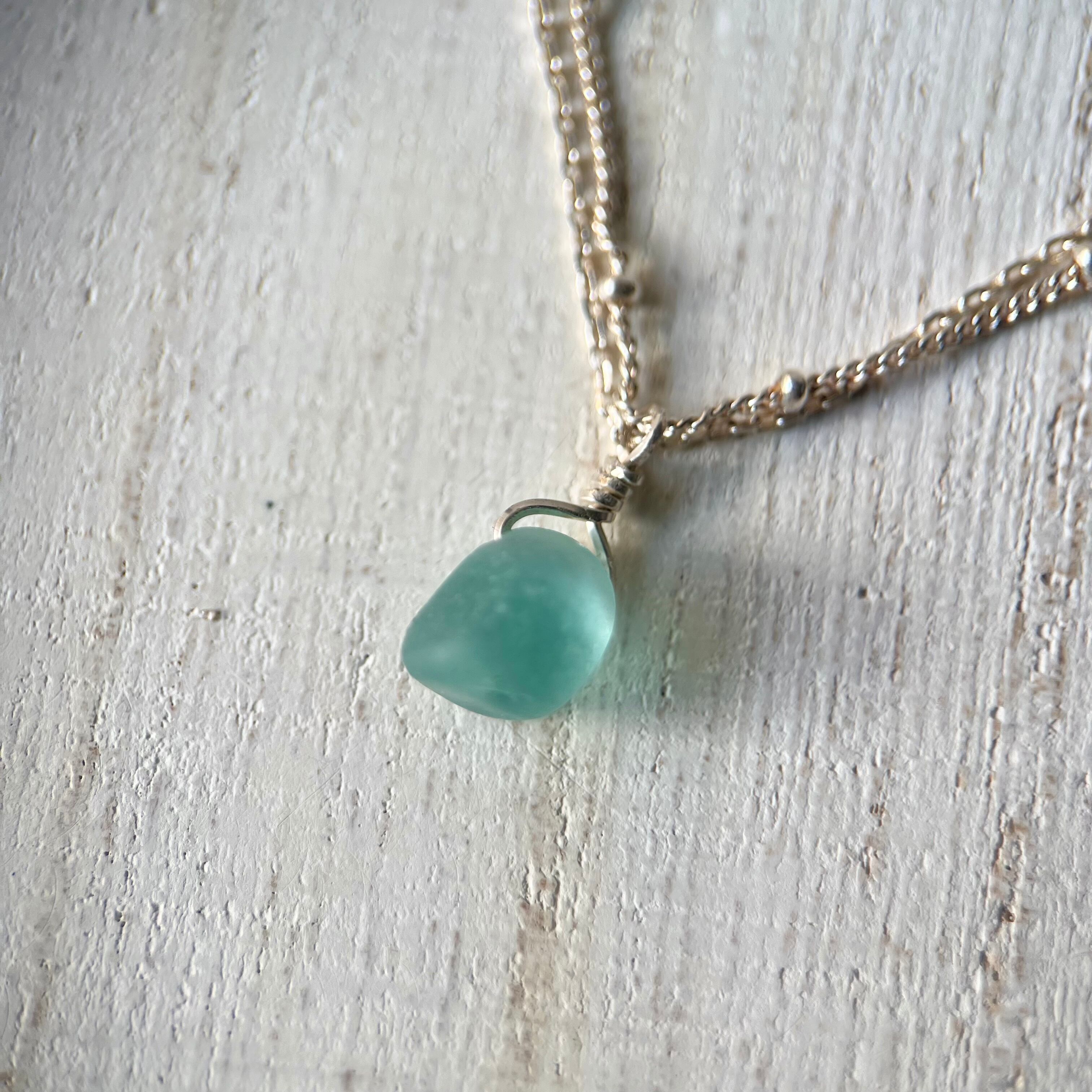 《Silver925》小さくてさり気ない海色シーグラスビーズの雫アンクレット