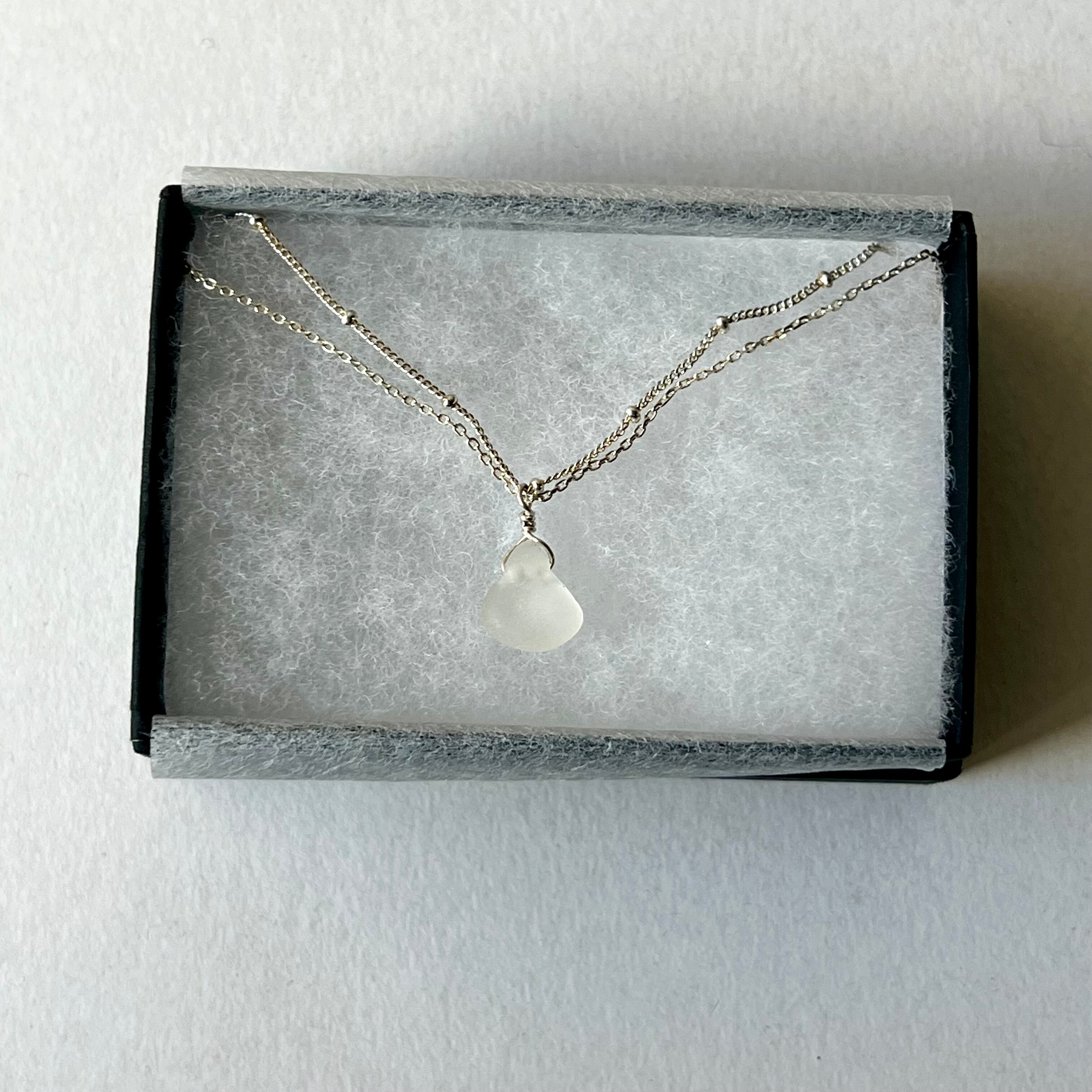 《Silver925》小さくてさりげないホワイトシーグラスビーズの雫アンクレット