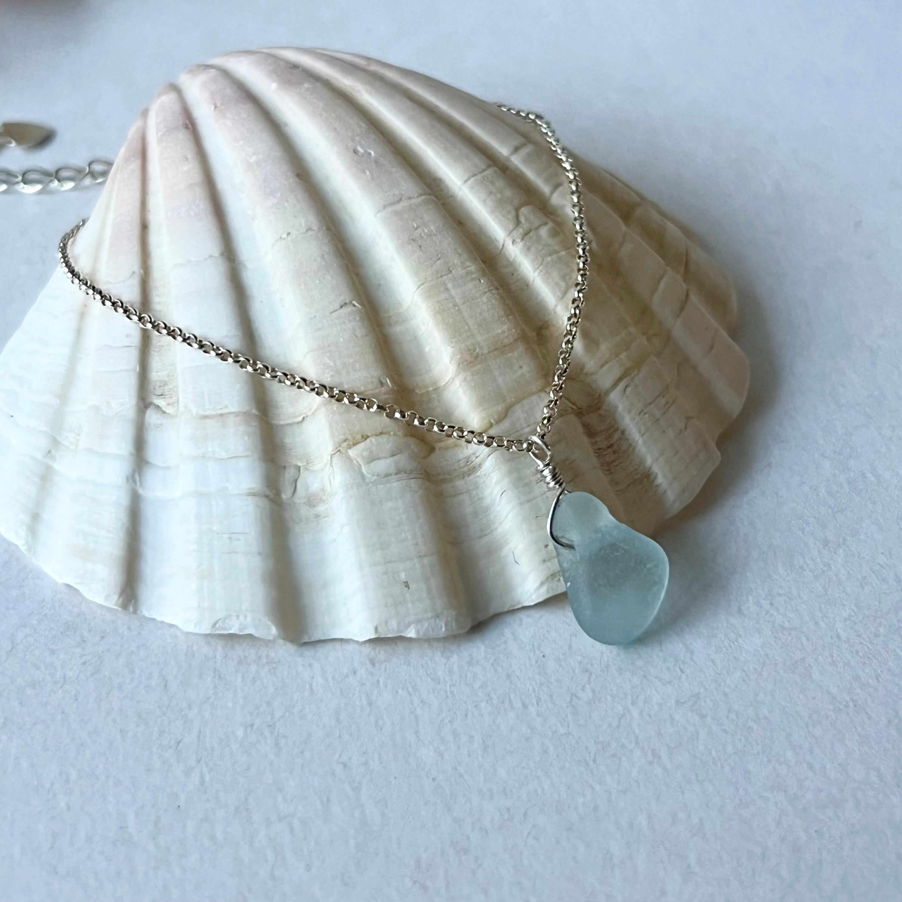 《Silver925》大人のさりげない水色シーグラスビーズの雫ブレスレット