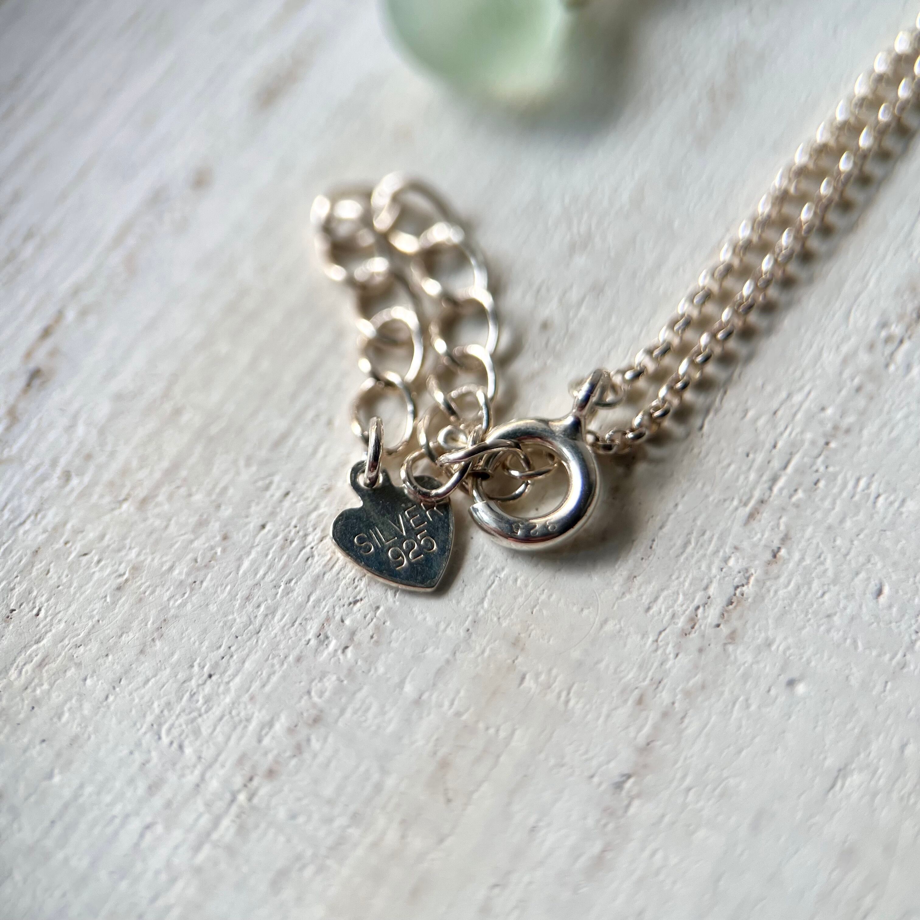 《Silver925》爽やかミントグリーンシーグラスビーズの雫ブレスレット