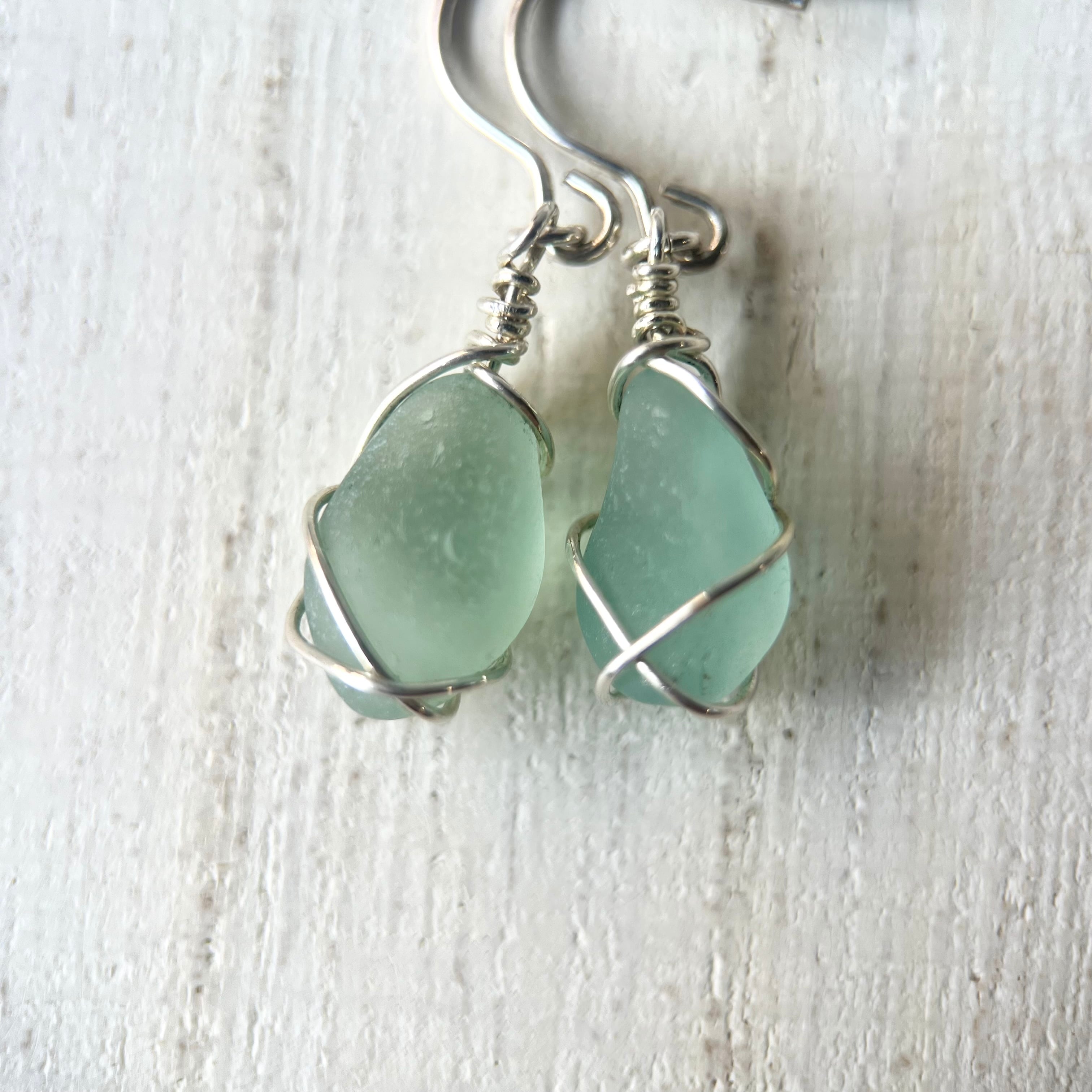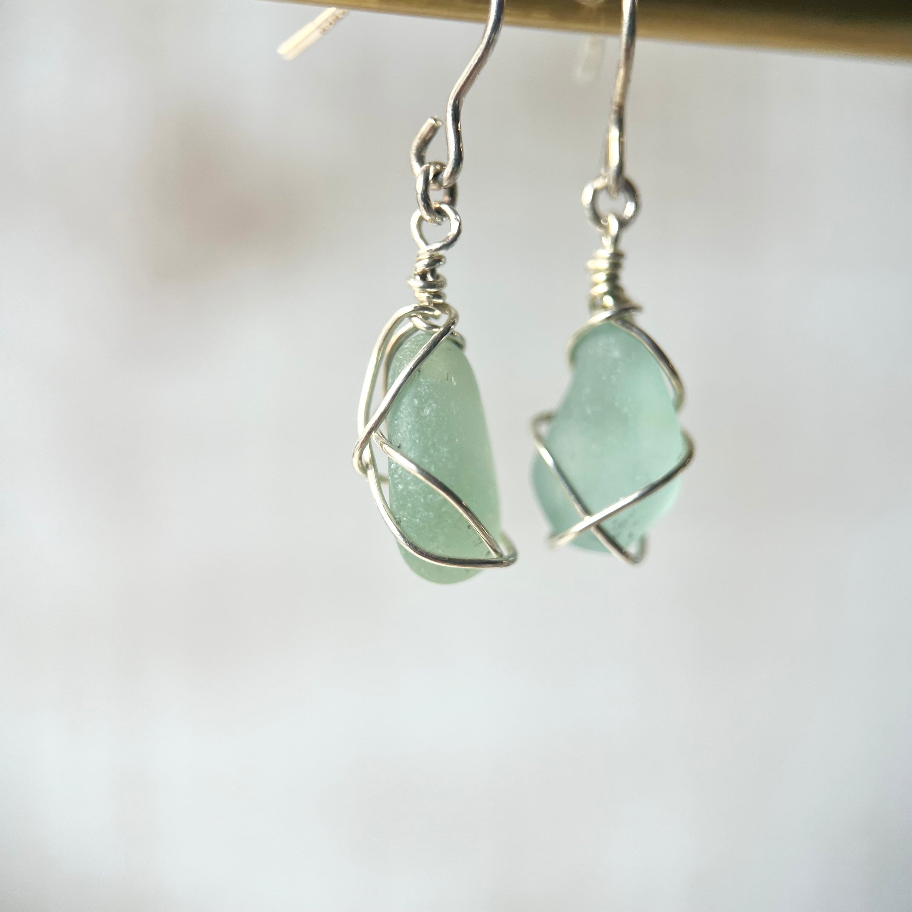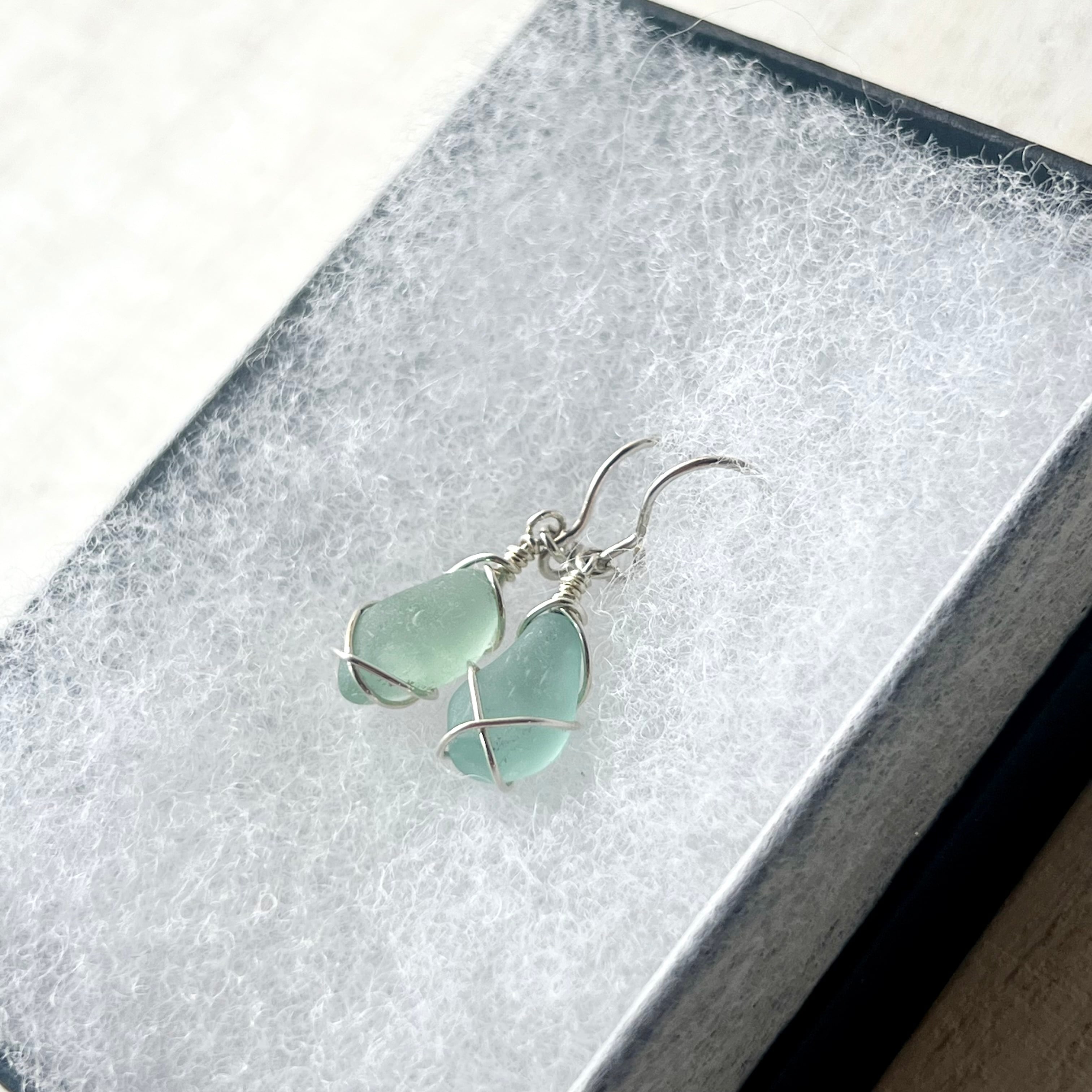 《Silver925》小さなミントグリーンシーグラスが揺れるフックピアス